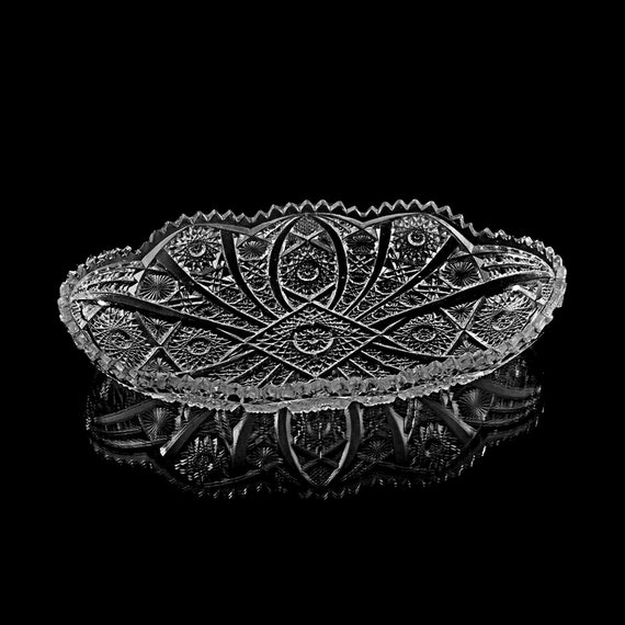 Pressed Glass Bon Bon Bowl, Curved Sides, Strawberry Pattern, Clear Pressed Glass, Candy Dish