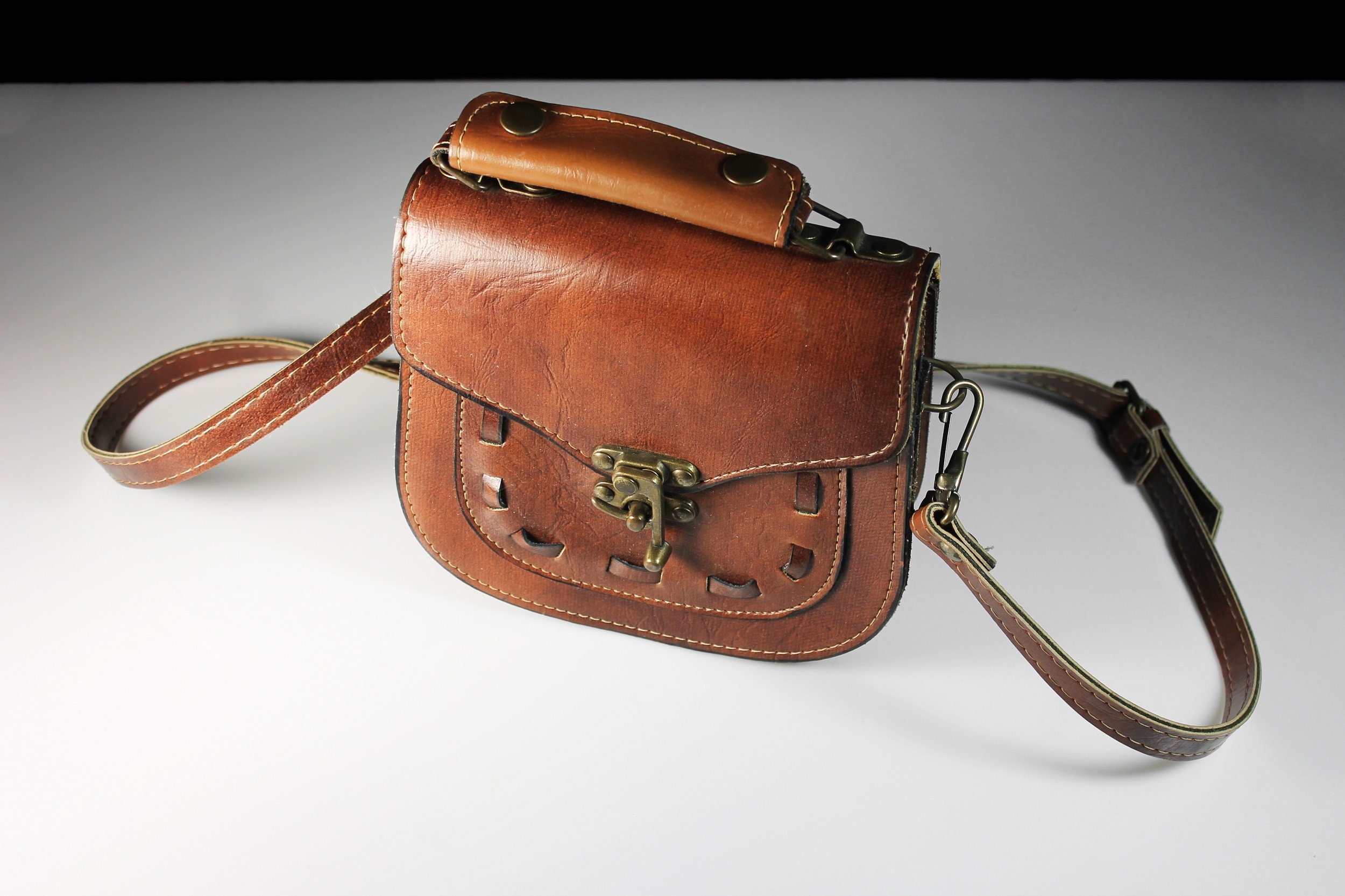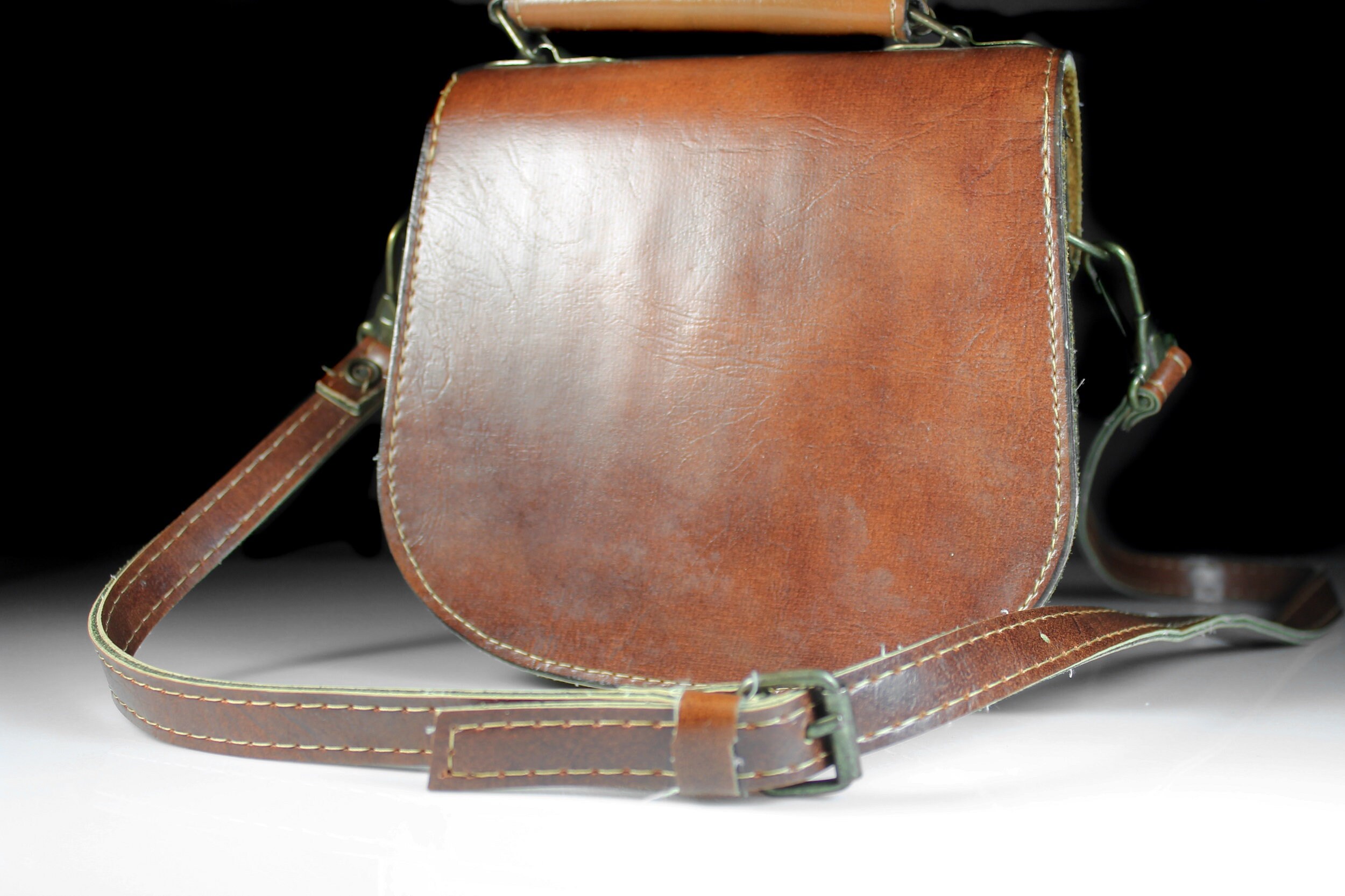 Brown Leather Saddle Bag, Shoulder Bag, Top Handle, Brass Hardware, Hinge Lock Closure