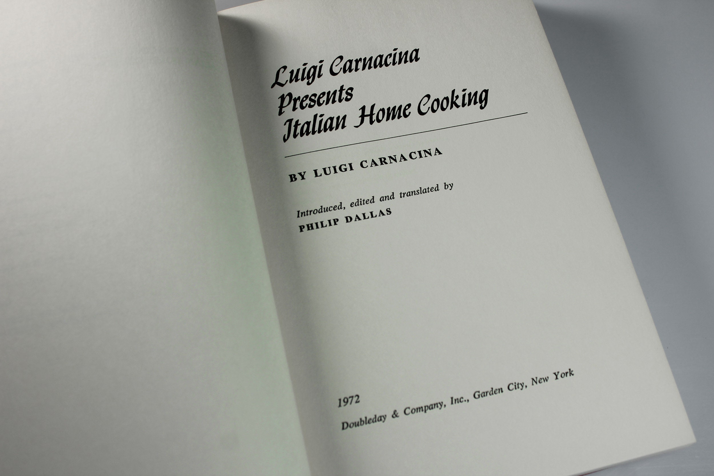 A wonderful hardcover cookbook called Italian Home Cooking by Luigi Carnacina. This is a 1972 first edition.