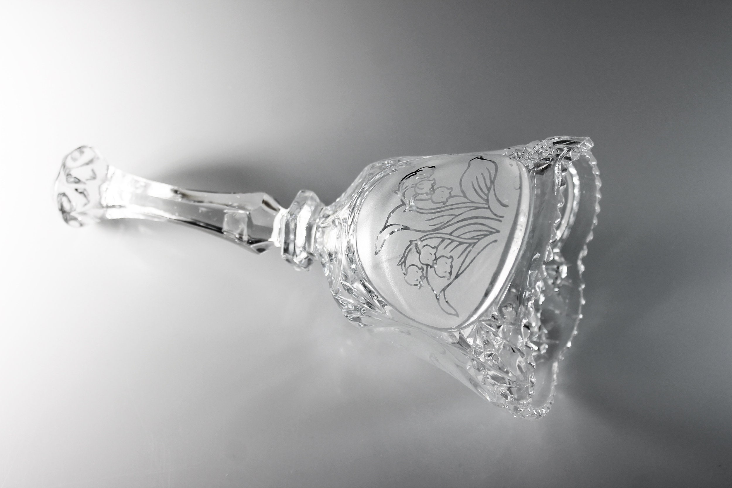 Large Crystal Bell, 24K Leaded Crystal Handbell, Lily of the Valley Design, Collectible Bell