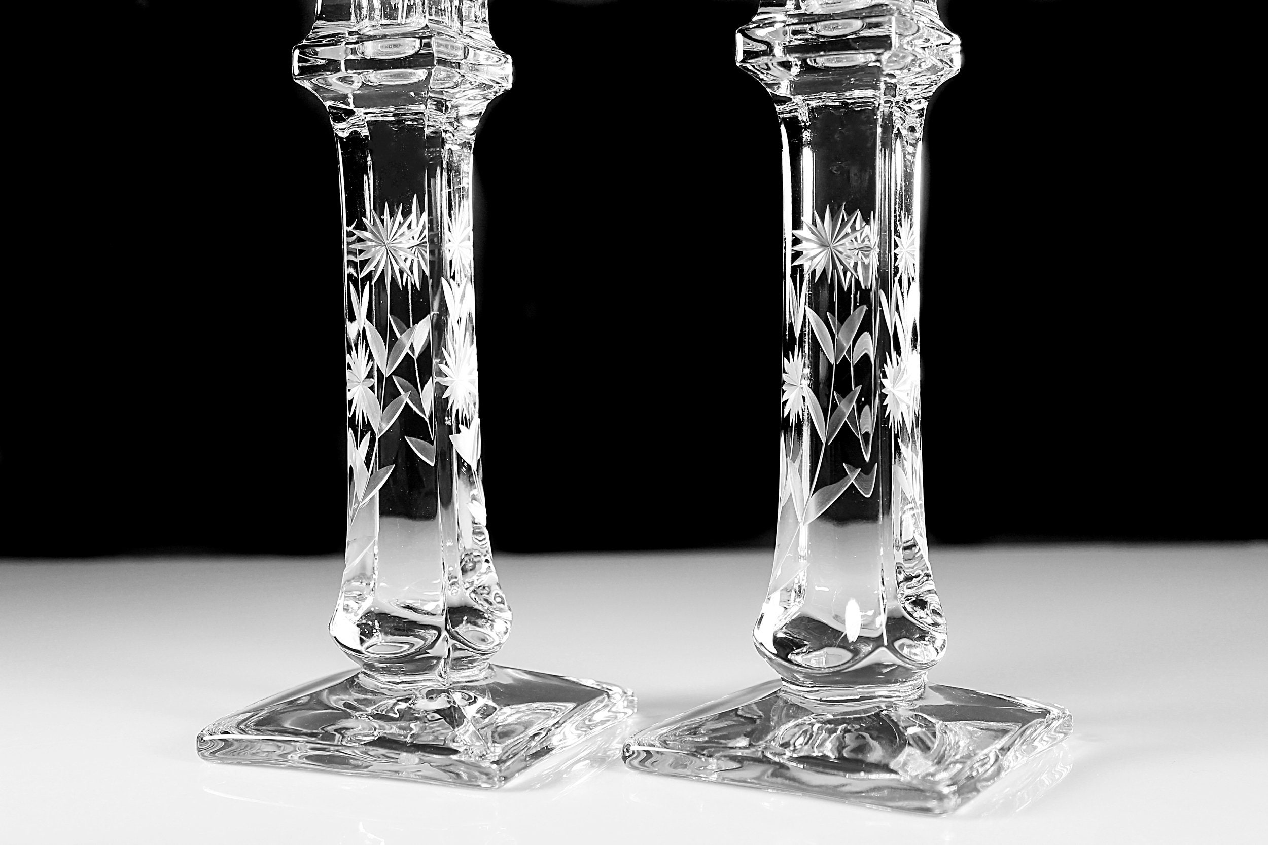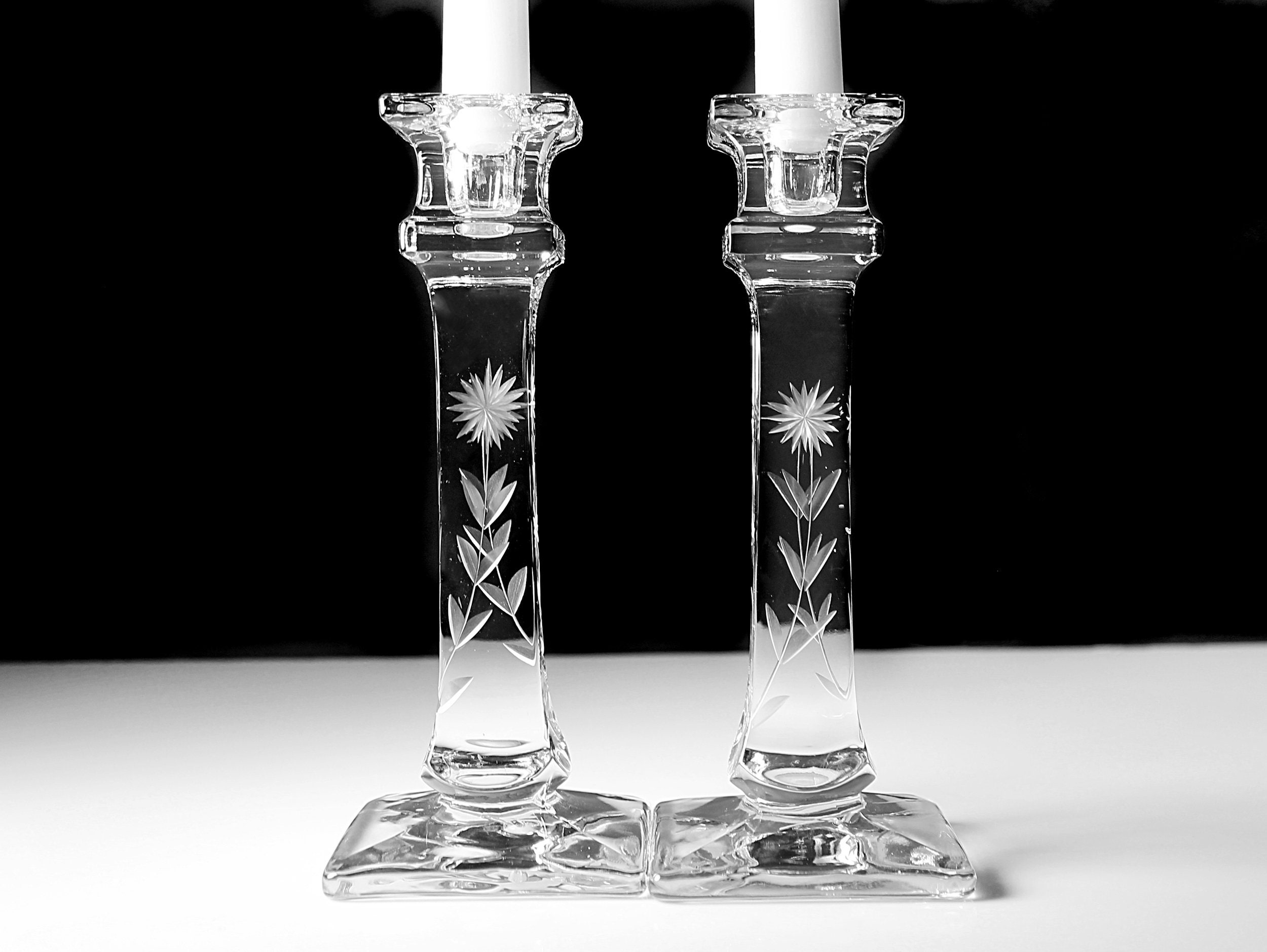 Beautiful pair of antique etched crystal candlesticks! No flaws and very well packed! Even got them here in record time so they could be used for our Thanksgiving table. Thank you so very much!! They are lovely.