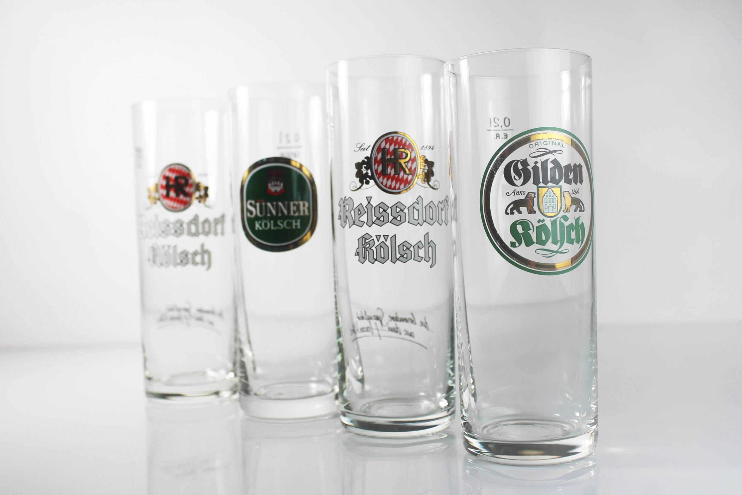 Beer Glasses, Various German Breweries, Set of 4, .2 Liter, Clear Glass, Barware