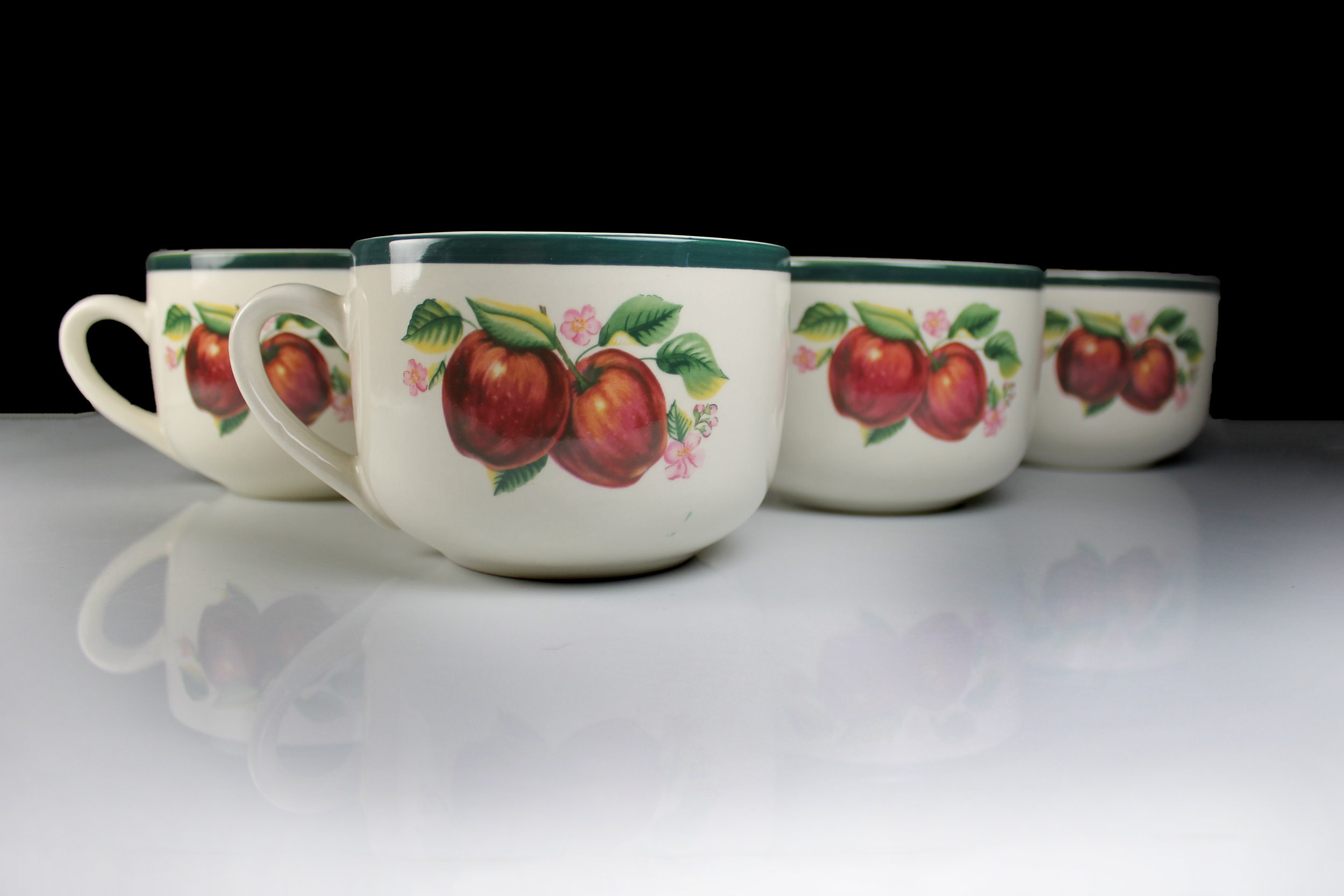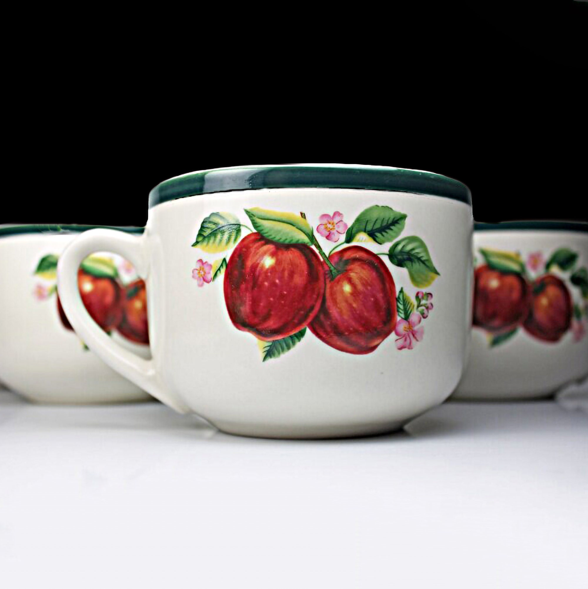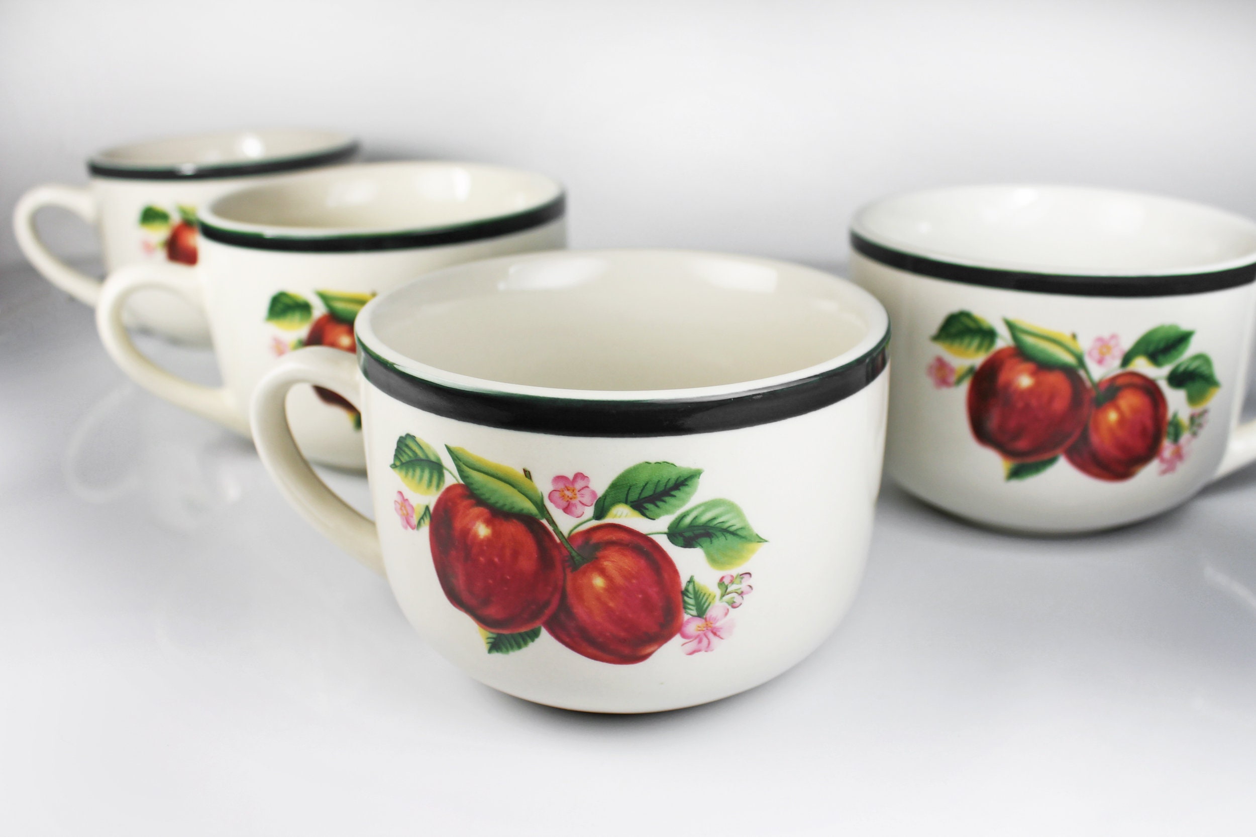 Jumbo Mug, China Pearl, Casuals, Apples, Soup Mugs, Set of 4, 20 Ounce
