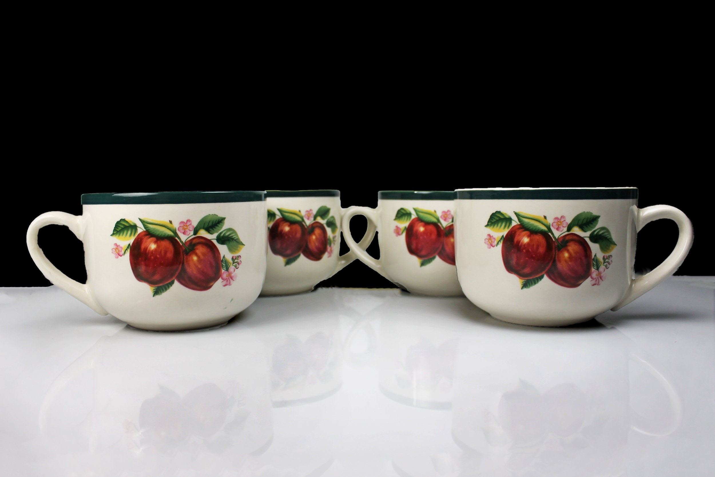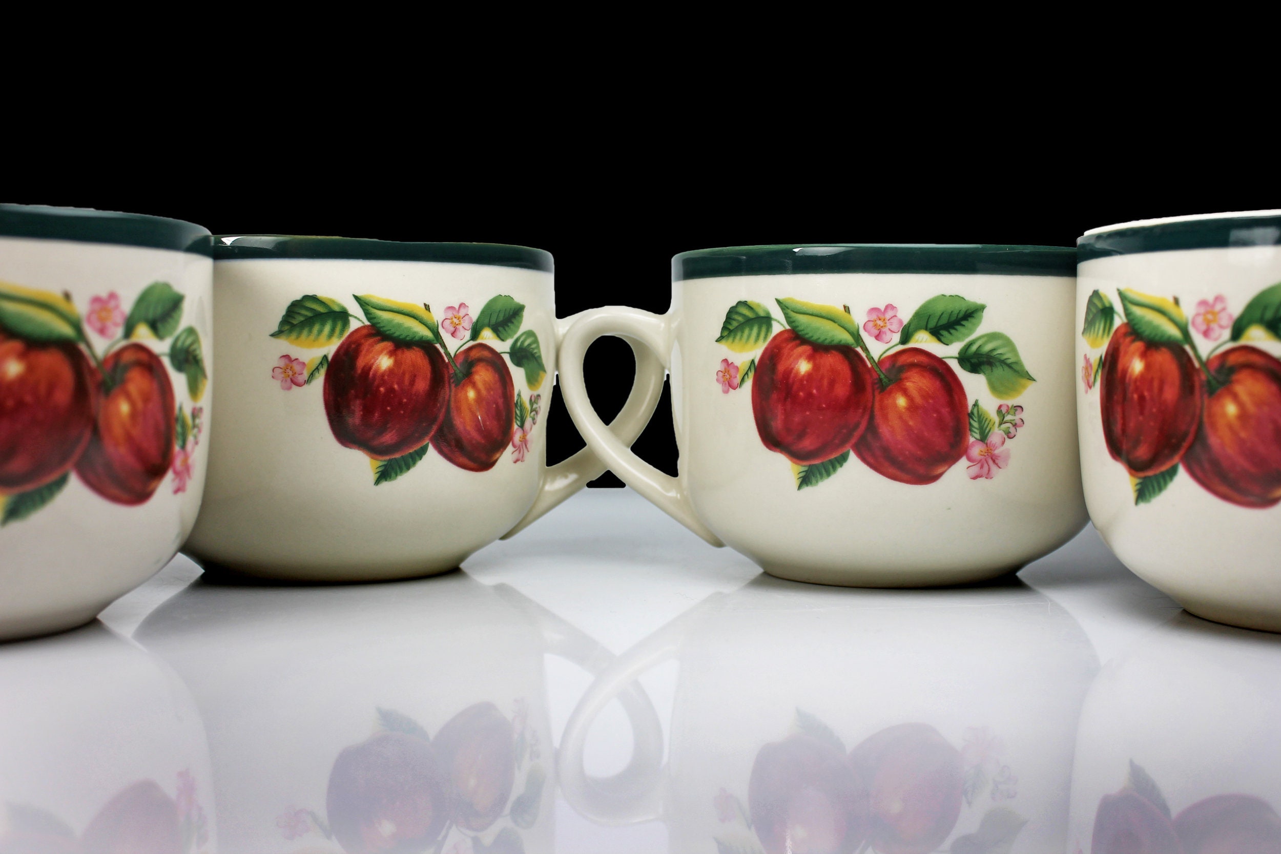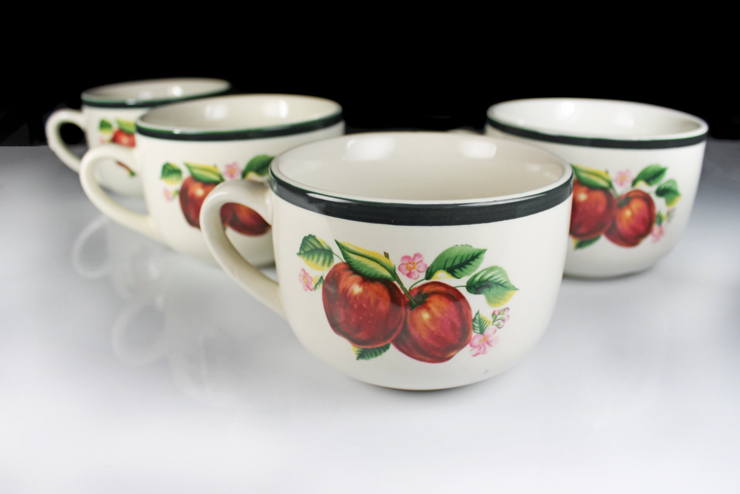 Jumbo Mug, China Pearl, Casuals, Apples, Soup Mugs, Set of 4, 20 Ounce