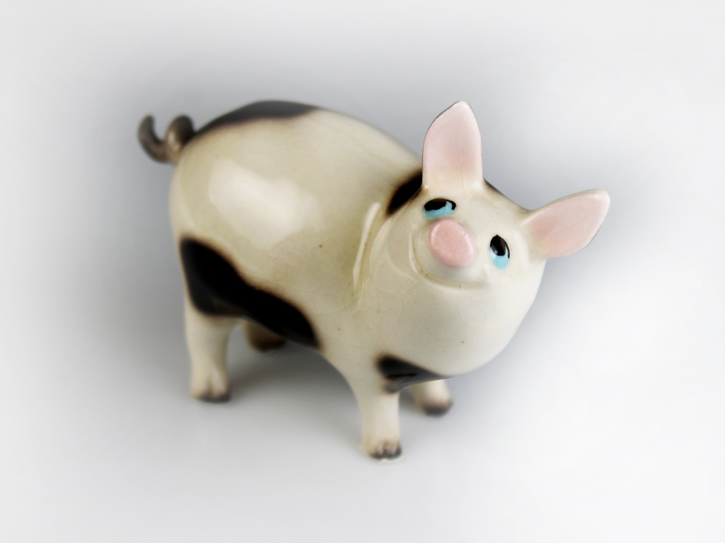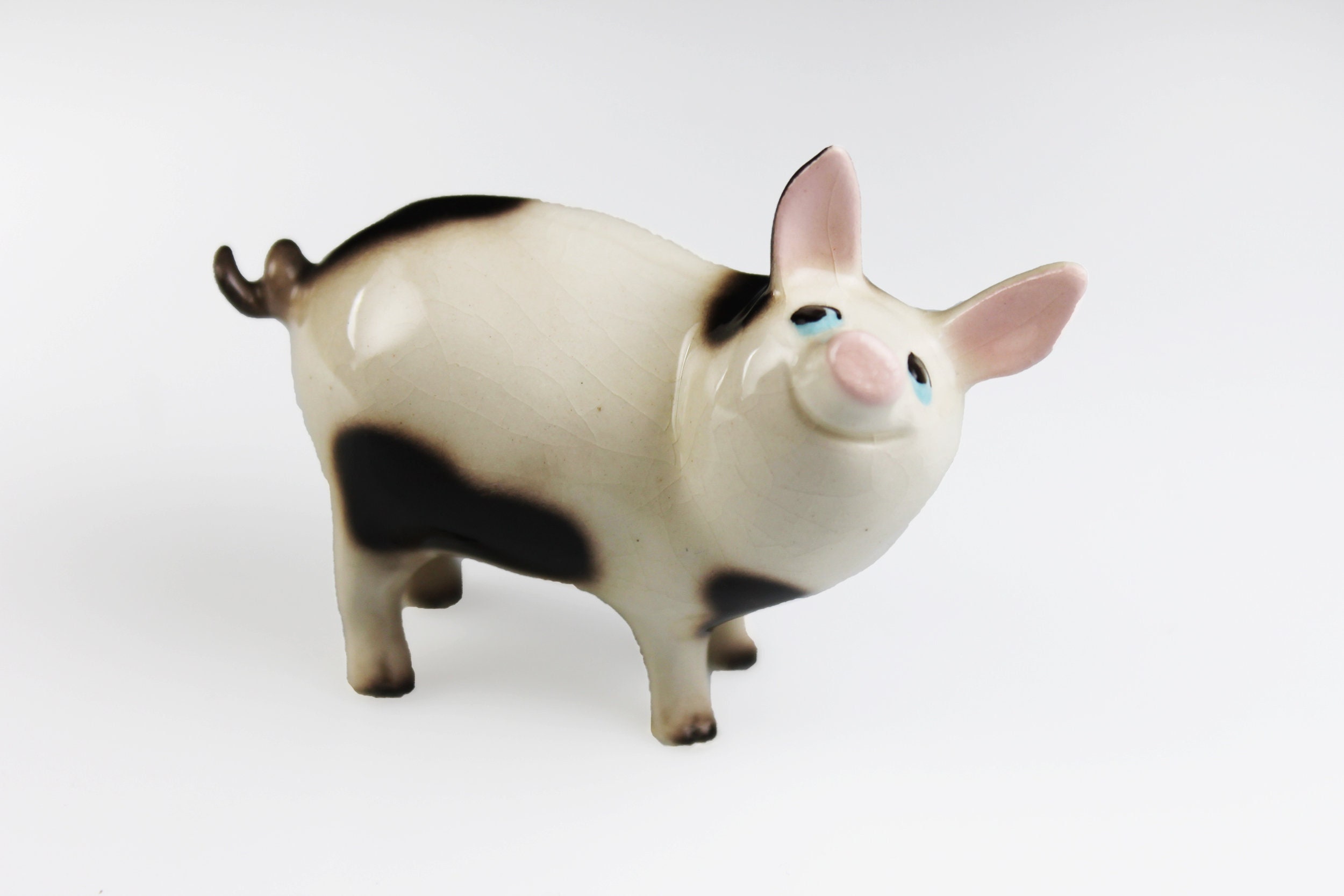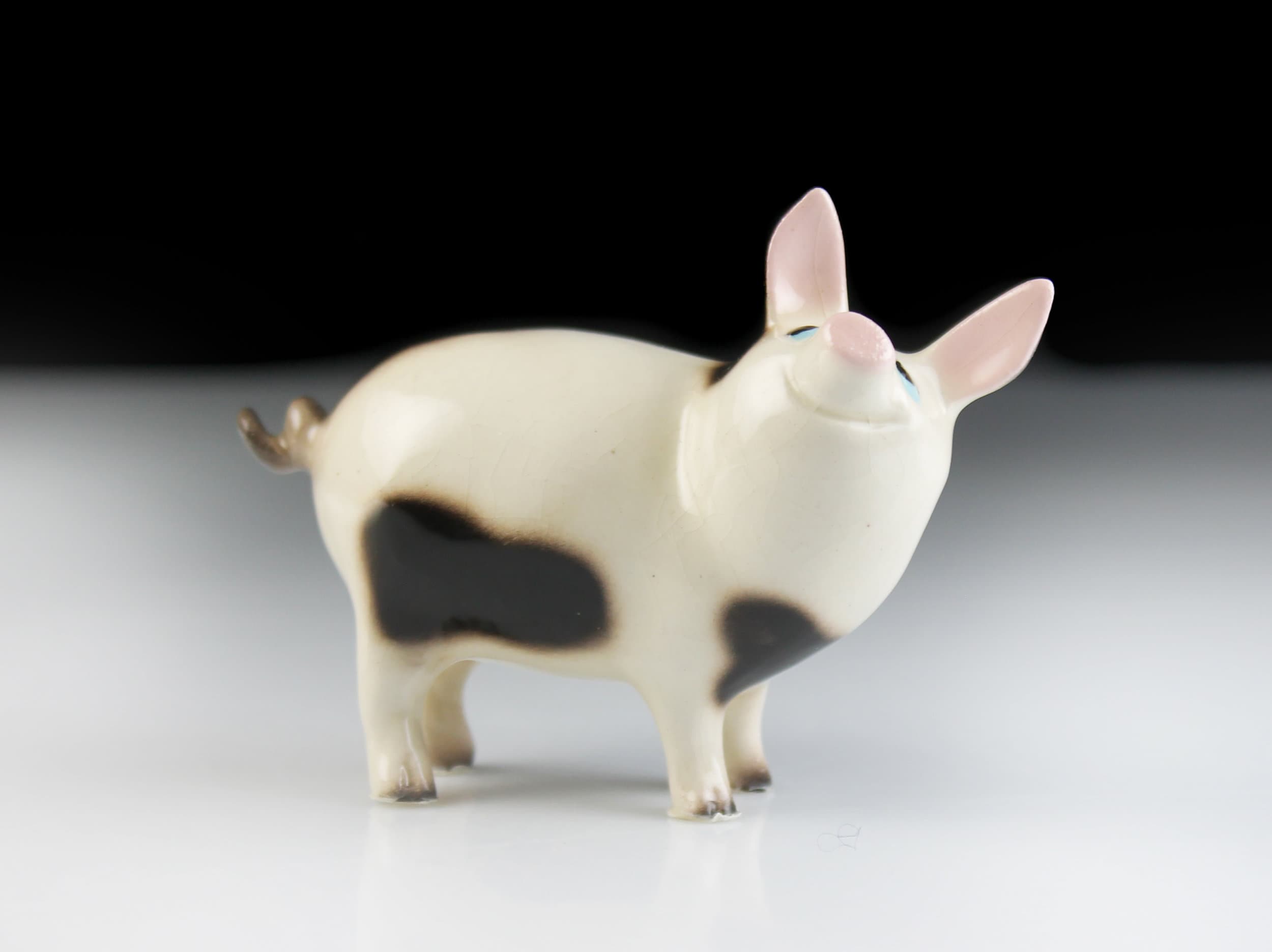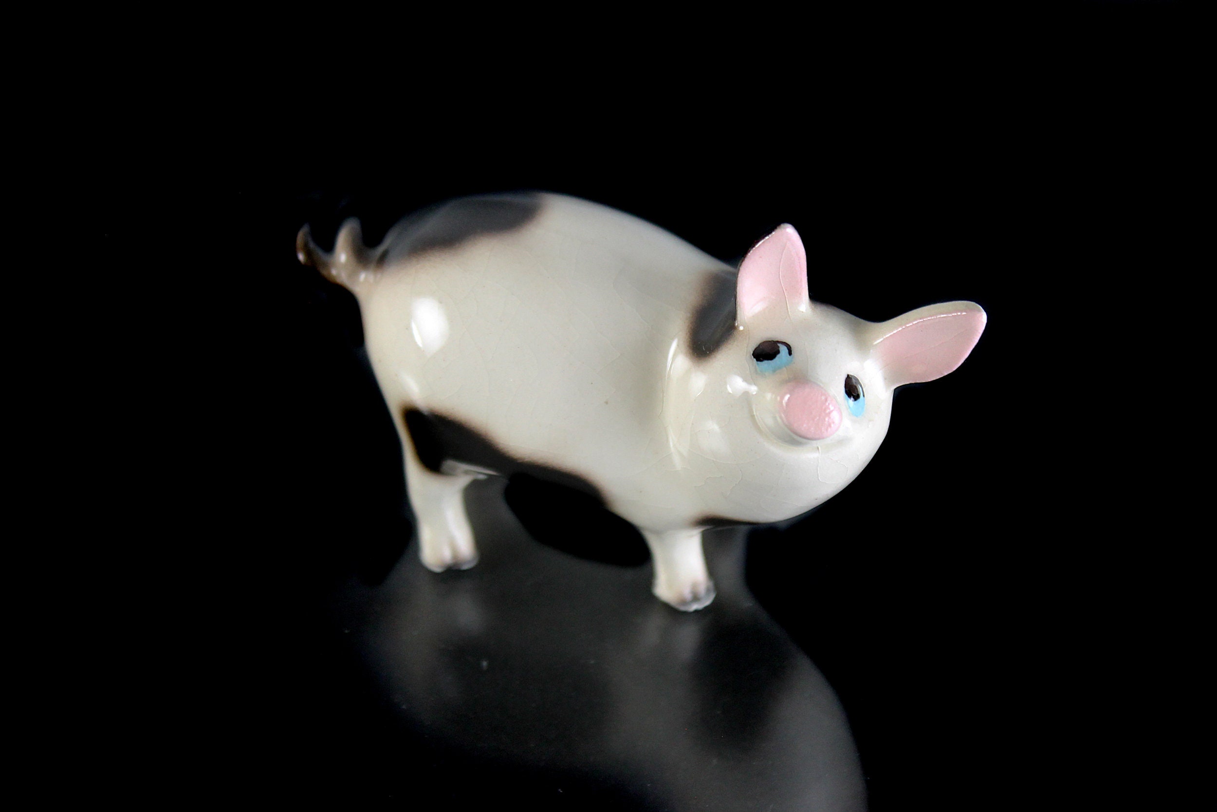 This pig figurine is in excellent condition. There are no chips or cracks. I do see some light crazing that adds character to this charming fellow.