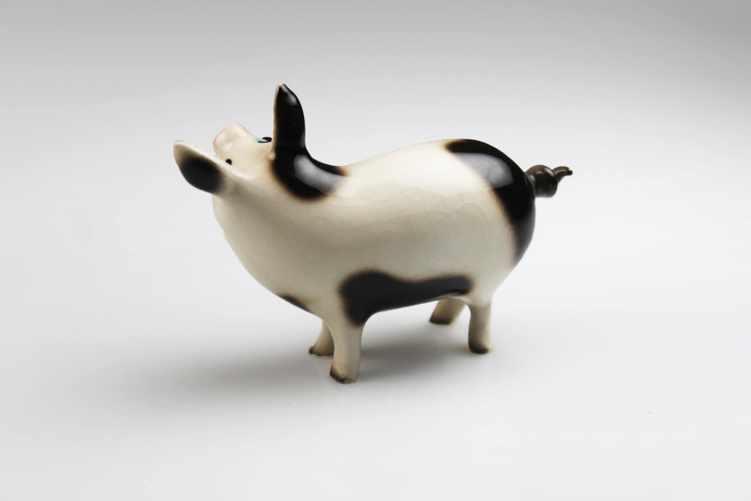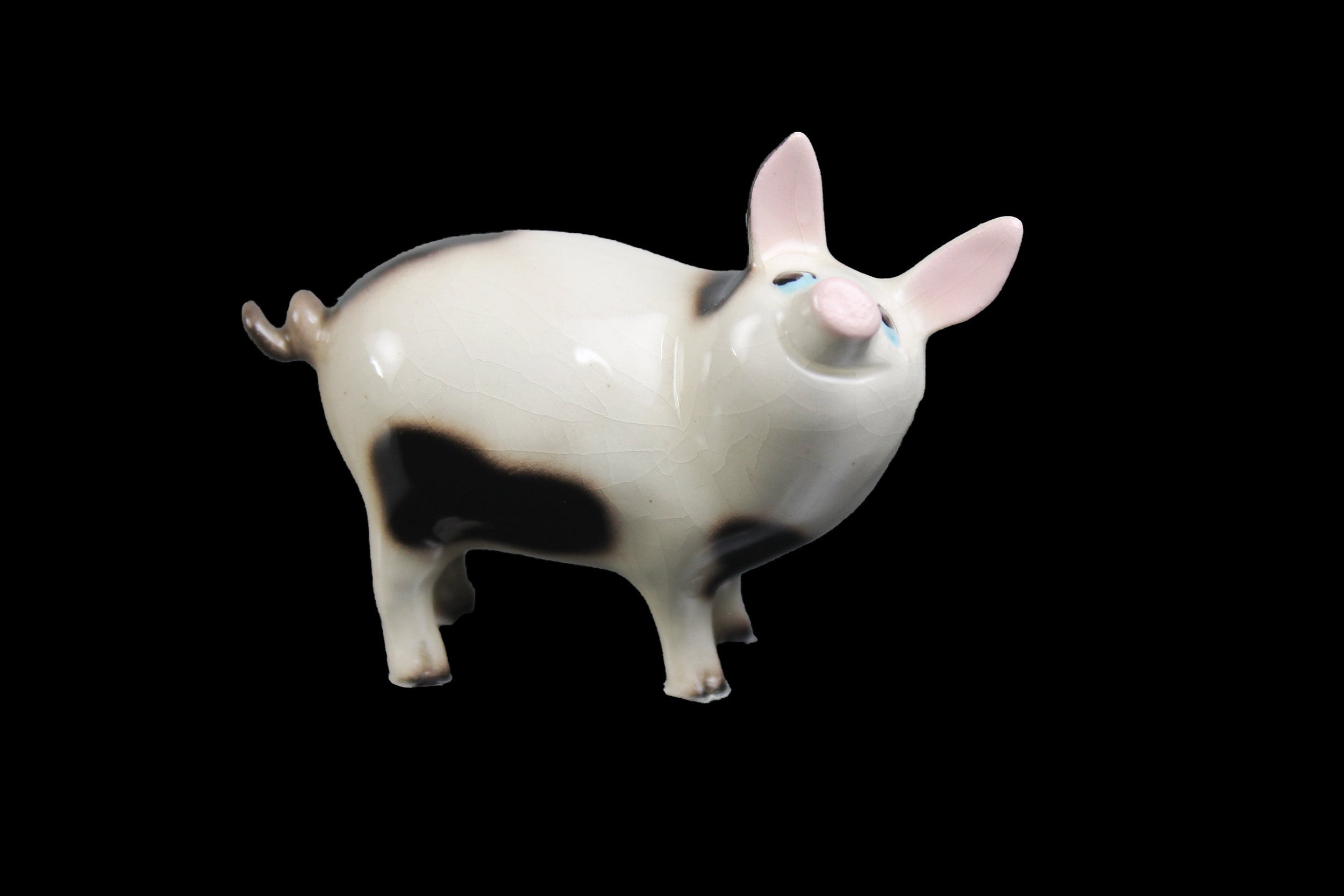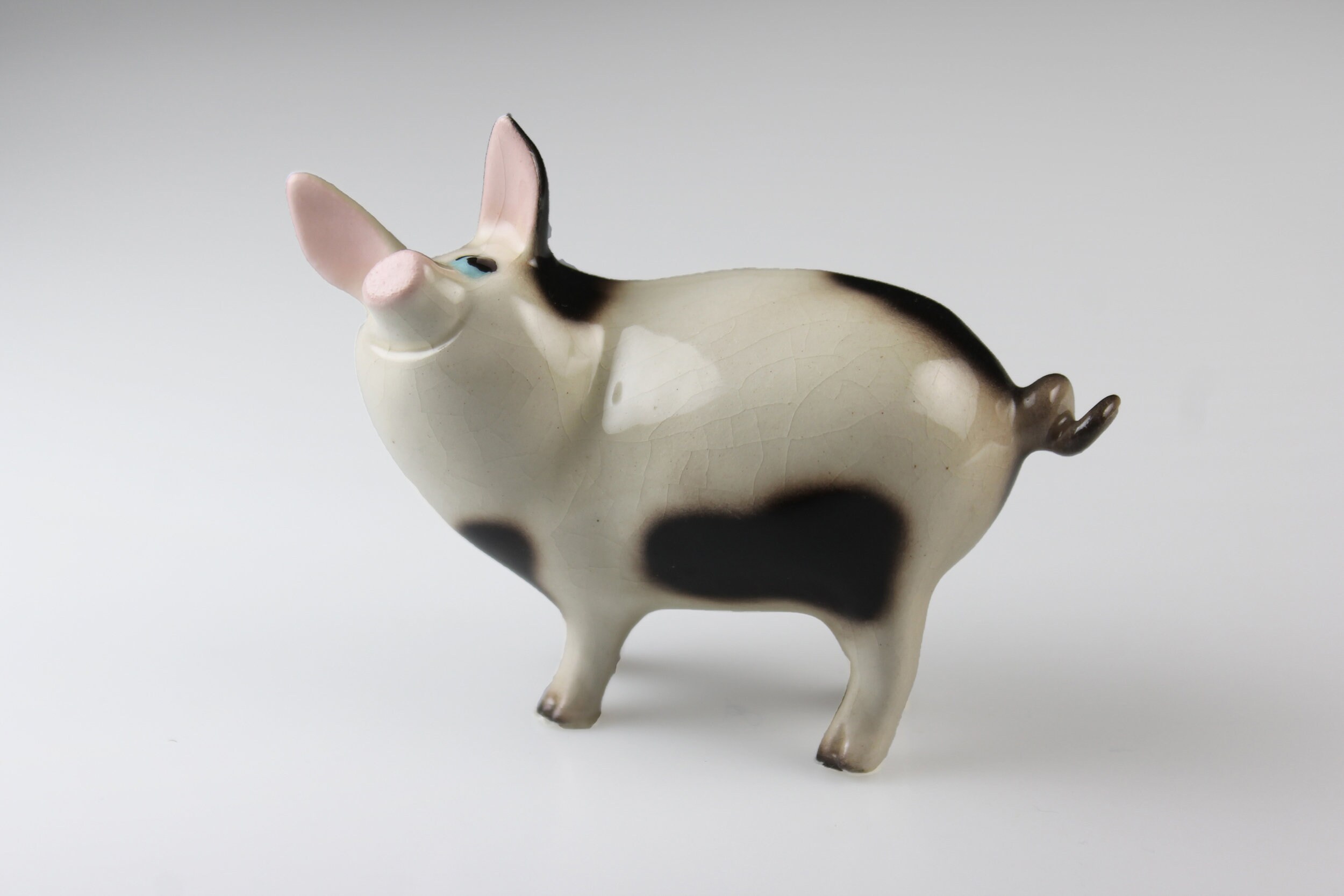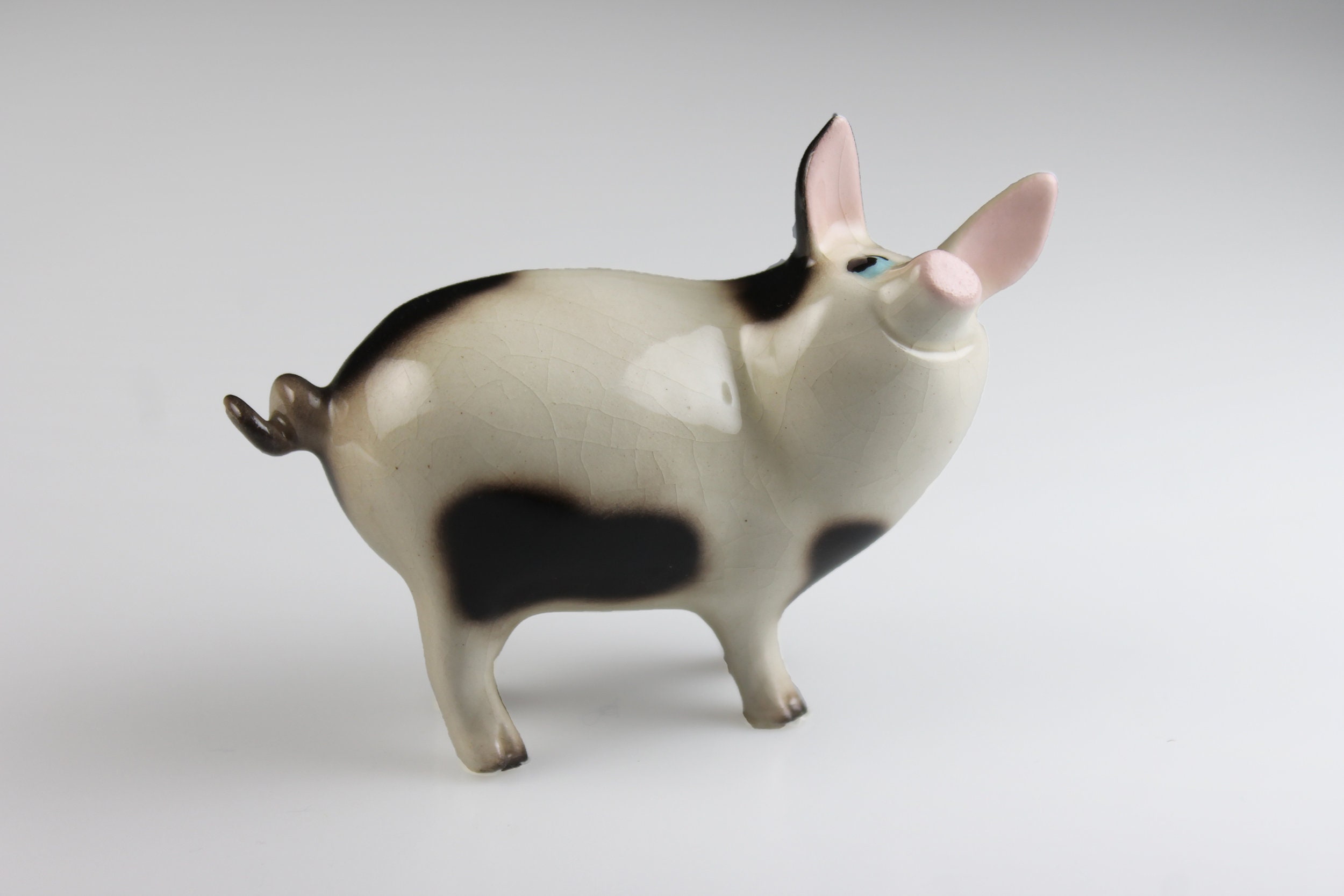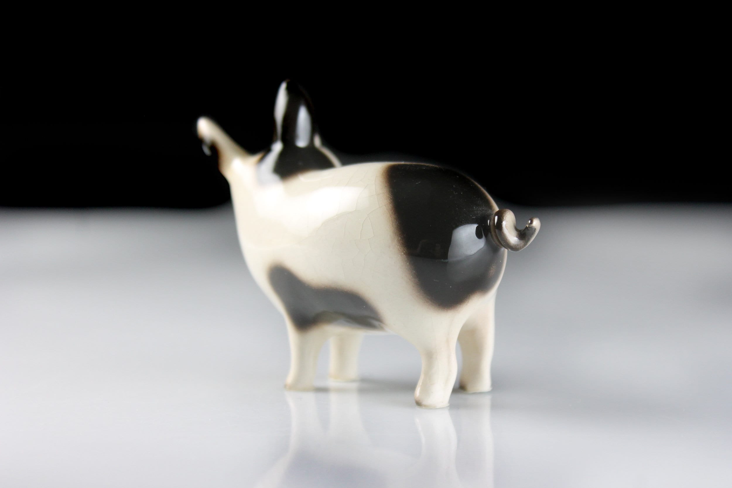 This pig figurine is in excellent condition. There are no chips or cracks. I do see some light crazing that adds character to this charming fellow.