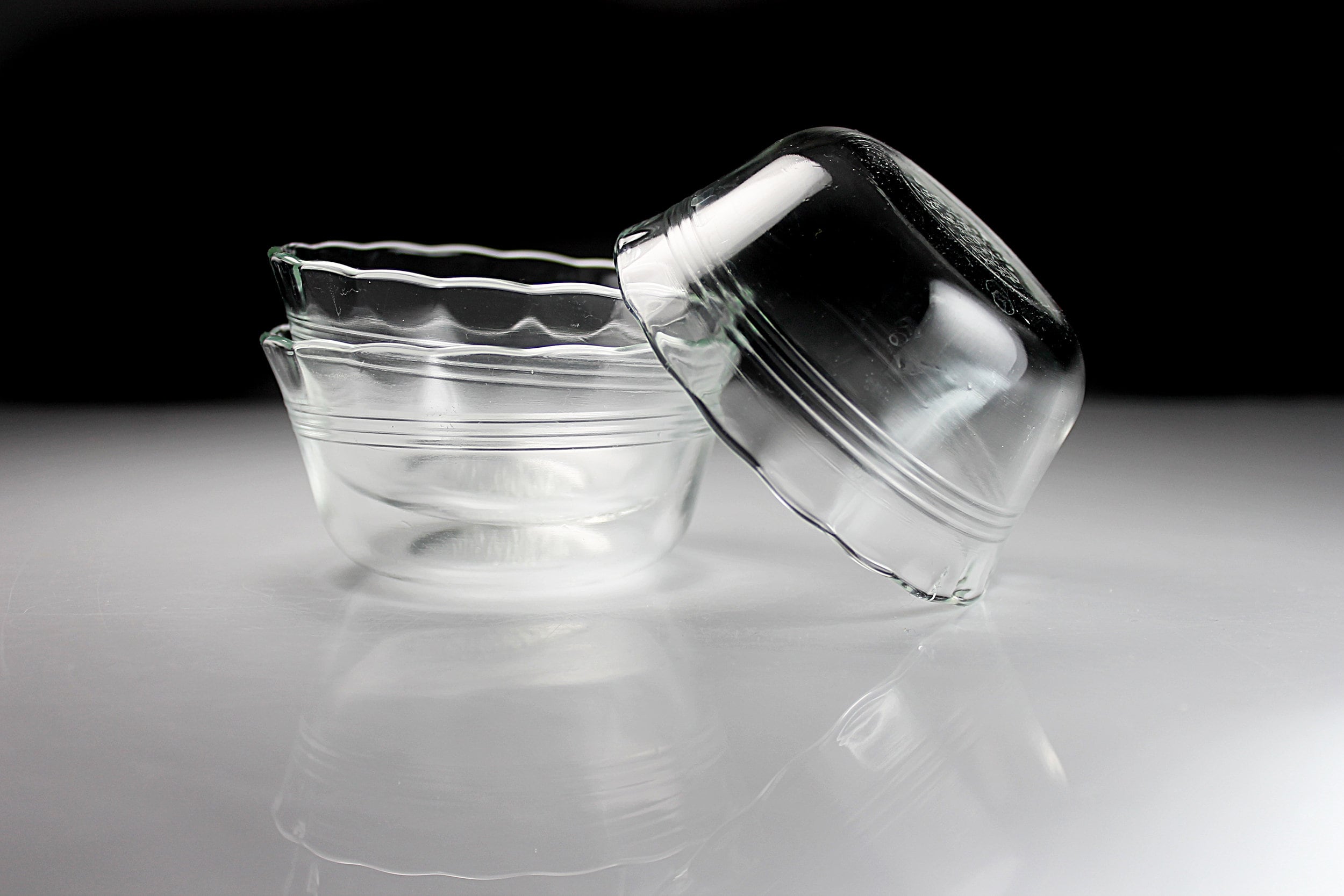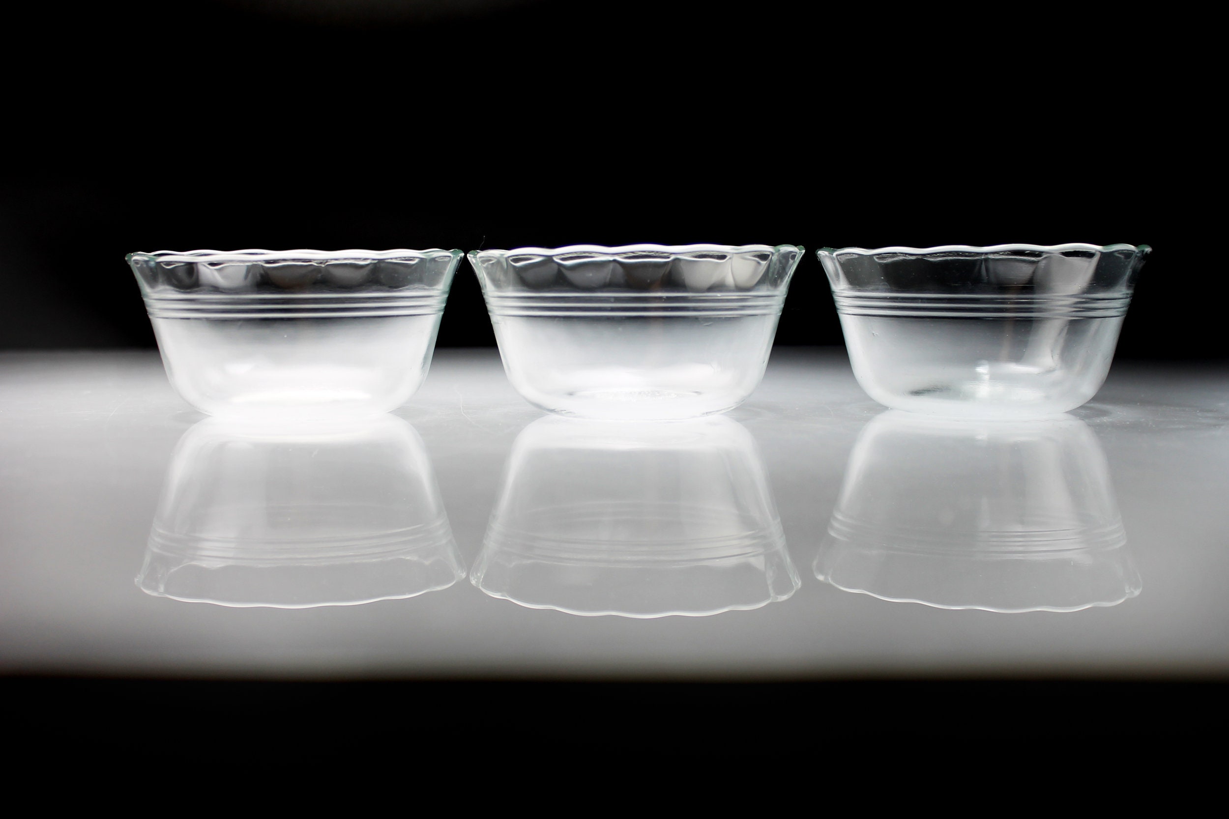 Pyrex Custard Cups, Originals Clear, Set of 3, Bakeware, Serveware, Clear Glass, Three Ring, Scalloped Edge