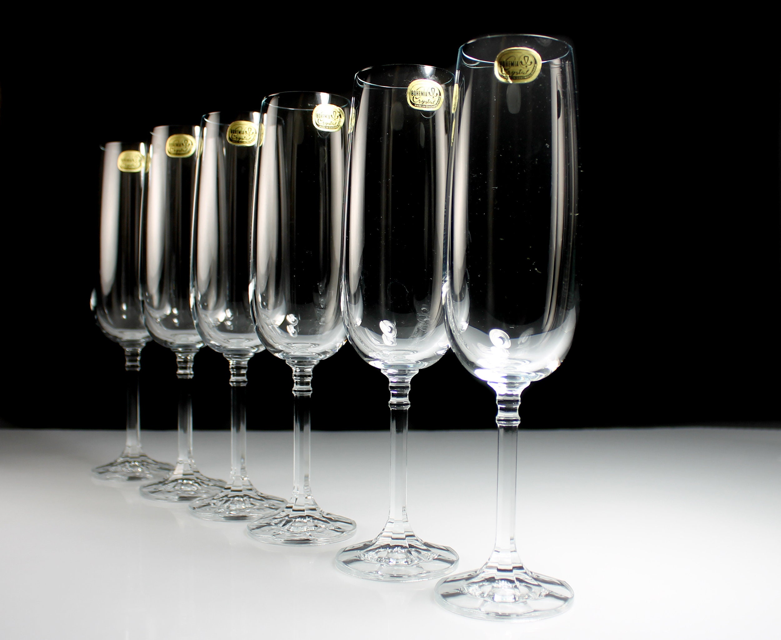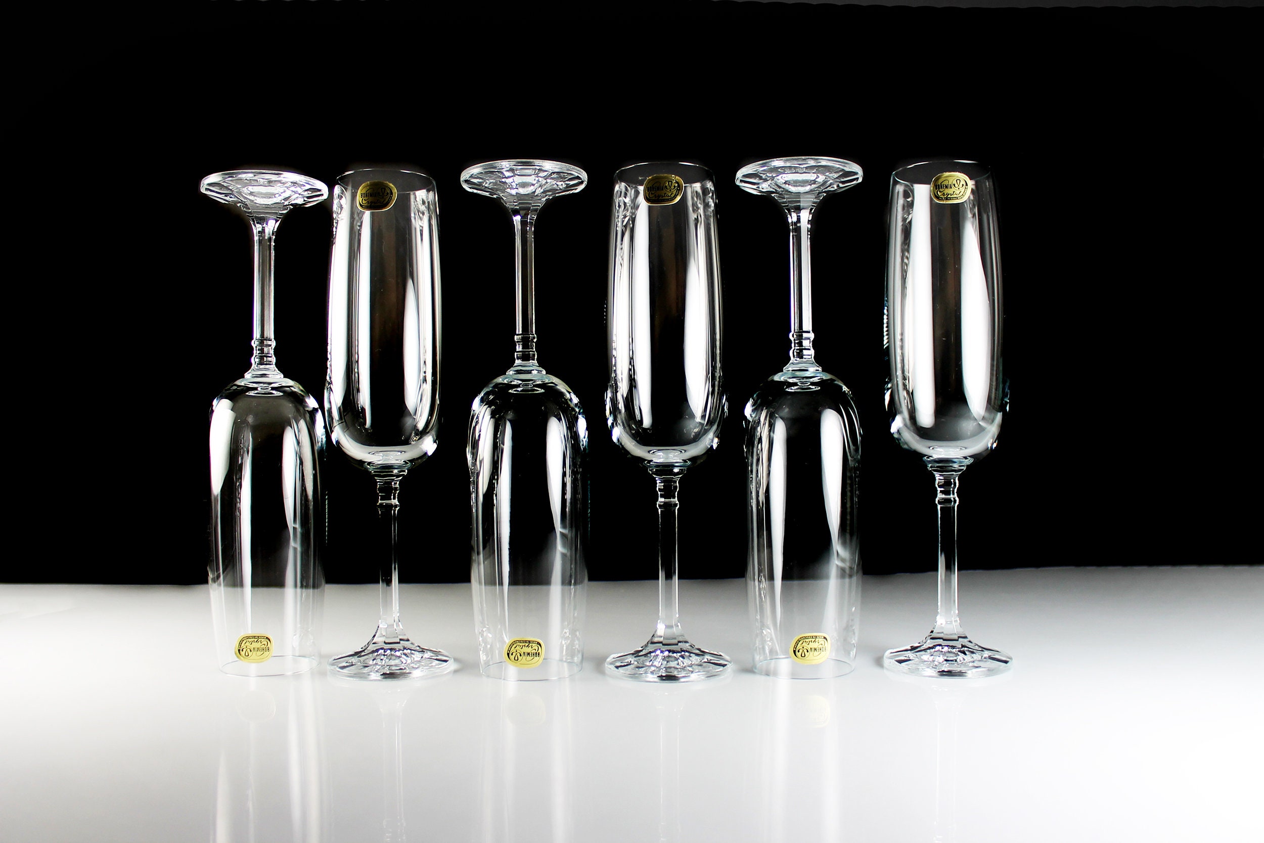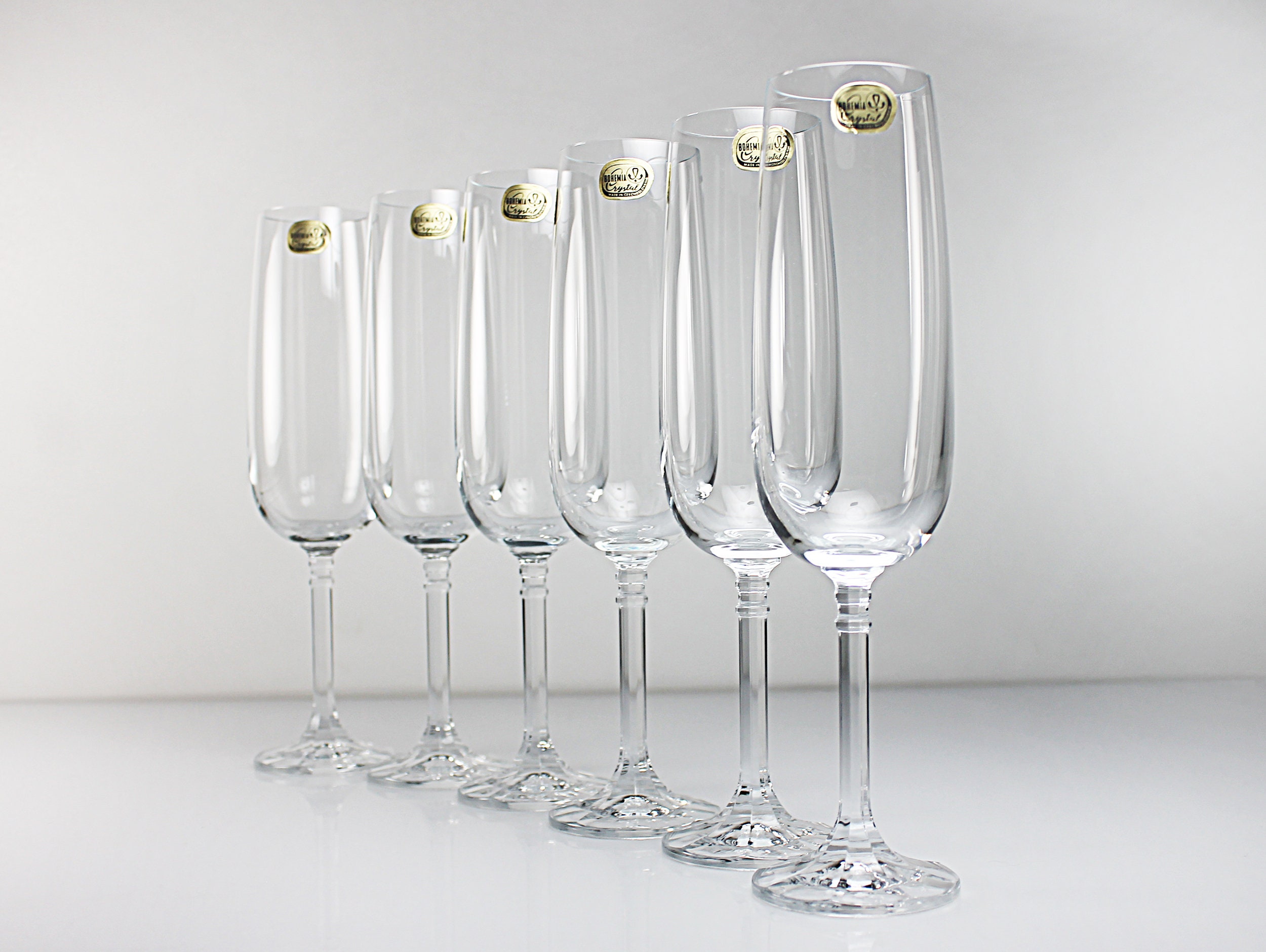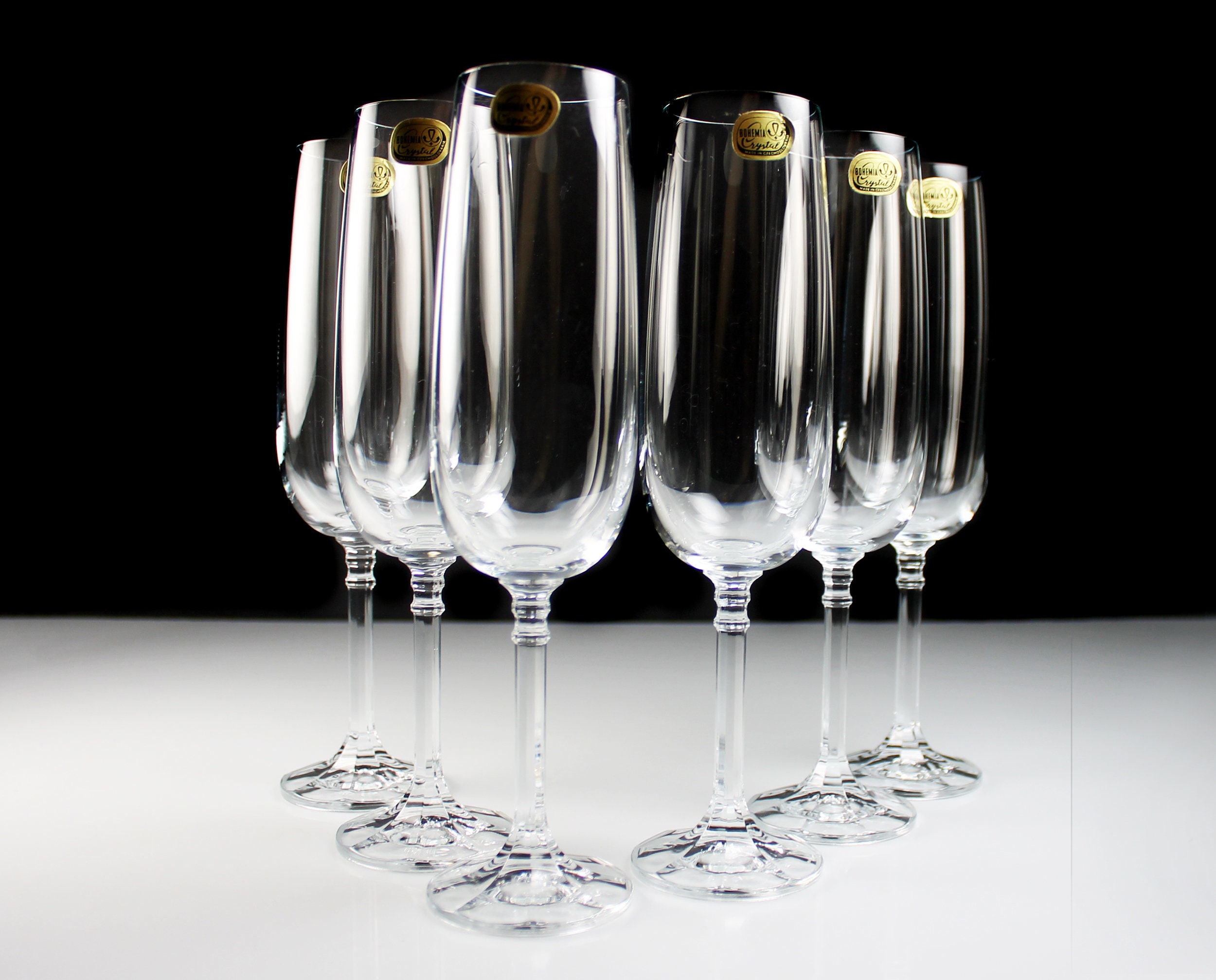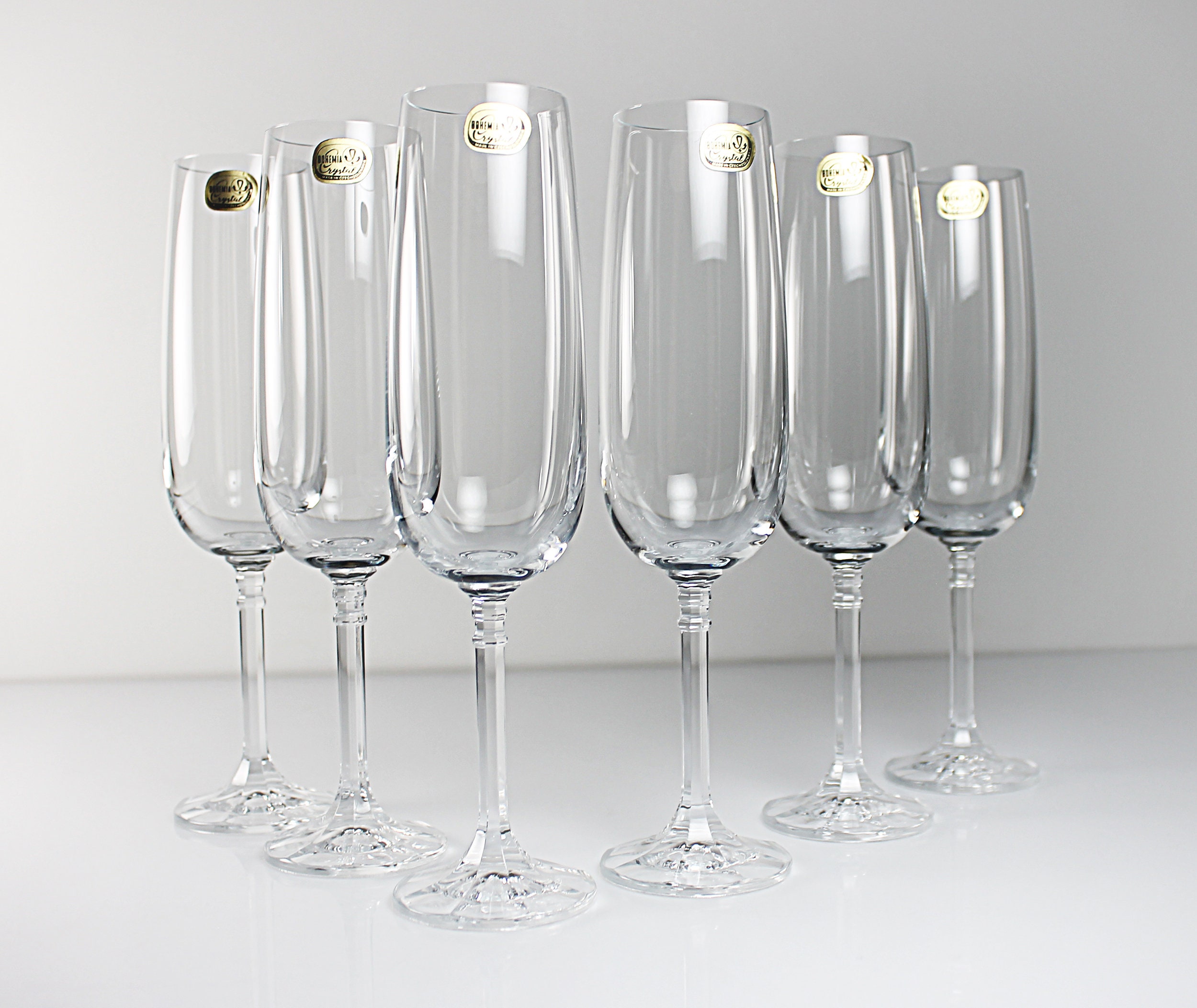 Crystal Champagne Flutes, Bohemia Crystal, Isabelle, Set of 6, New Old Stock, Toasting Glasses, Clear Glass, Stemware, Barware