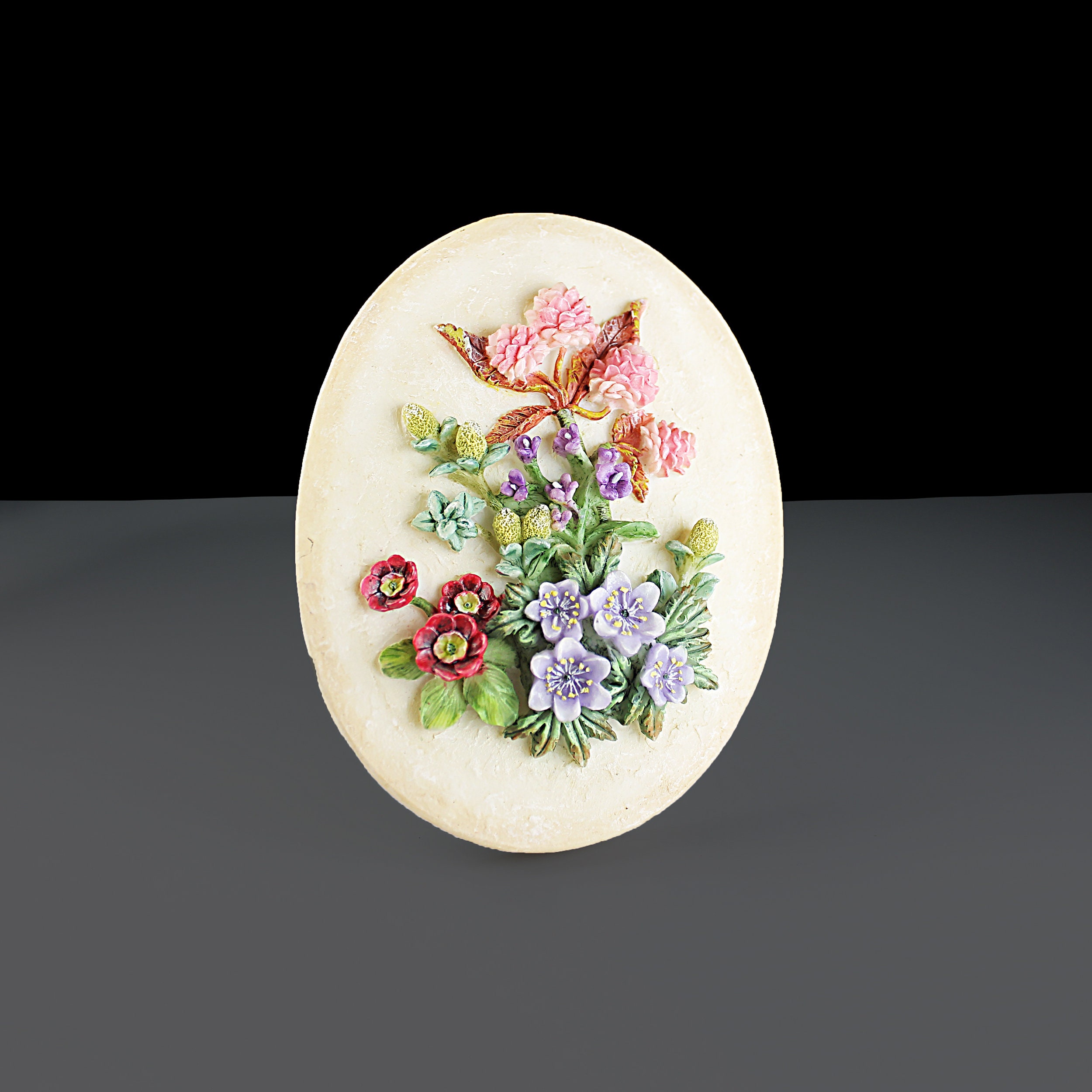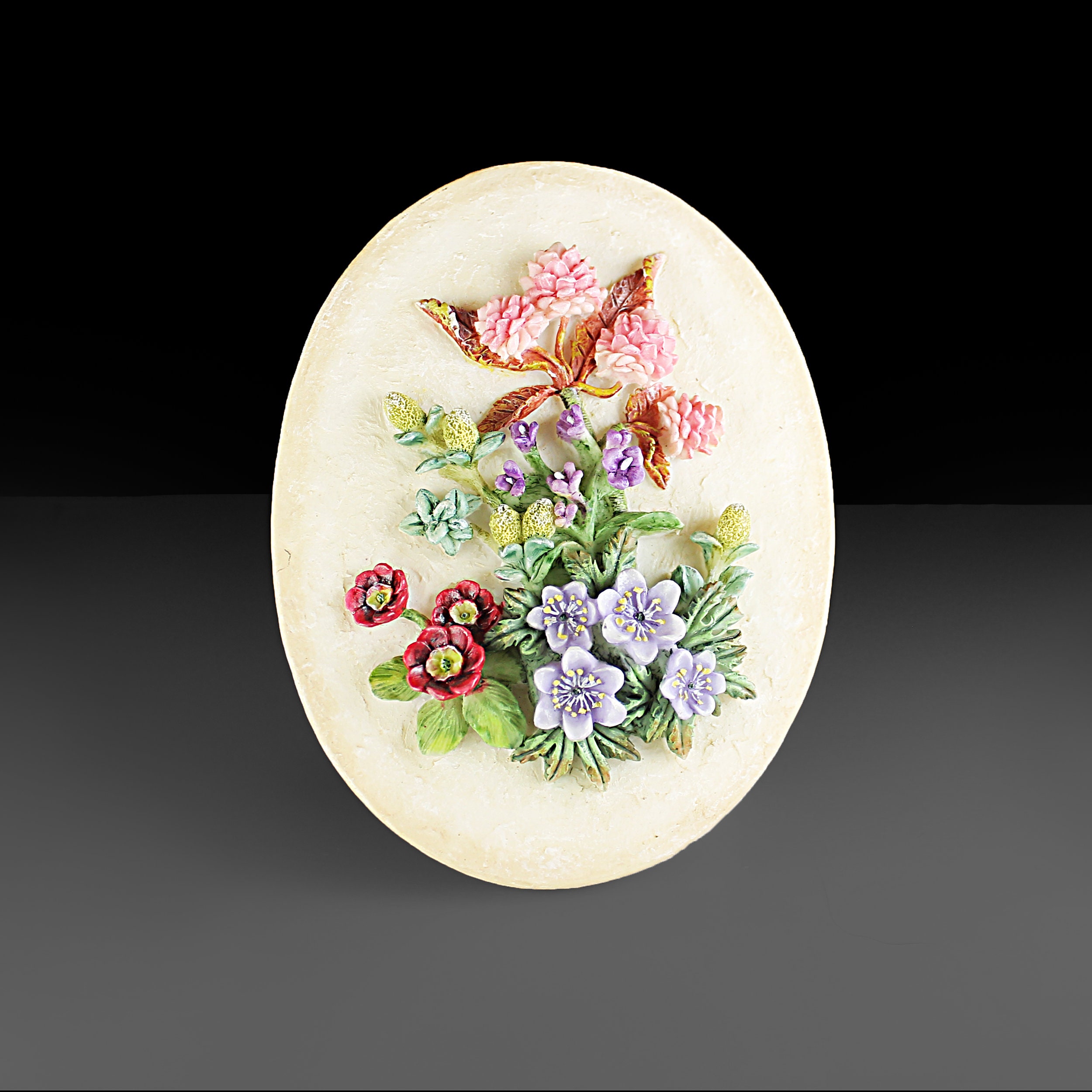 Oval Raised Floral Wall Plaque, Home Decor, 3D Plaque, Wall Art