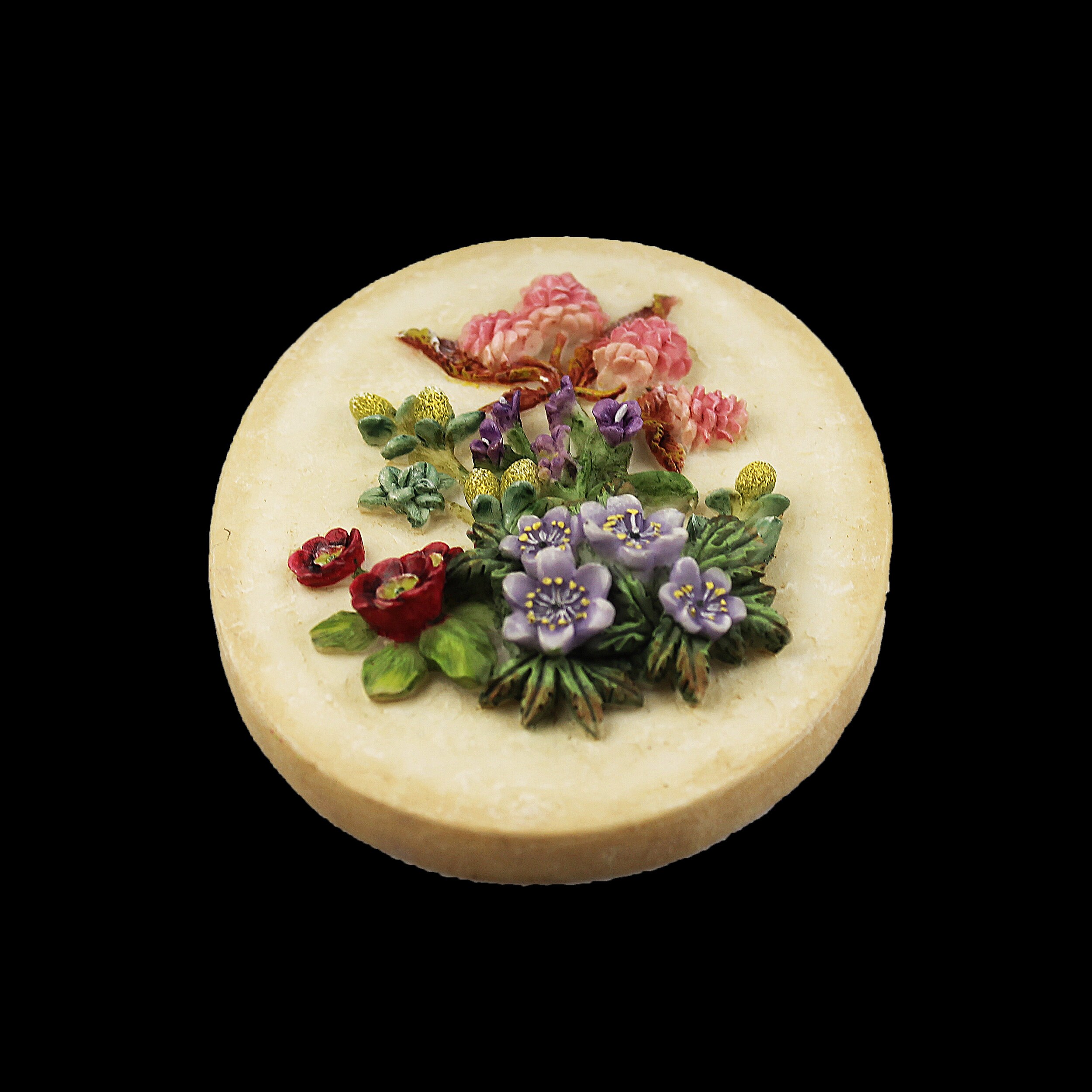 A beautiful raised floral oval wall plaque. The raised flowers give the plaque a 3D effect. This would be perfect in a dining room, kitchen, or bathroom. A great vintage addition to your home decor. It would be a wonderful gift idea for a flower lover.