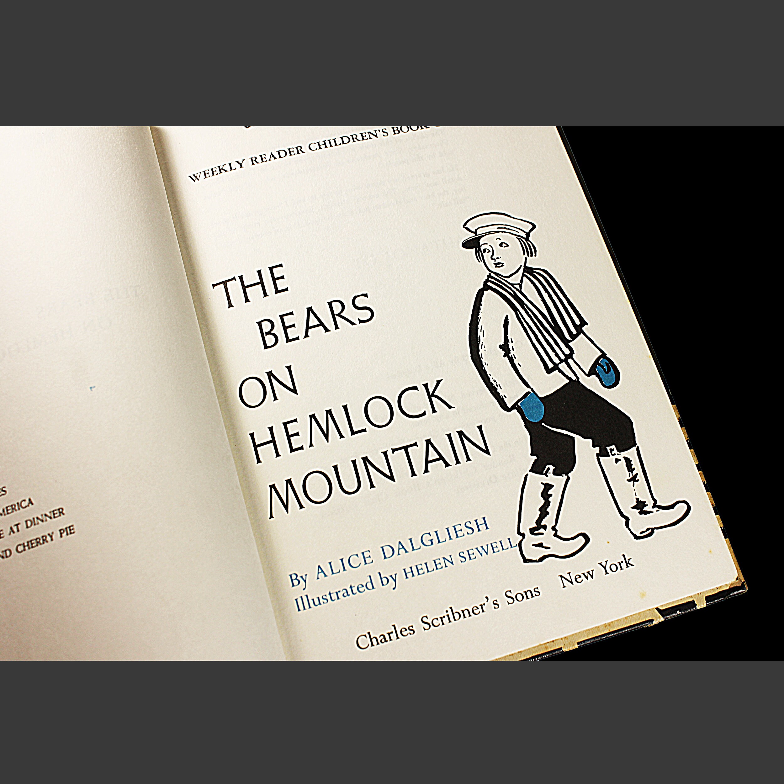 A wonderful children's hardcover book called The Bears on Hemlock Mountain by Alice Dalgliesh and Illustrated by Helen Swell. Weekly Reader 1952 edition and an ex-library book.