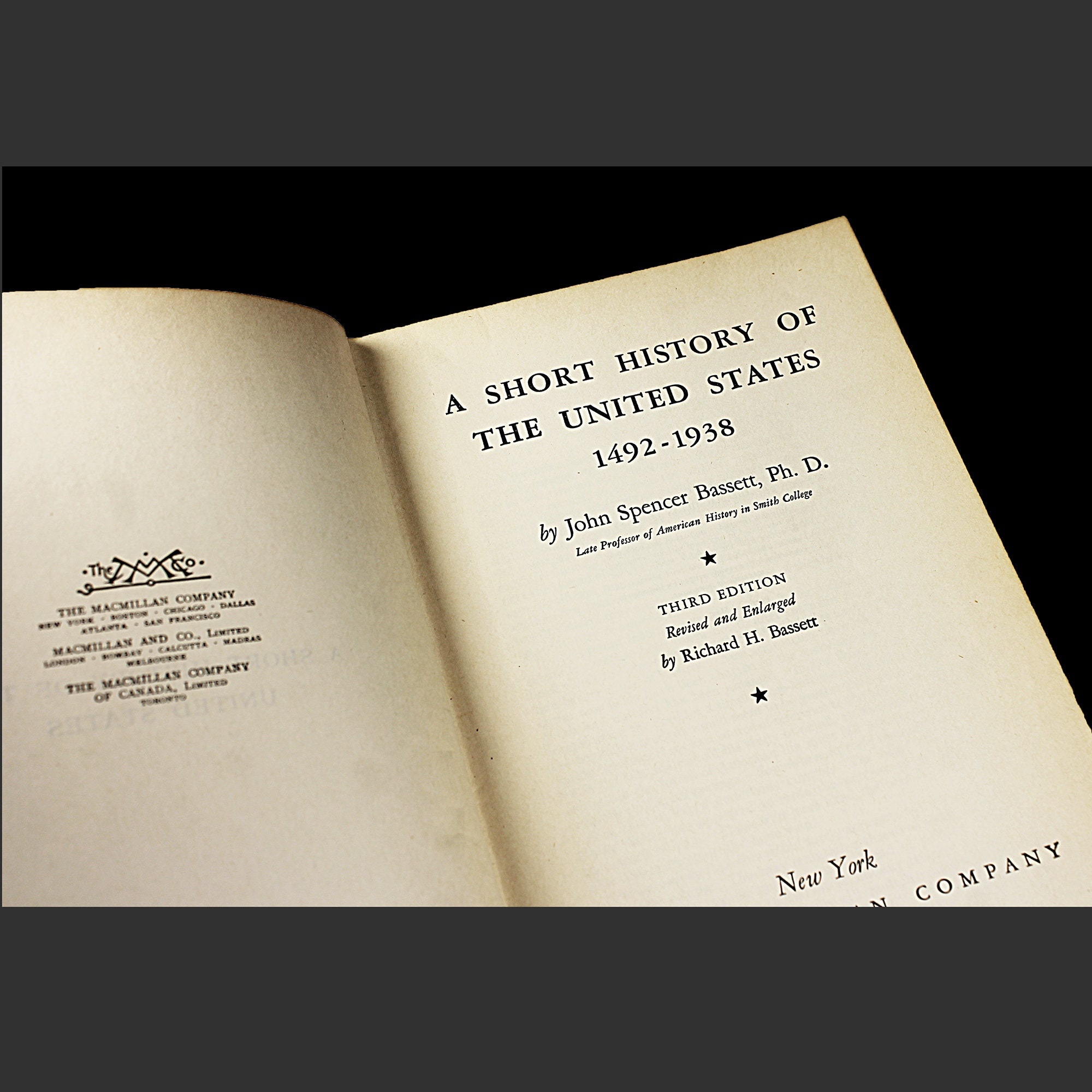 A wonderful hardcover book entitled A Short History of the United States 1492-1938 by John Spencer Bassett. This is a third edition that has been revised and enlarged by Richard H. Bassett. It also features various maps.