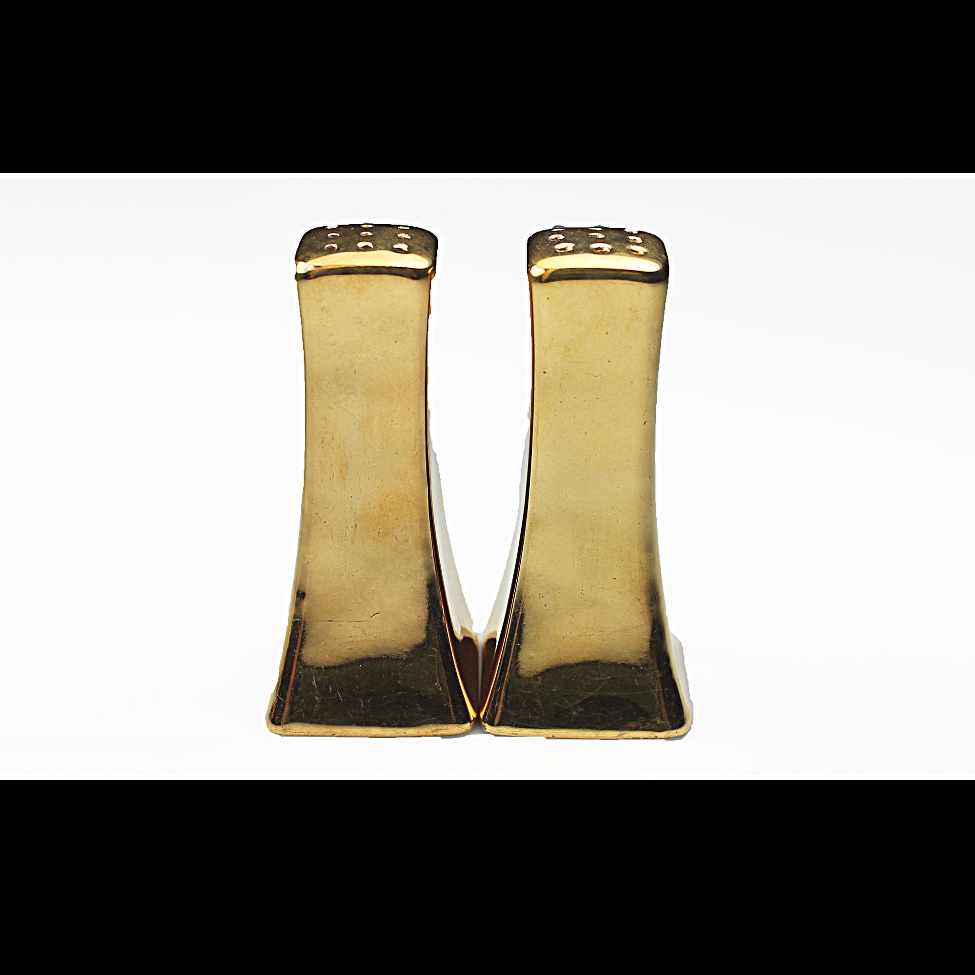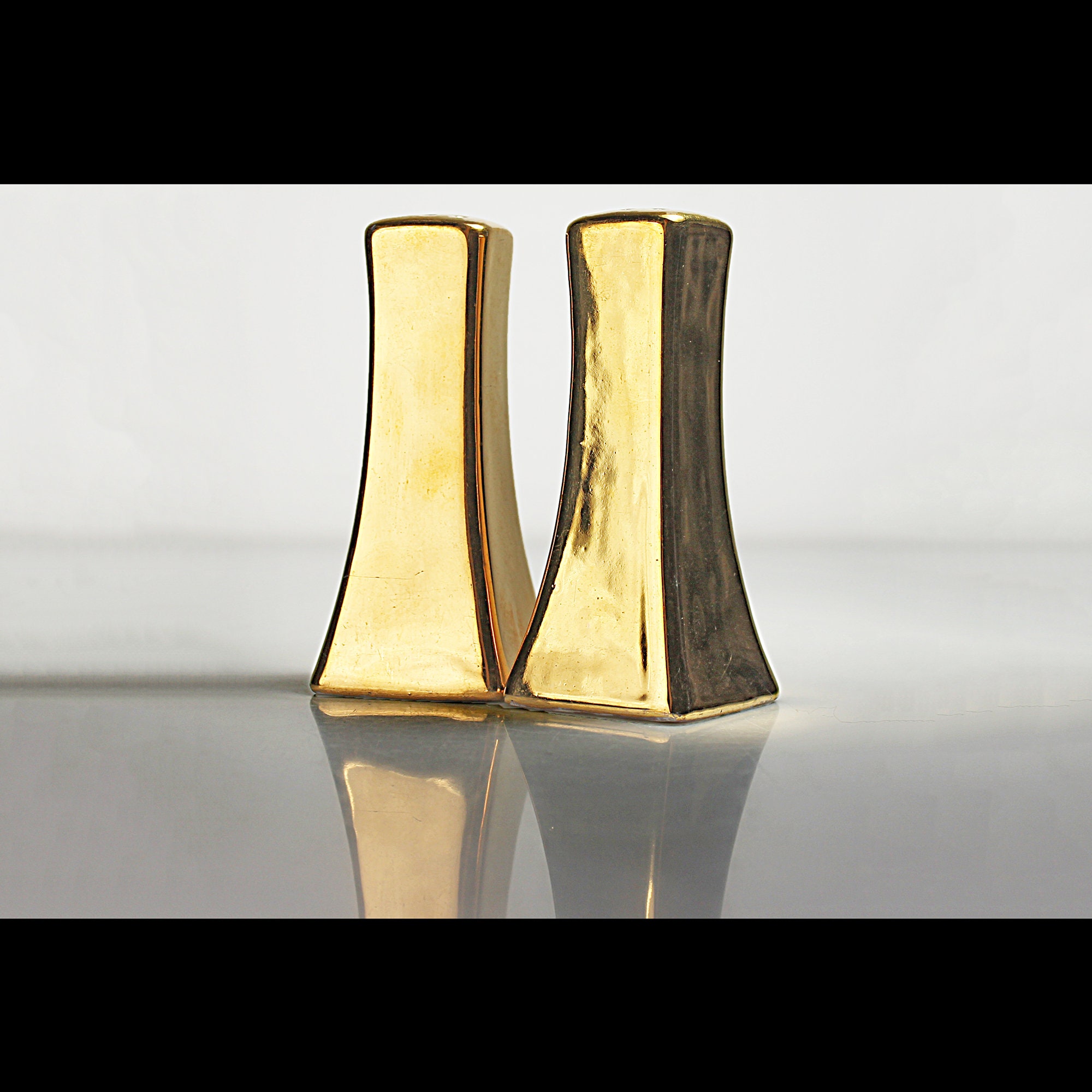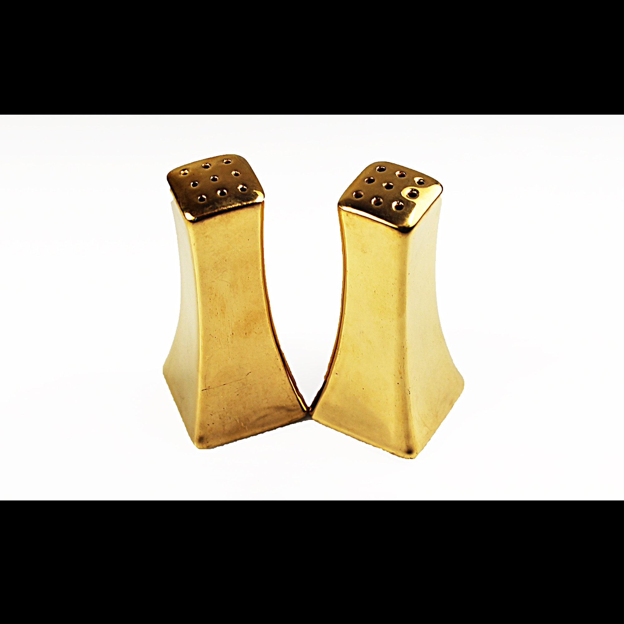 Gold Salt and Pepper Shakers, Hand Painted, Tableware, Dinnerware