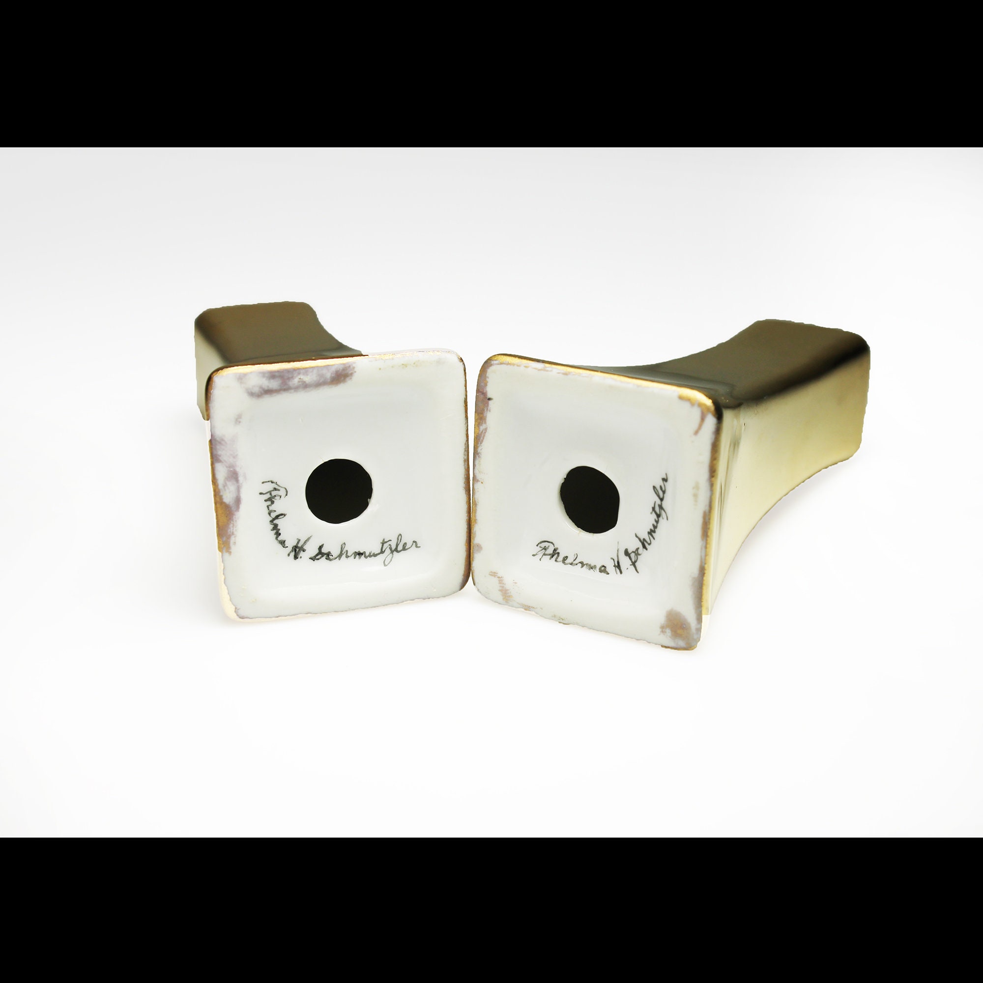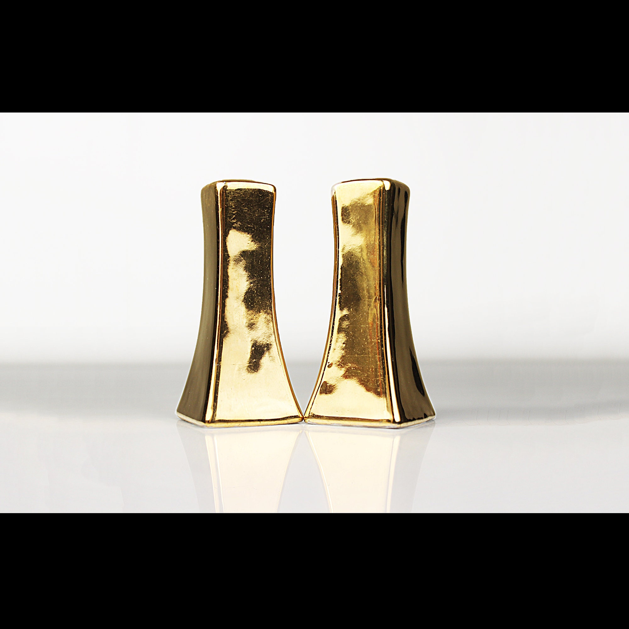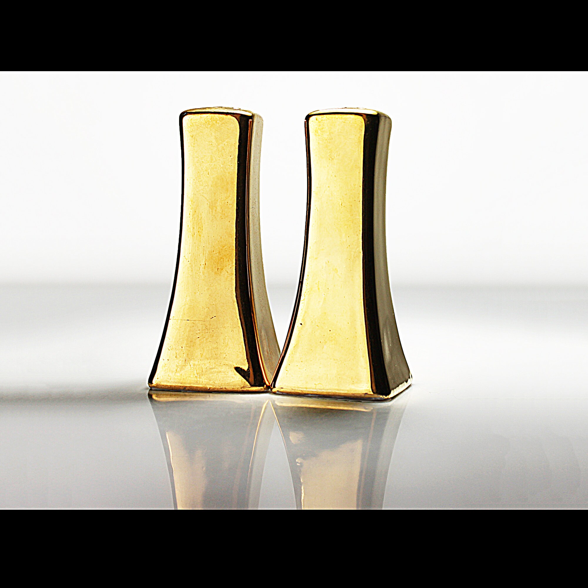 Gold Salt and Pepper Shakers, Hand Painted, Tableware, Dinnerware