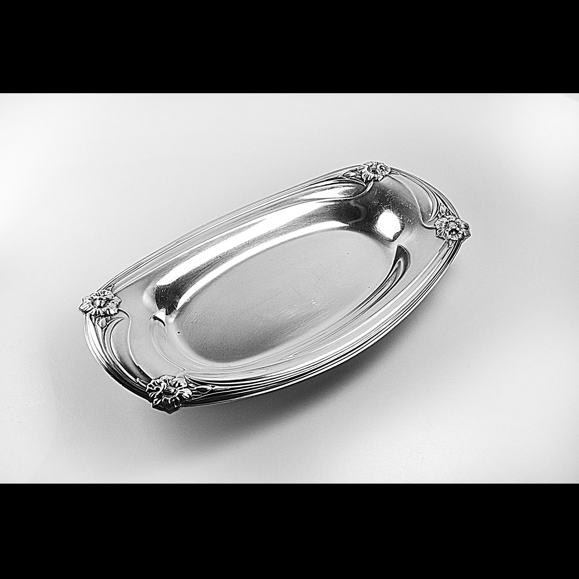 International Silver Bread Tray, Daffodil Pattern, 1847 Rogers Bros, Silver Plate, 13 Inch Vintage Elegance