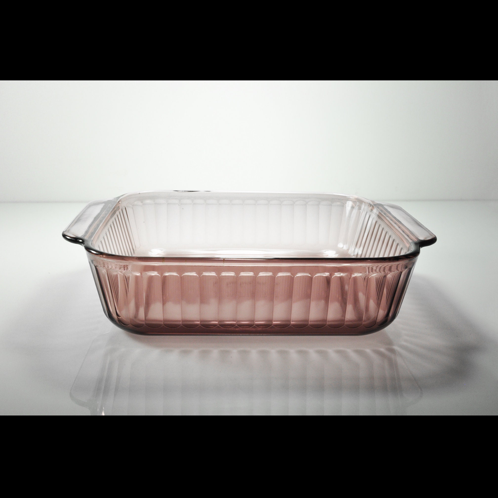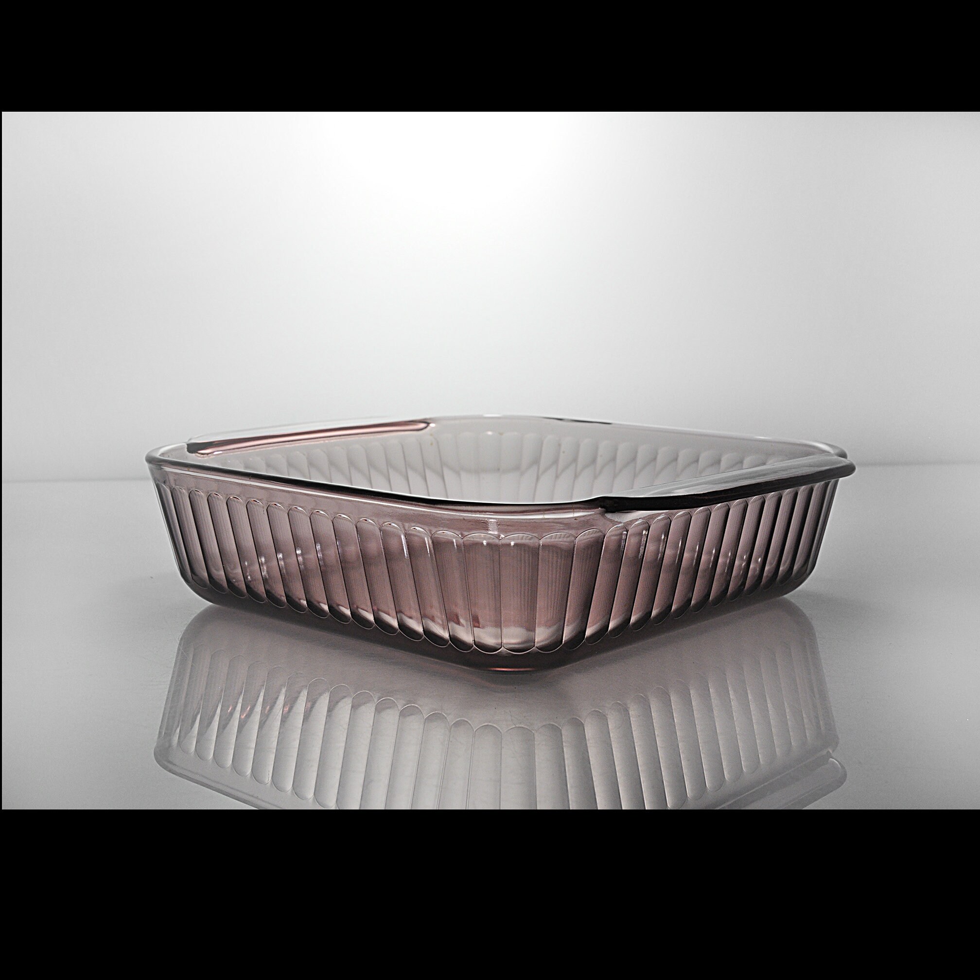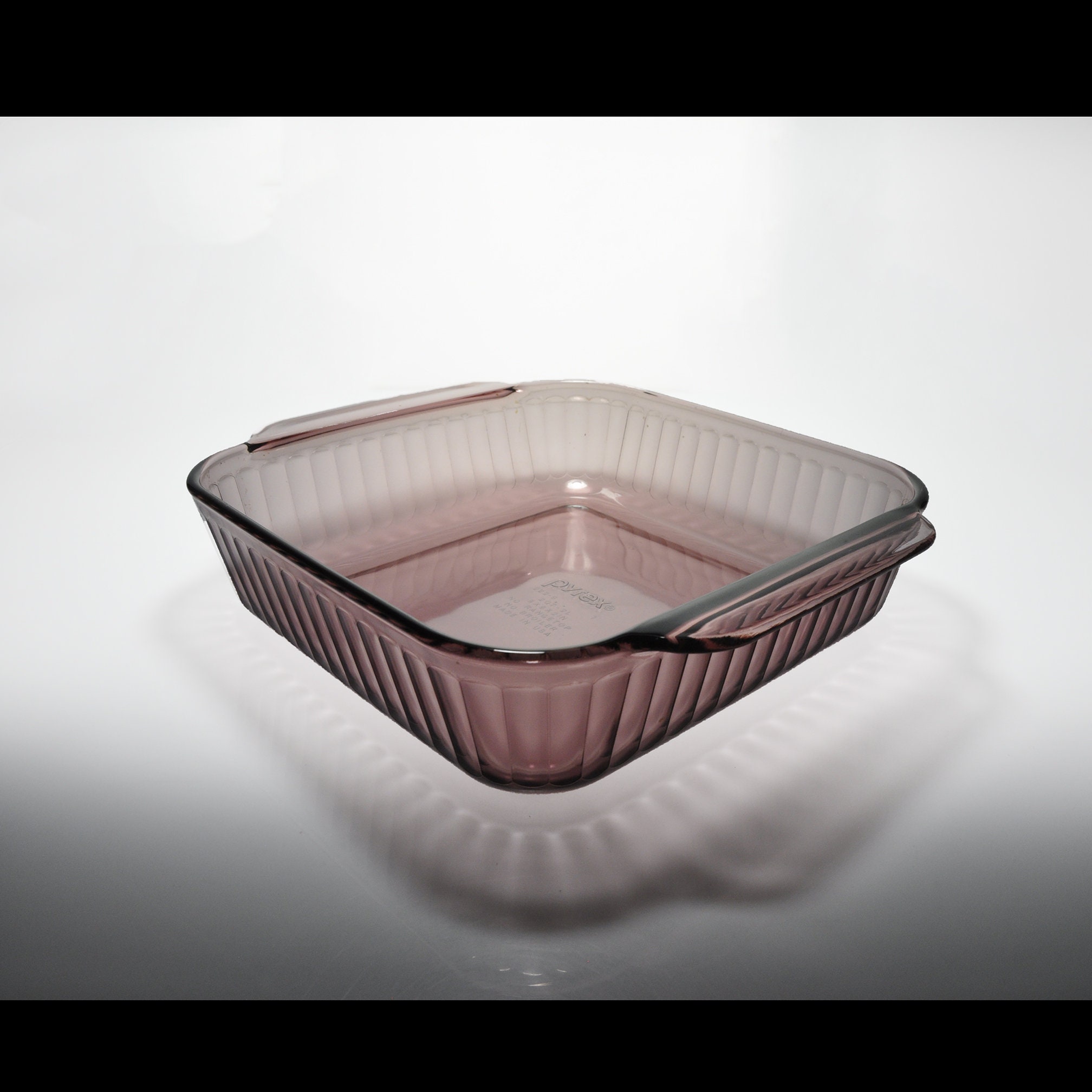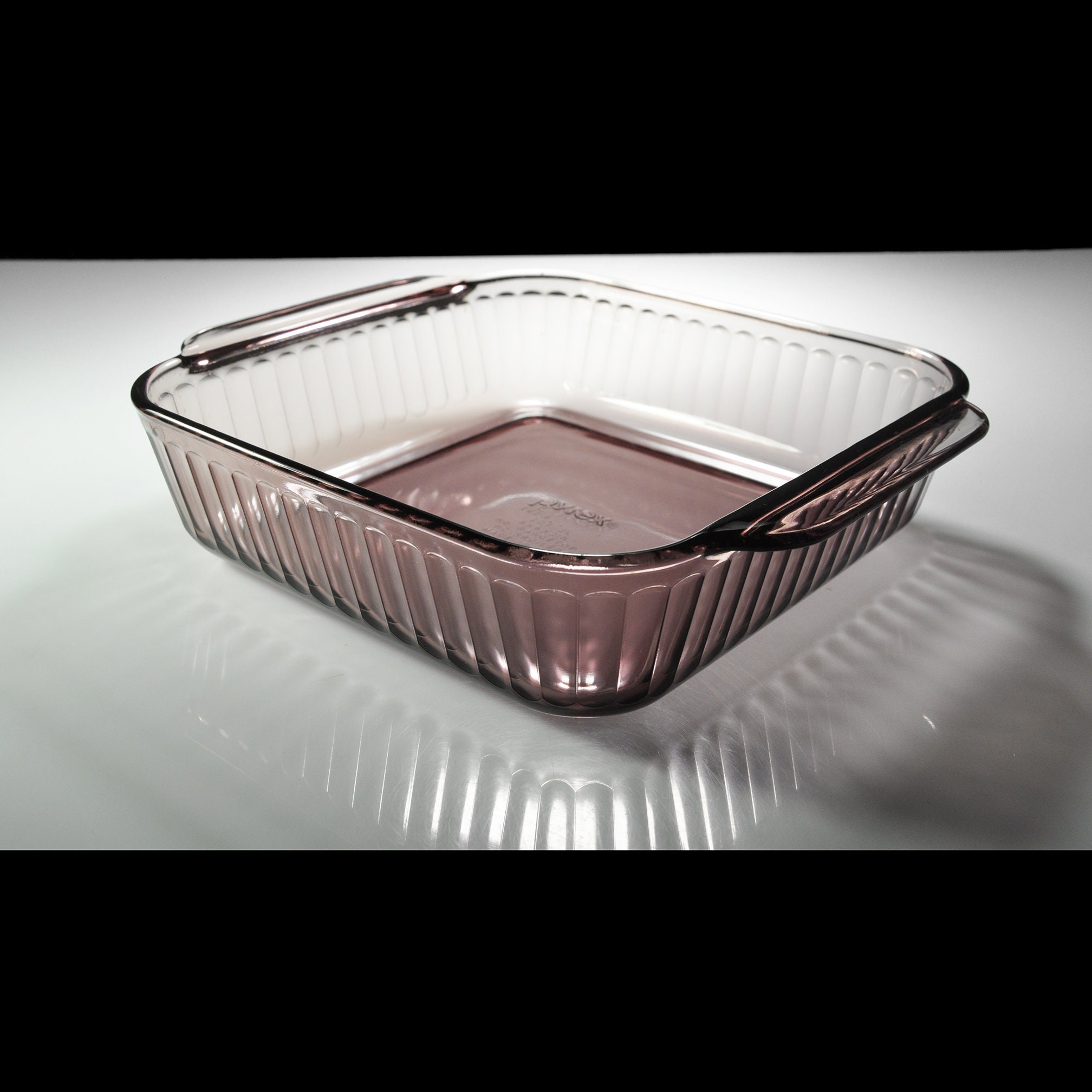 Pyrex Square Glass Baking Dish - Sculptured Cranberry Pattern, 2 Quart, 8 Inch Ovenware