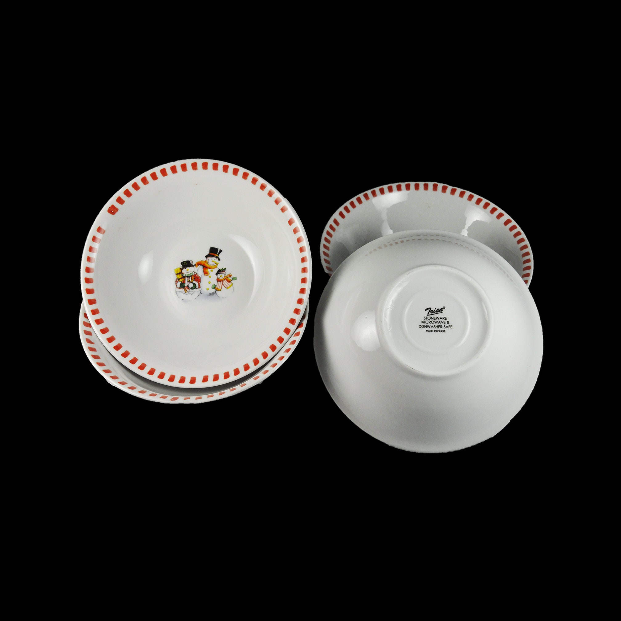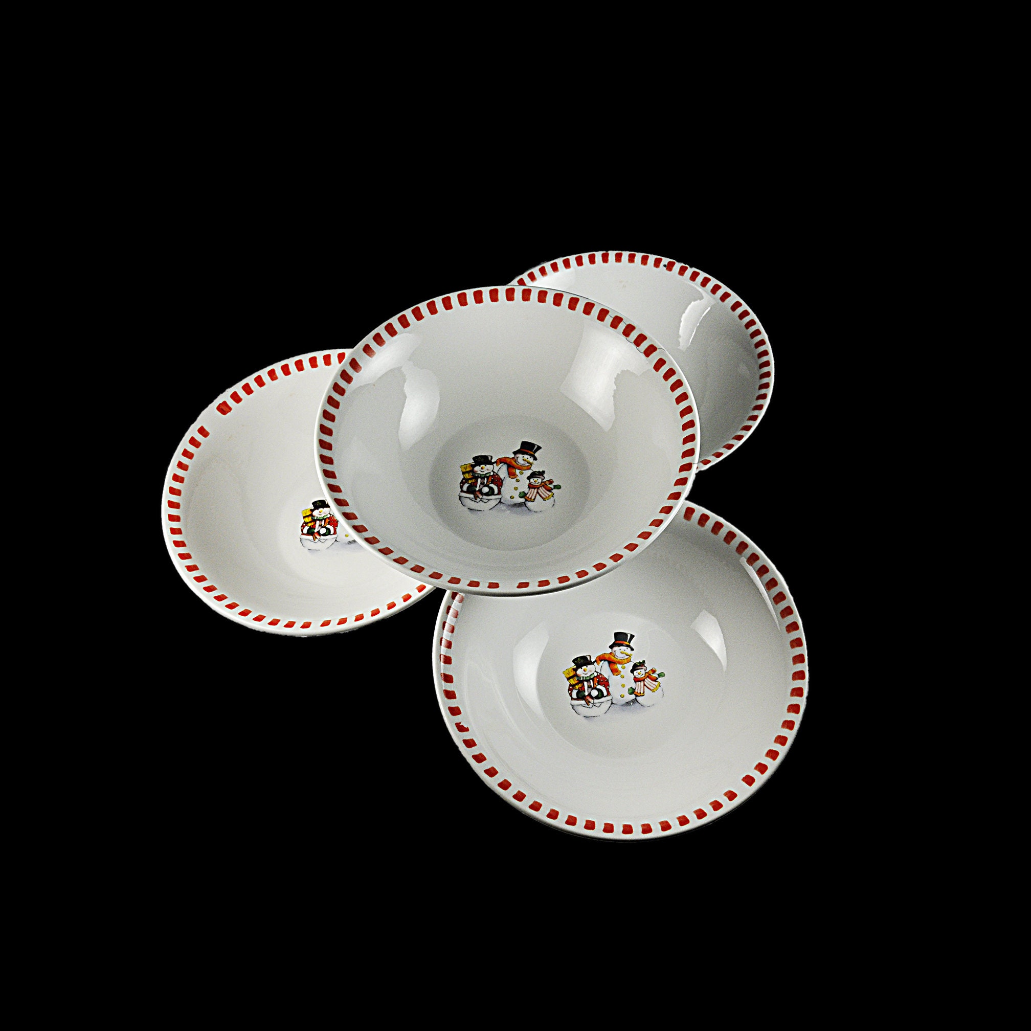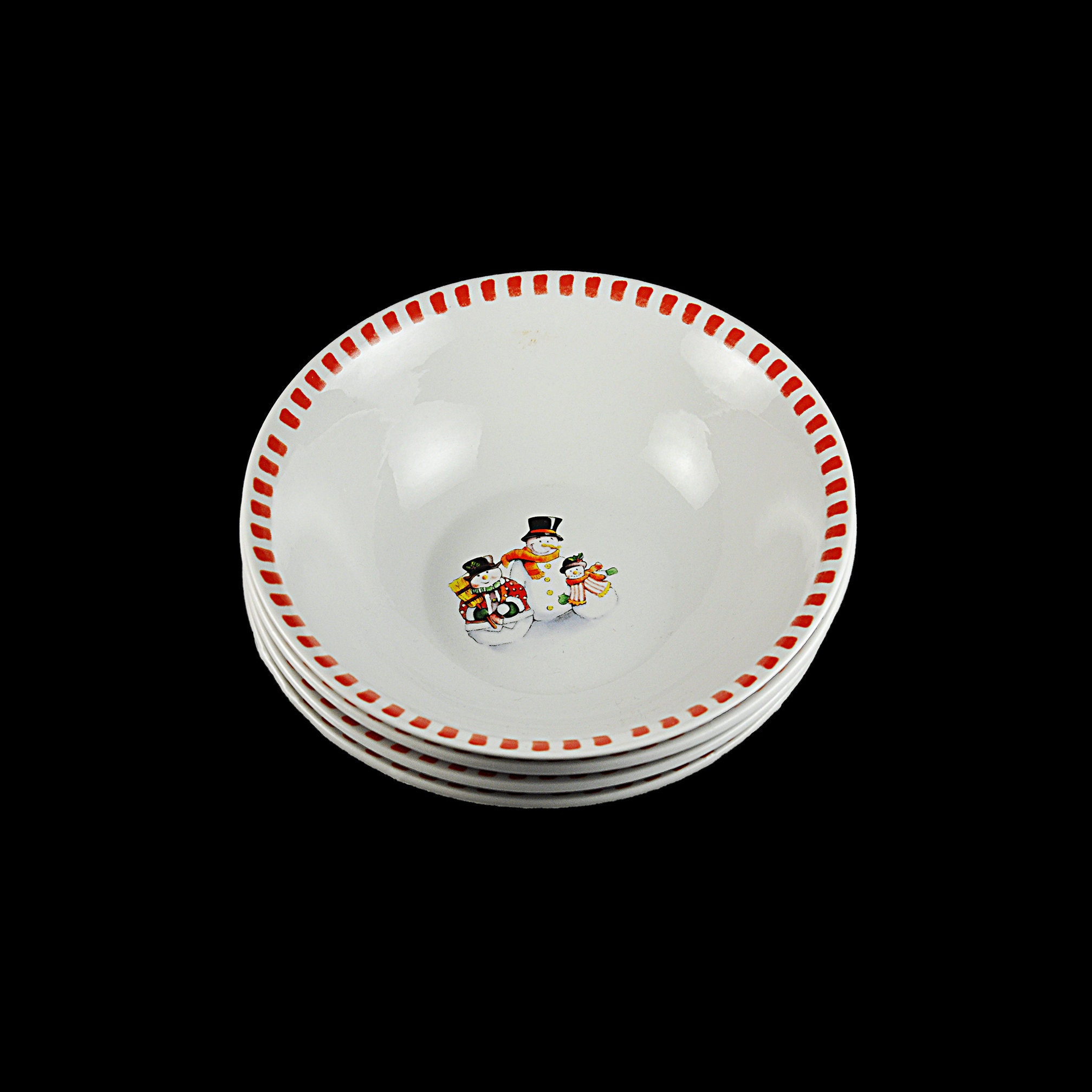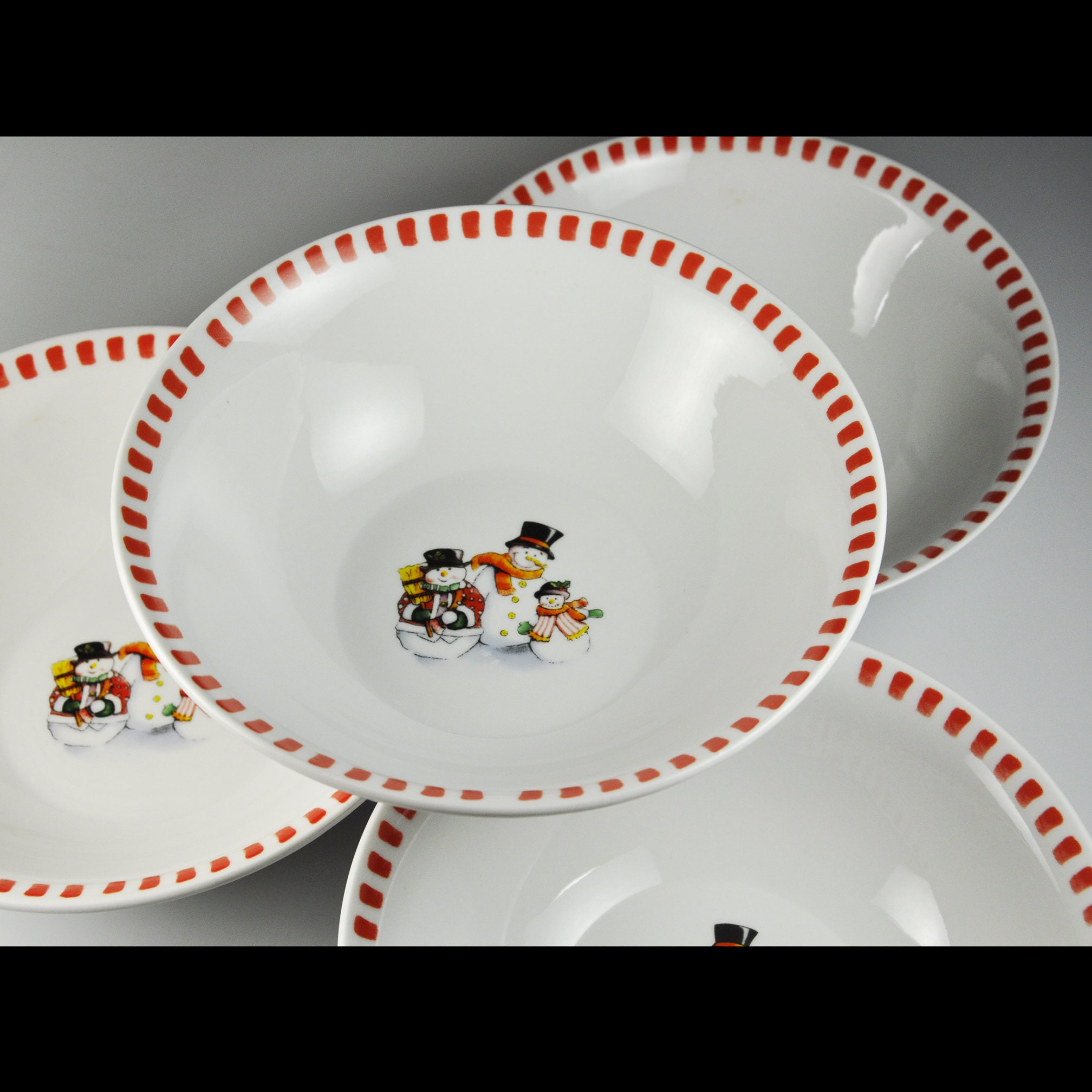 Soup Bowls, Trisa Dinnerware, Set of 4, Snowman Family, Winter and Holiday Decor
