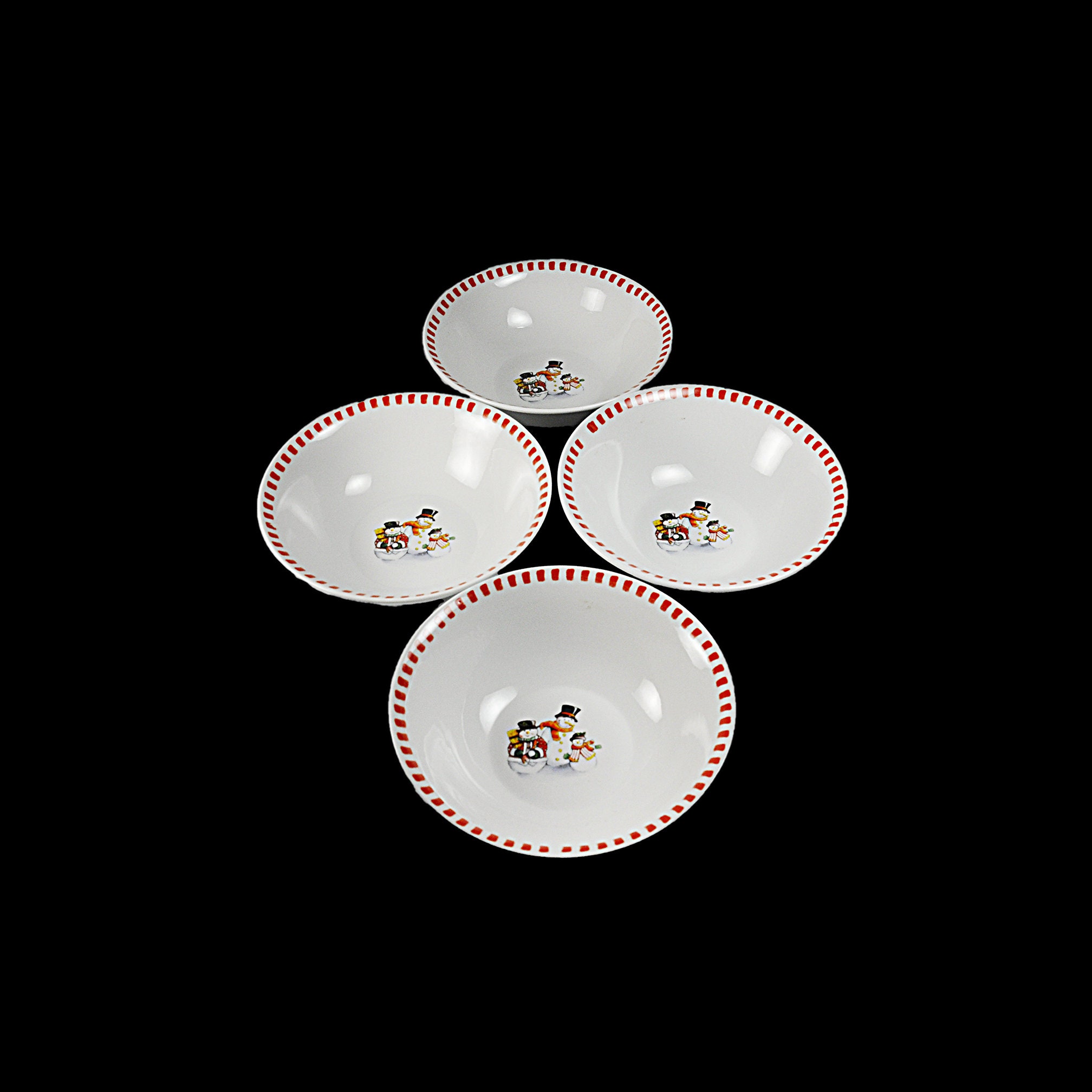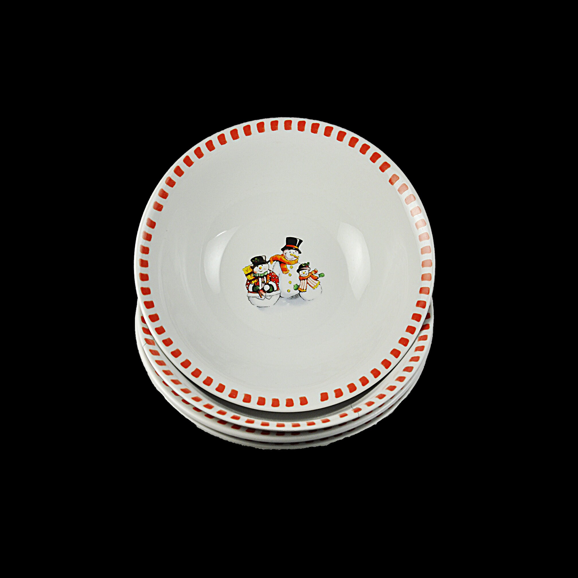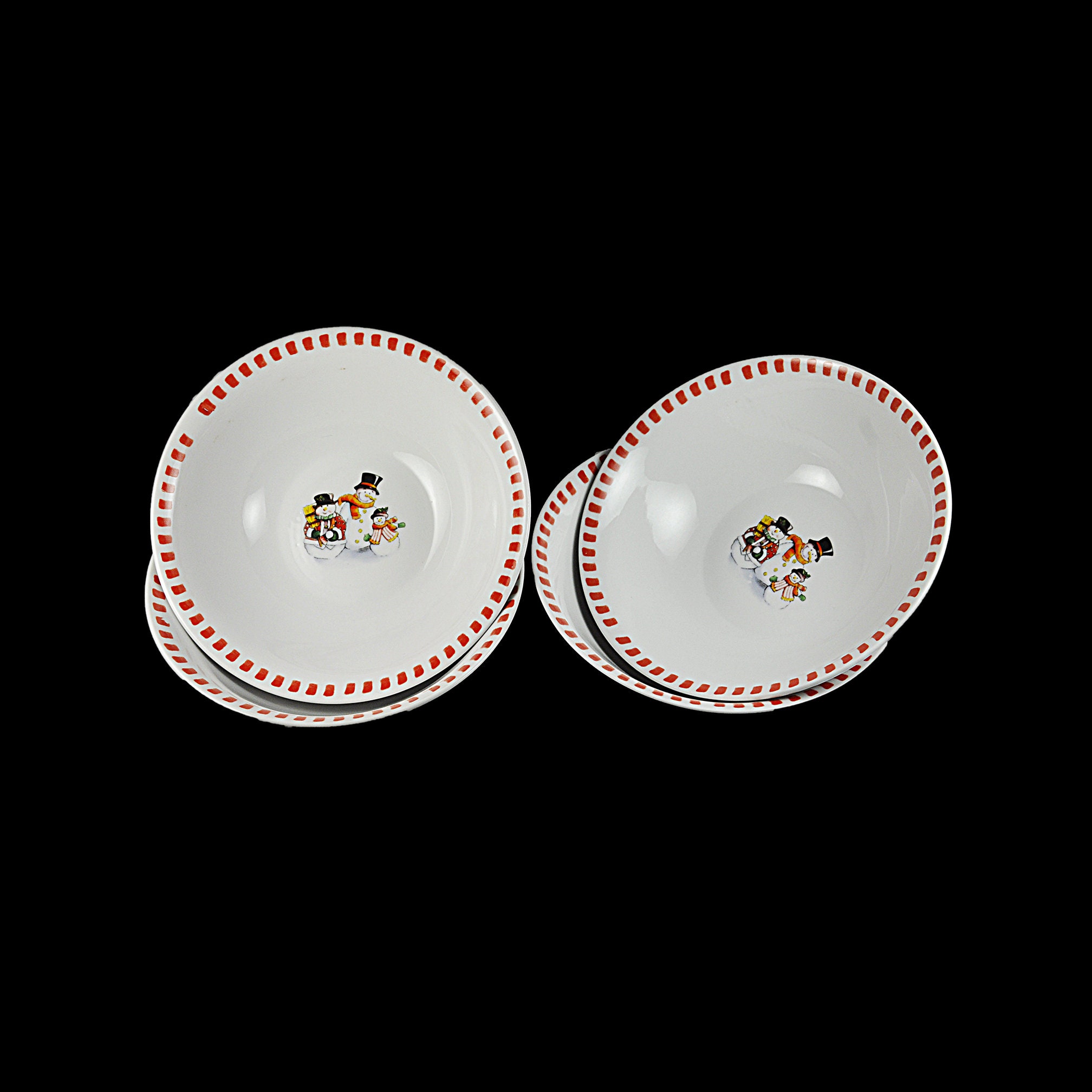 Bring a touch of winter magic to your holiday table with this charming set of four soup bowls by Trisa Dinnerware. Featuring a delightful snowman family pattern and festive red squares on the edge. These bowls are a perfect addition to your winter decor, adding a festive touch to your dining experience. Ideal for holiday gatherings, family dinners, or as a special gift.