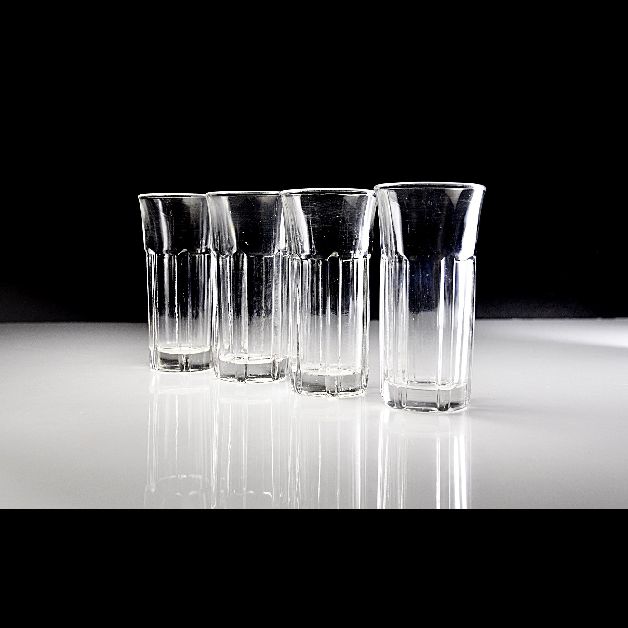 Add a touch of charm to your home bar with this set of 4 vintage shot glasses by Federal Glass. Each glass holds 4 ounces, making them perfect for serving up generous shots, mini cocktails, or liqueurs.