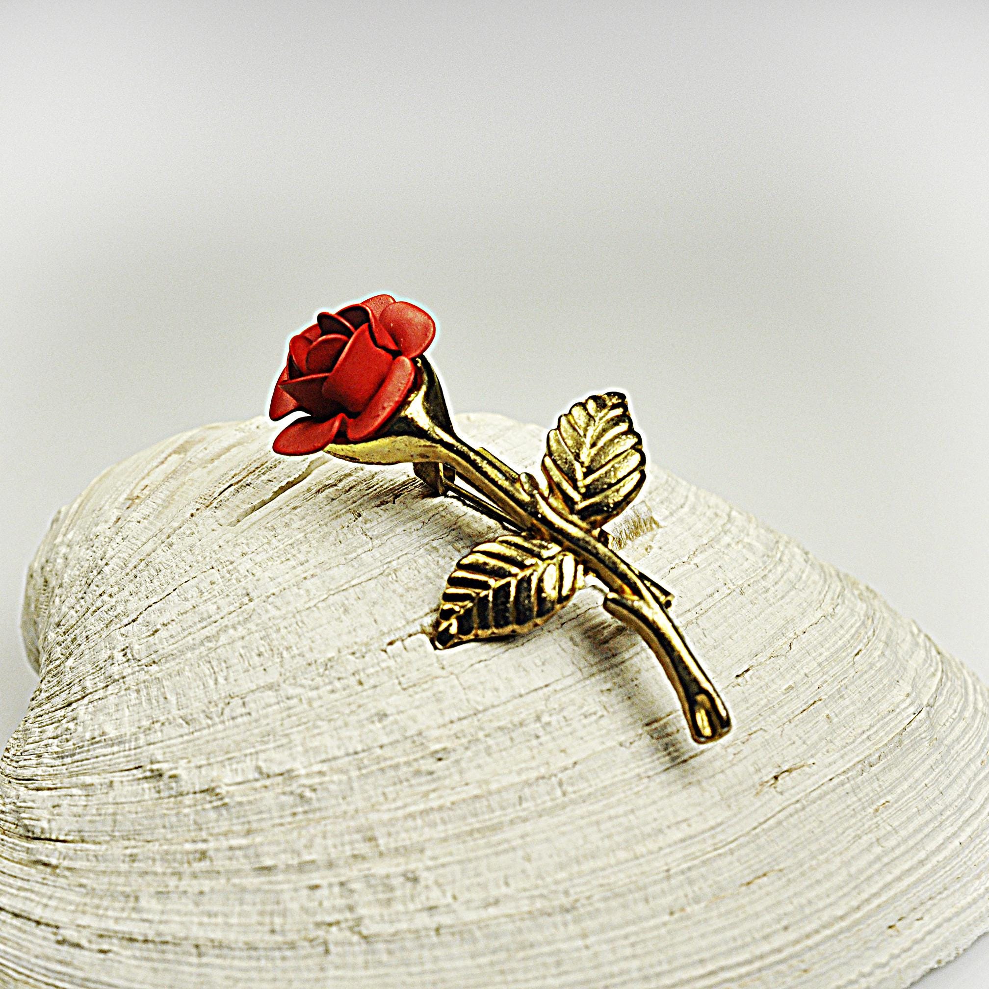 Add elegance to your collection with this stunning antique Victorian brooch. This exquisite brooch features a beautifully enameled red rose with gold-tone metal detailing, embodying the romantic sentimentality of the Victorian era. The brooch is in excellent condition and is equipped with an authentic C-closure—a hallmark of late 19th to early 20th-century craftsmanship. This brooch is perfect for anyone looking to add a romantic and timeless accessory to their wardrobe. It's beautiful design also makes it a thoughtful gift for special occasions such as anniversaries or Valentine's Day.