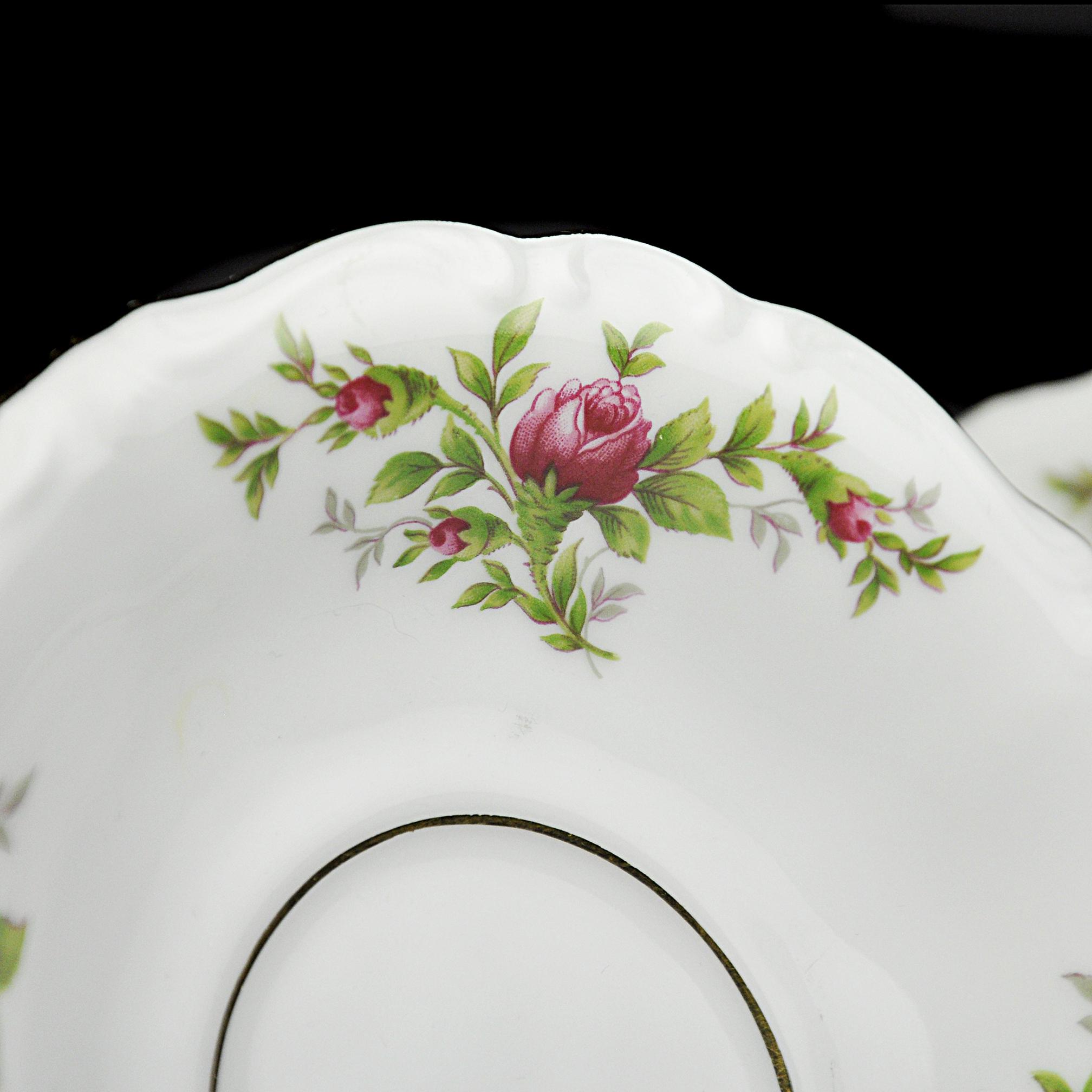 Add charm to your table with this set of two Johann Haviland Moss Rose saucers. Featuring delicate pink roses, lush green leaves, and elegant gold trim, these Bavarian fine china saucers embody timeless beauty. Whether you're completing a tea set, replacing lost pieces, or simply love vintage florals, these saucers are a lovely find!