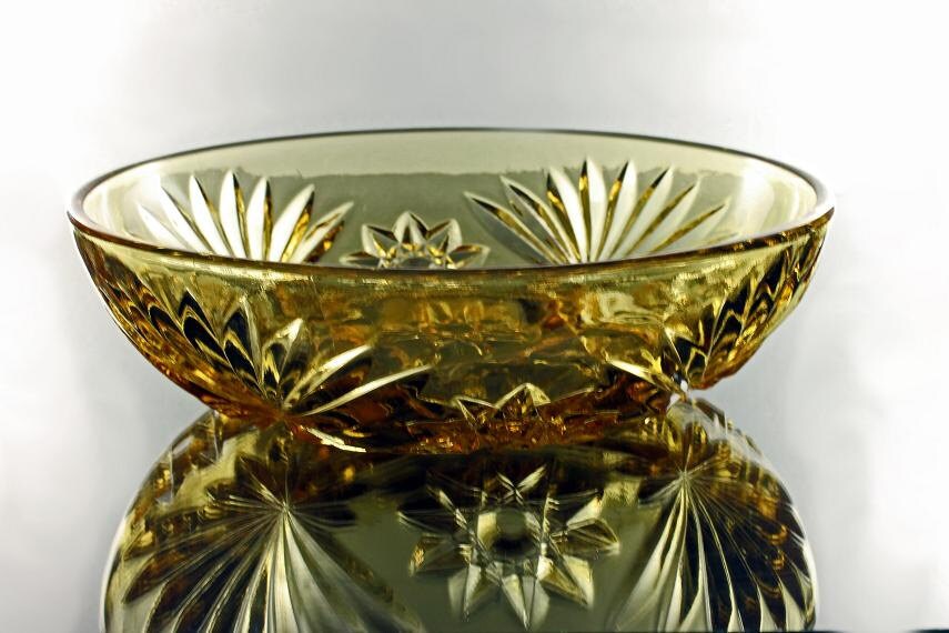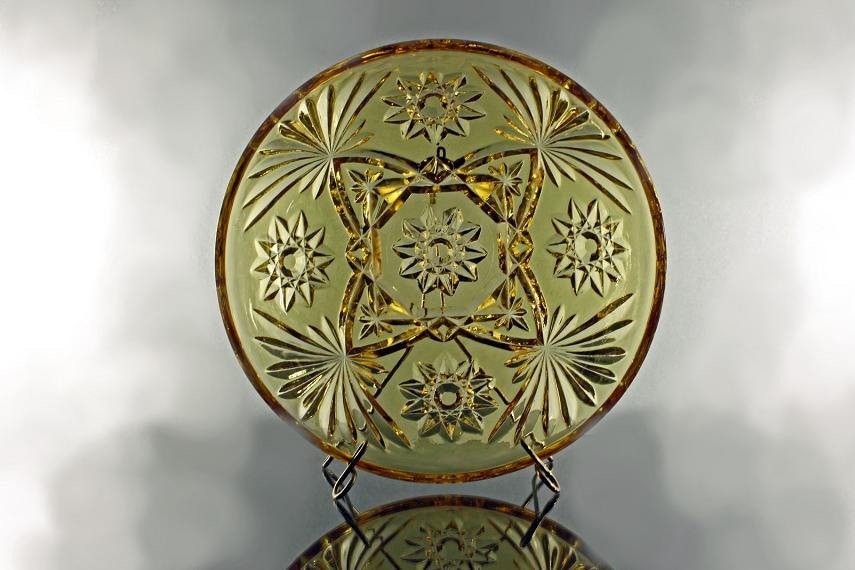 A very lovely prescut amber bowl by Anchor Hocking in the Star of David pattern. This pattern in clear is easily found but not the amber, green, or blue. This bowl has a pretty amber color that will enhance your table, buffet, or sideboard.