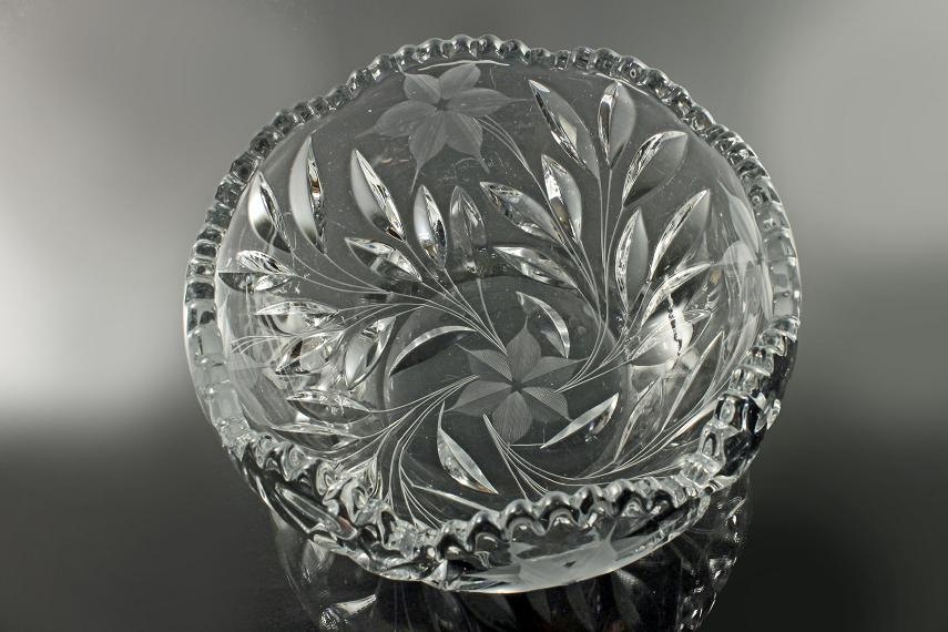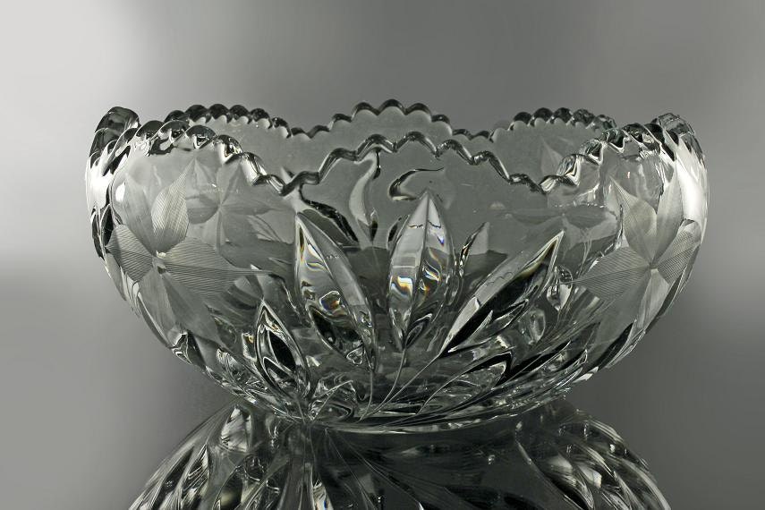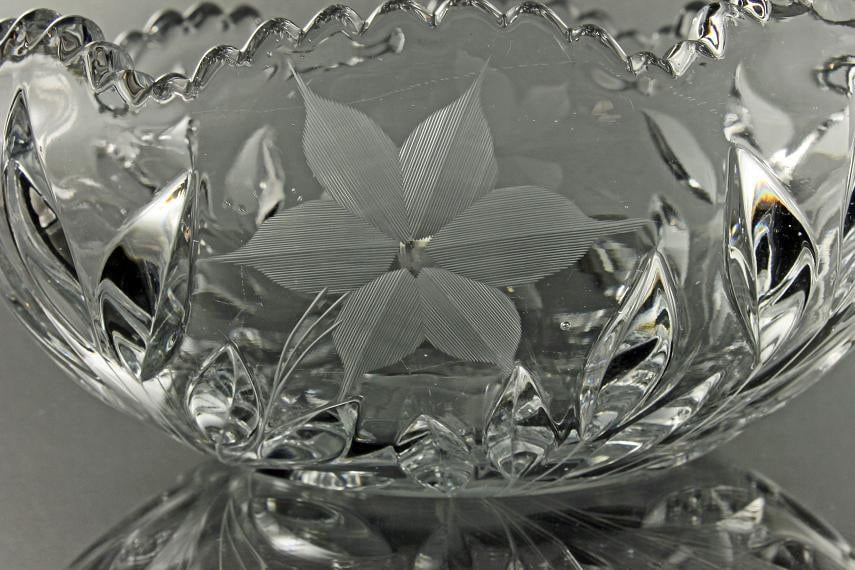 EAPG Crystal Bowl, Daisy and Vine Pattern, Antique, Sawtooth Edge, Clear Glass, Pressed Glass