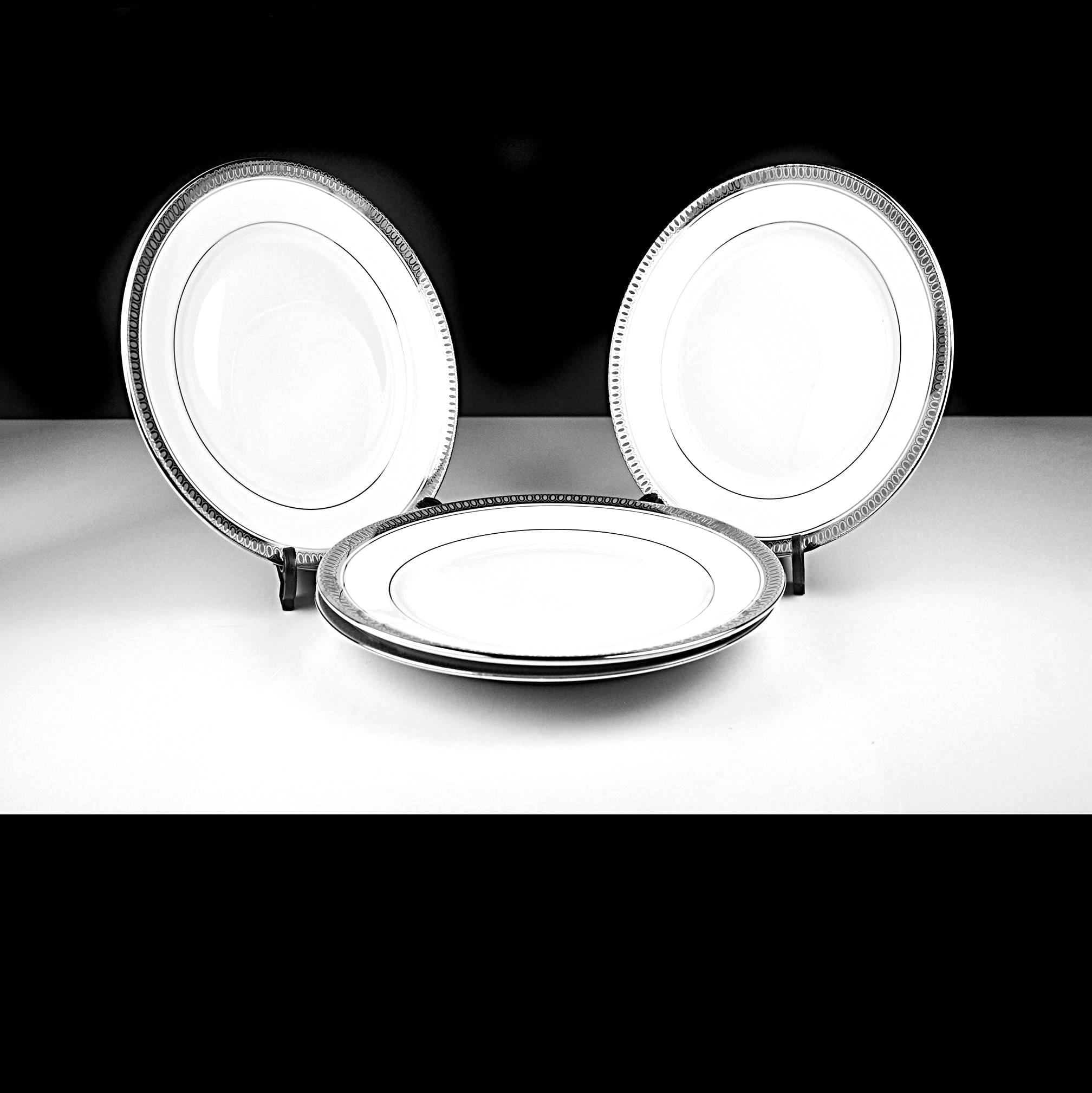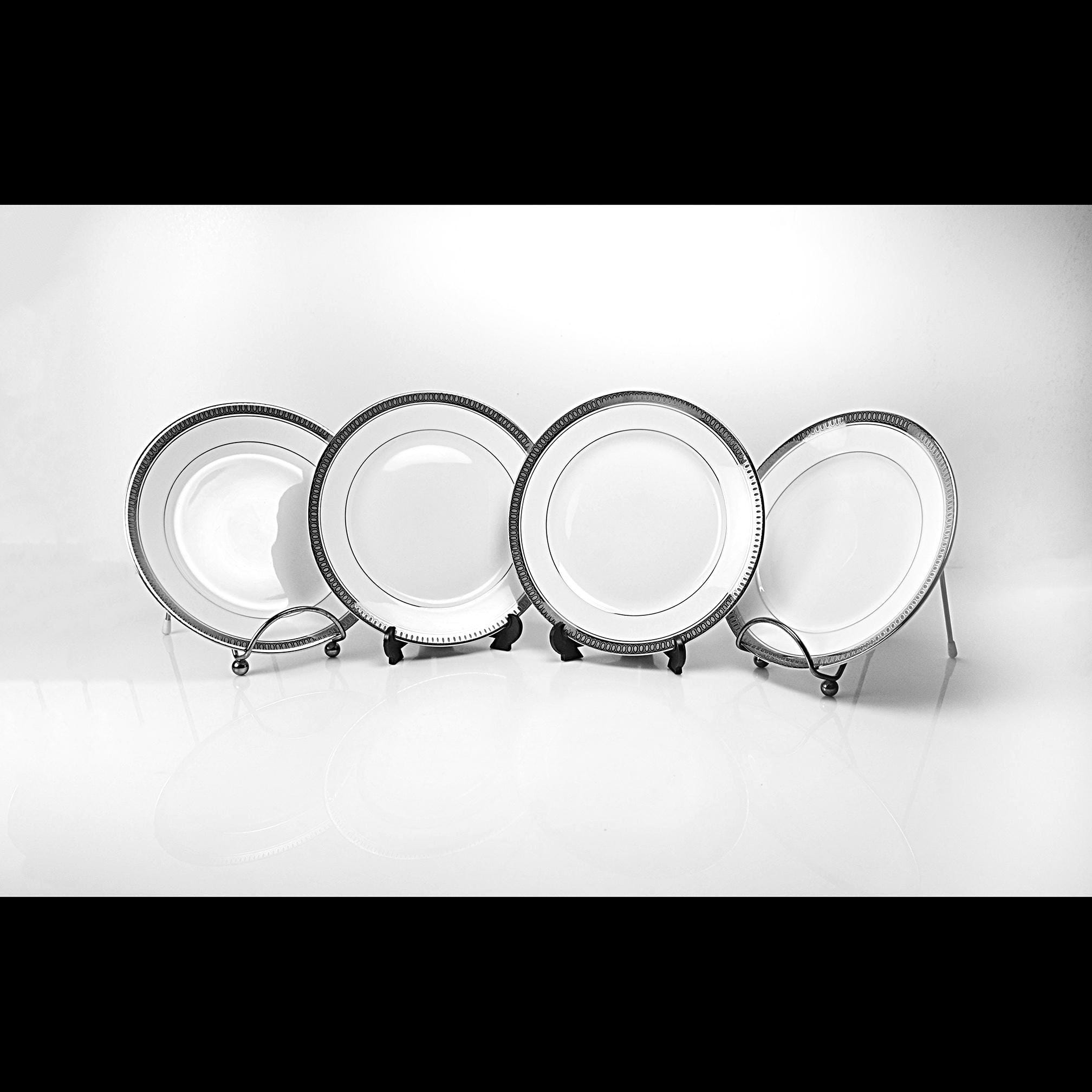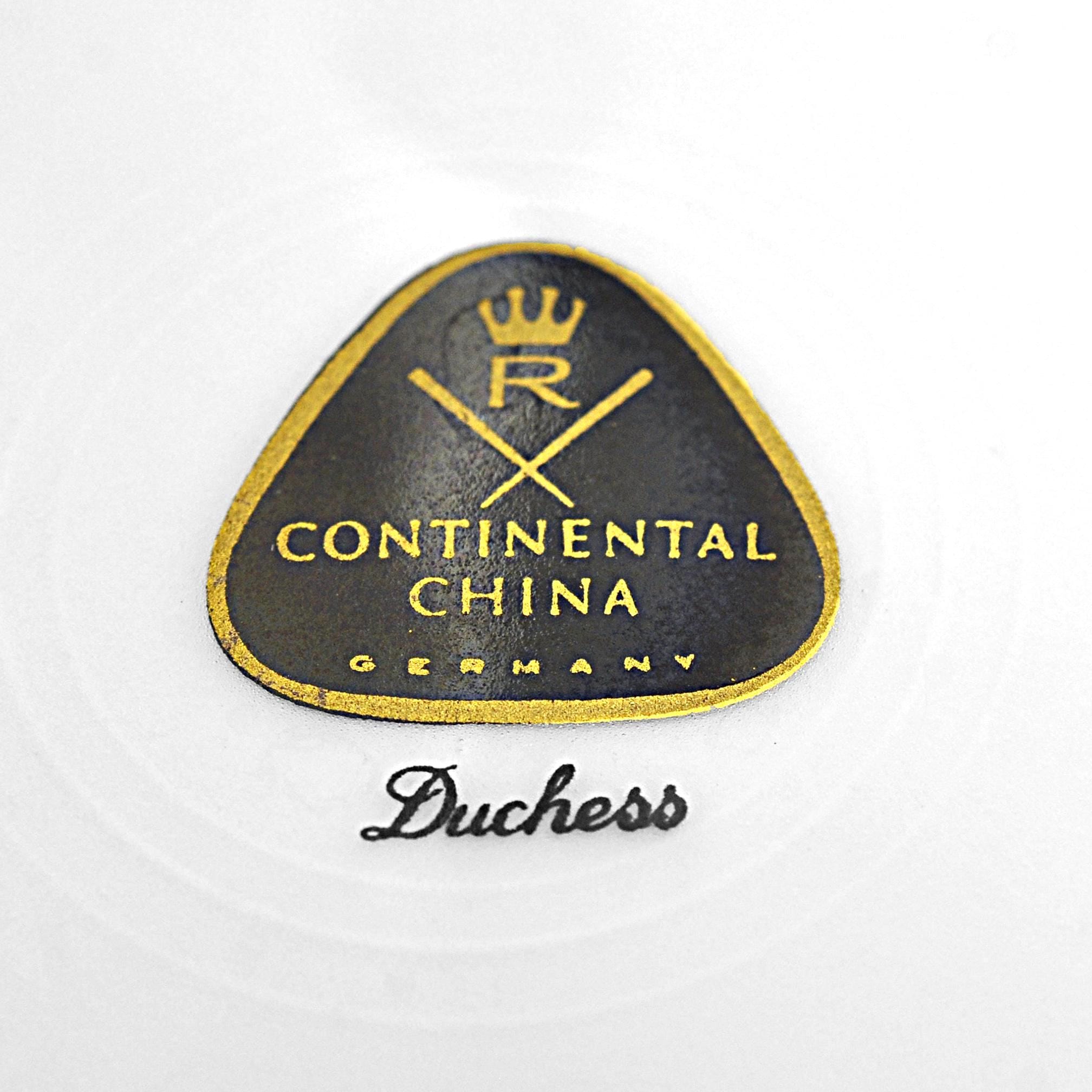 This is a beautiful set of four Continental China bread and butter plates in the discontinued Duchess pattern. Each plate features a clean white body with a simple platinum rim. These plates are in excellent condition with no chips, cracks, or crazing. The platinum trim shows little to no wear — a rare find for this pattern. The Duchess line was part of Rosenthal’s “Continental” brand, made primarily for the U.S. market during the mid-20th century. Known for its timeless elegance, this pattern was popular from the late 1950s through the 1970s and has been long discontinued. Whether you’re replacing missing pieces, expanding your set, or simply love mid-century tableware, these plates are a perfect addition.