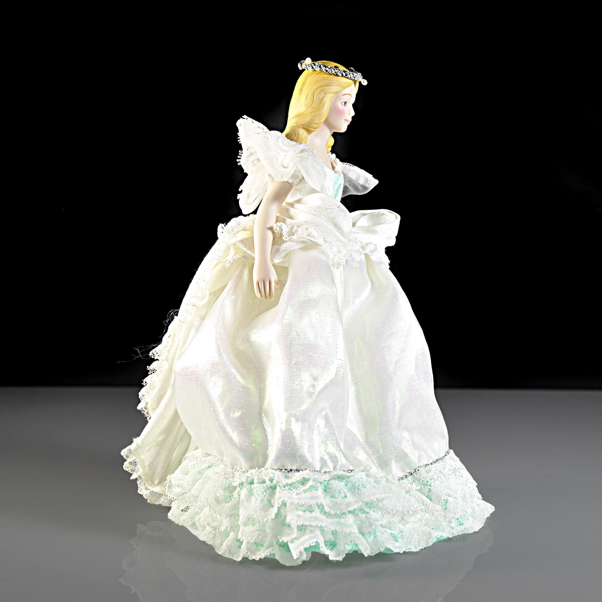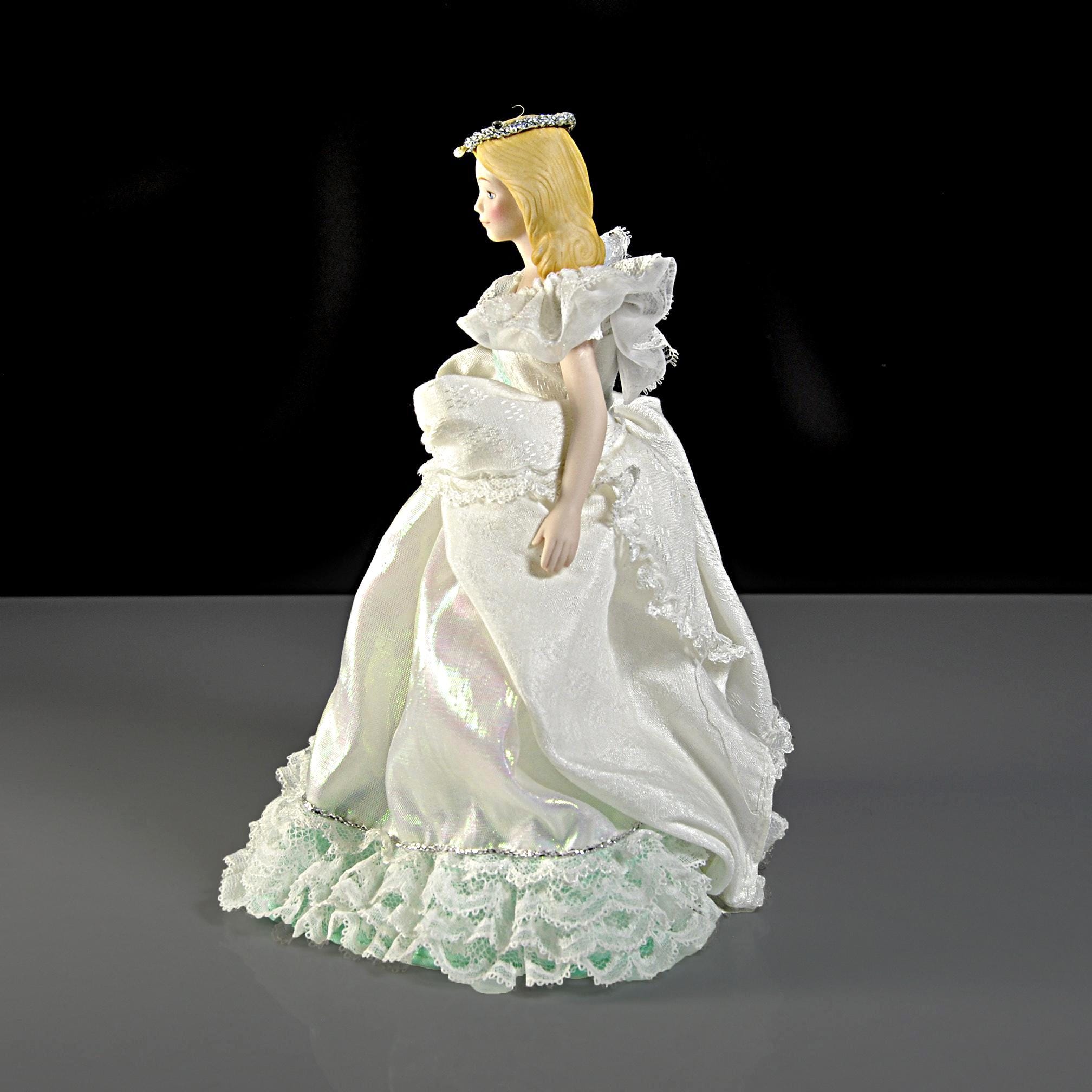 There’s something timeless about this Avon Fairy Princess doll. She’s dressed in a shimmering gown with layers of lace and satin, a touch of sparkle that feels like it was made for a fairy tale. Her porcelain face is softly painted, framed with golden hair, and topped with a little crown that makes her look ready for the ball. This doll was part of Avon’s Fairy Princess Collection, made to be displayed rather than played with. She’s just the right size to stand gracefully on a shelf or inside a curio cabinet. She comes in her original Avon Fine Collectibles box, which is also in excellent condition. A sweet reminder of the days when Avon brought collectibles right to the doorstep, she makes a thoughtful gift for a collector—or just a lovely way to add a touch of vintage charm to your home.