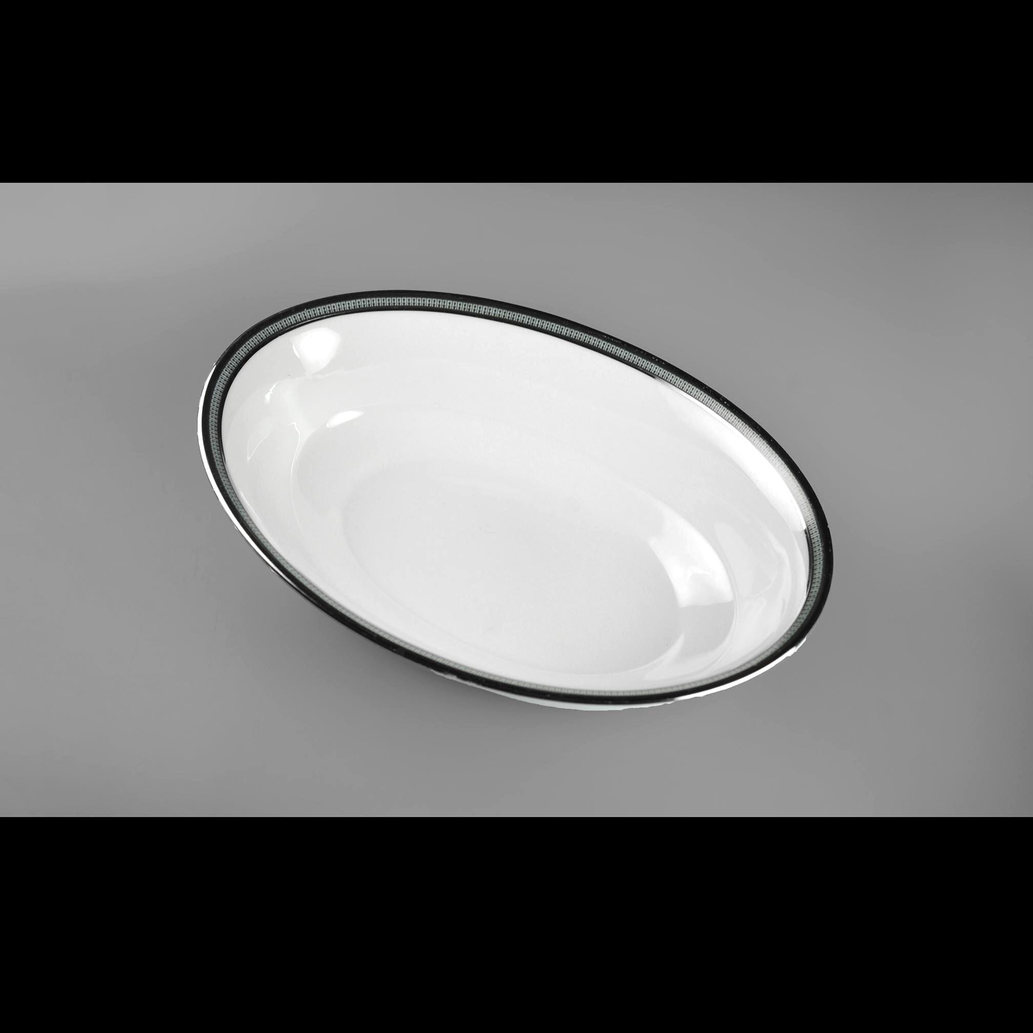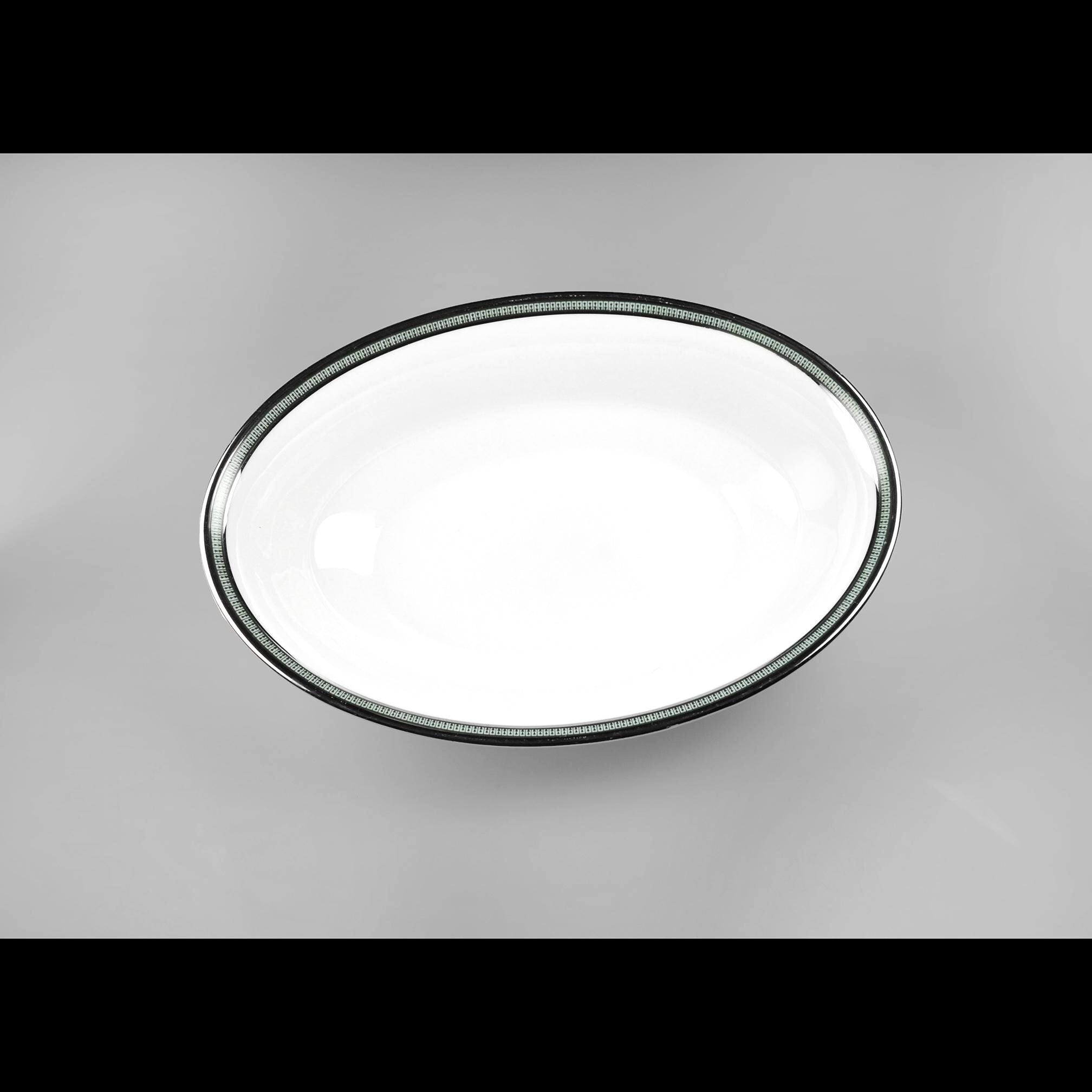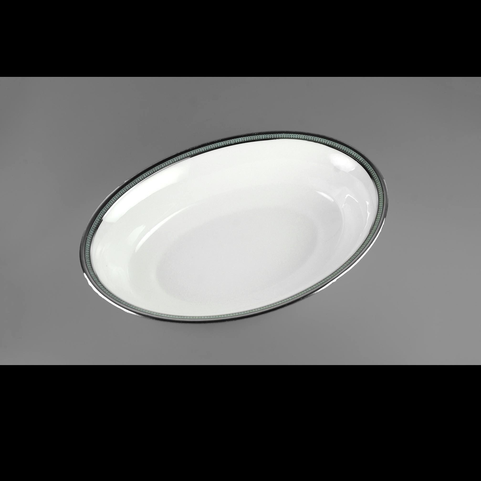This oval vegetable bowl measures 10 inches in length, 7 inches in width, and 2¼ inches in height.
