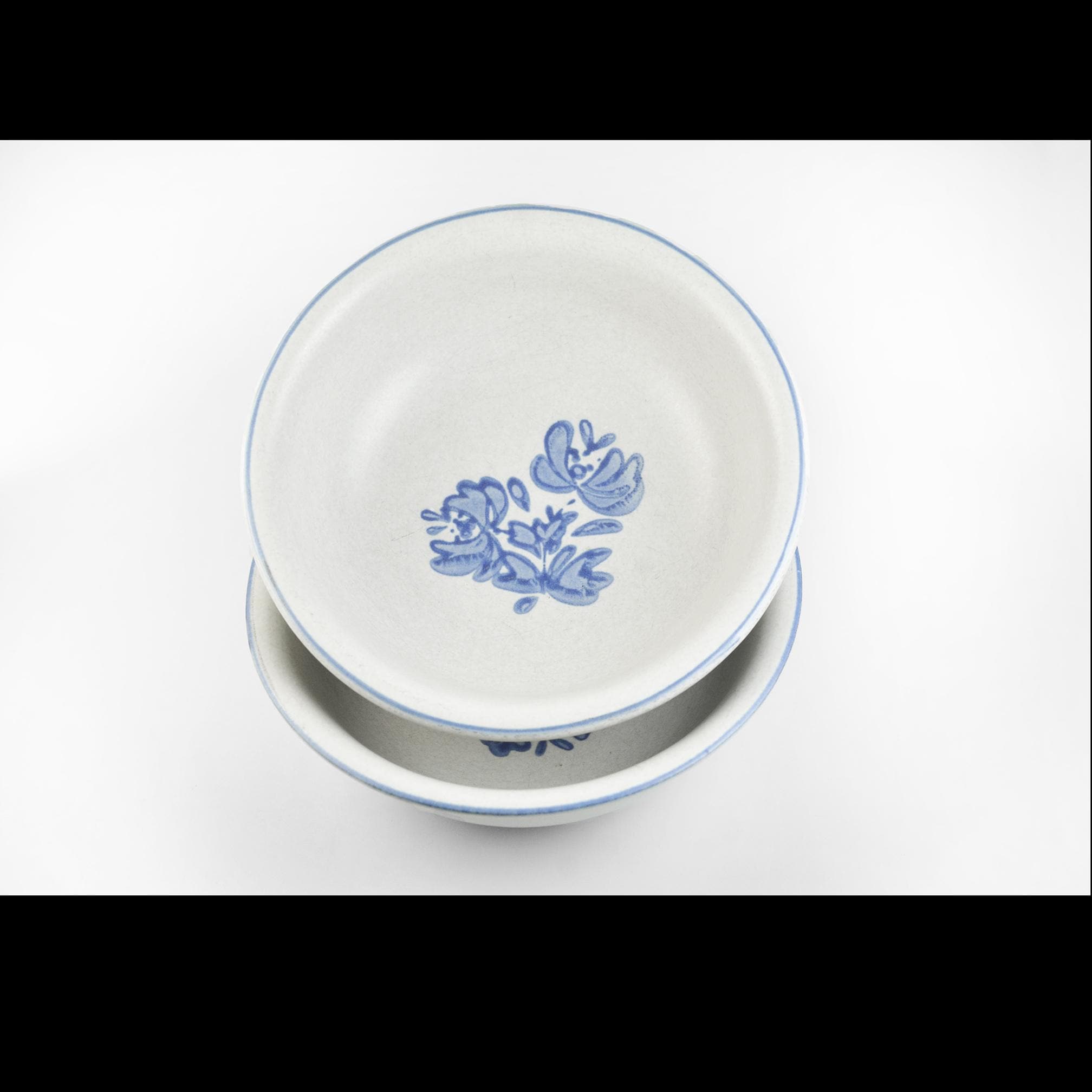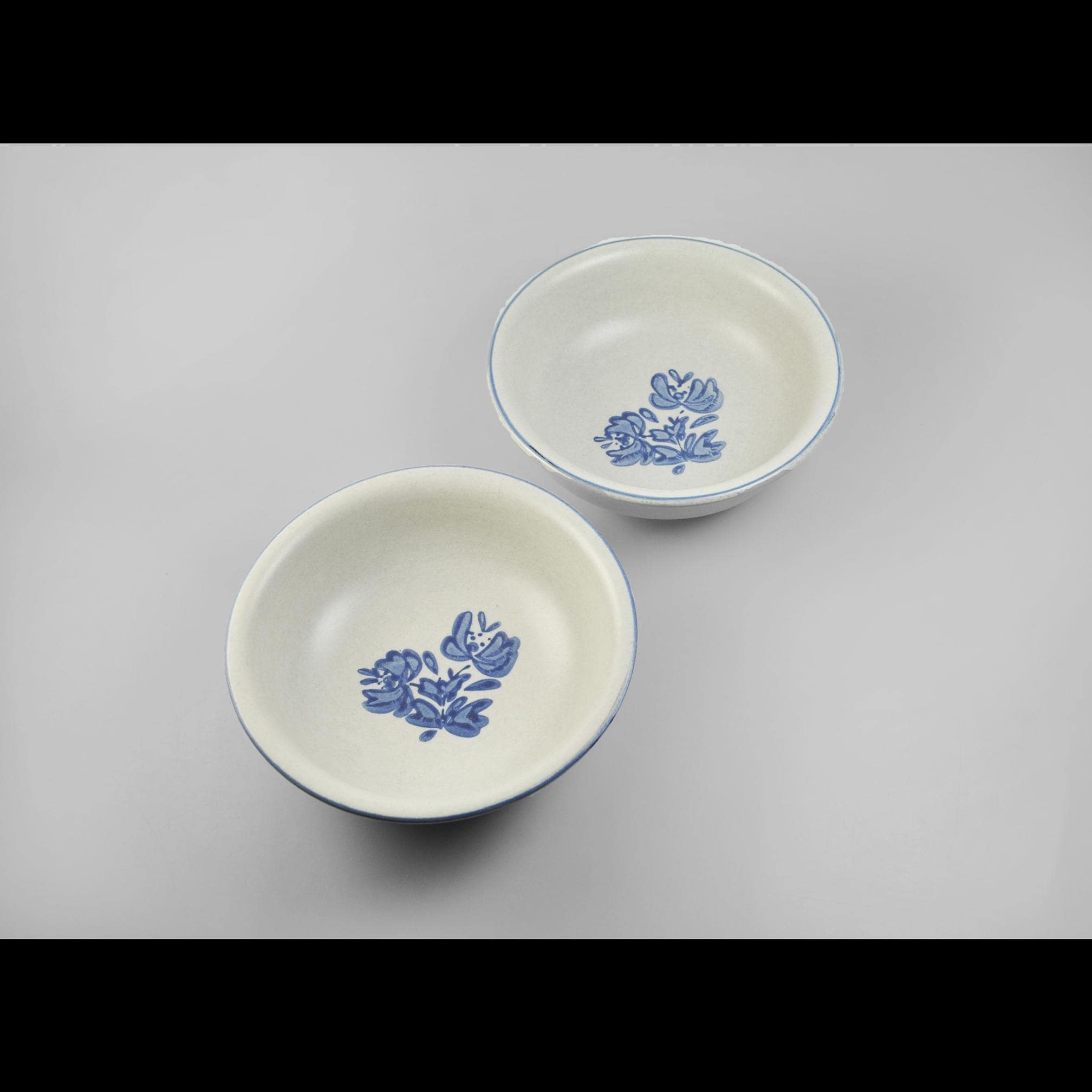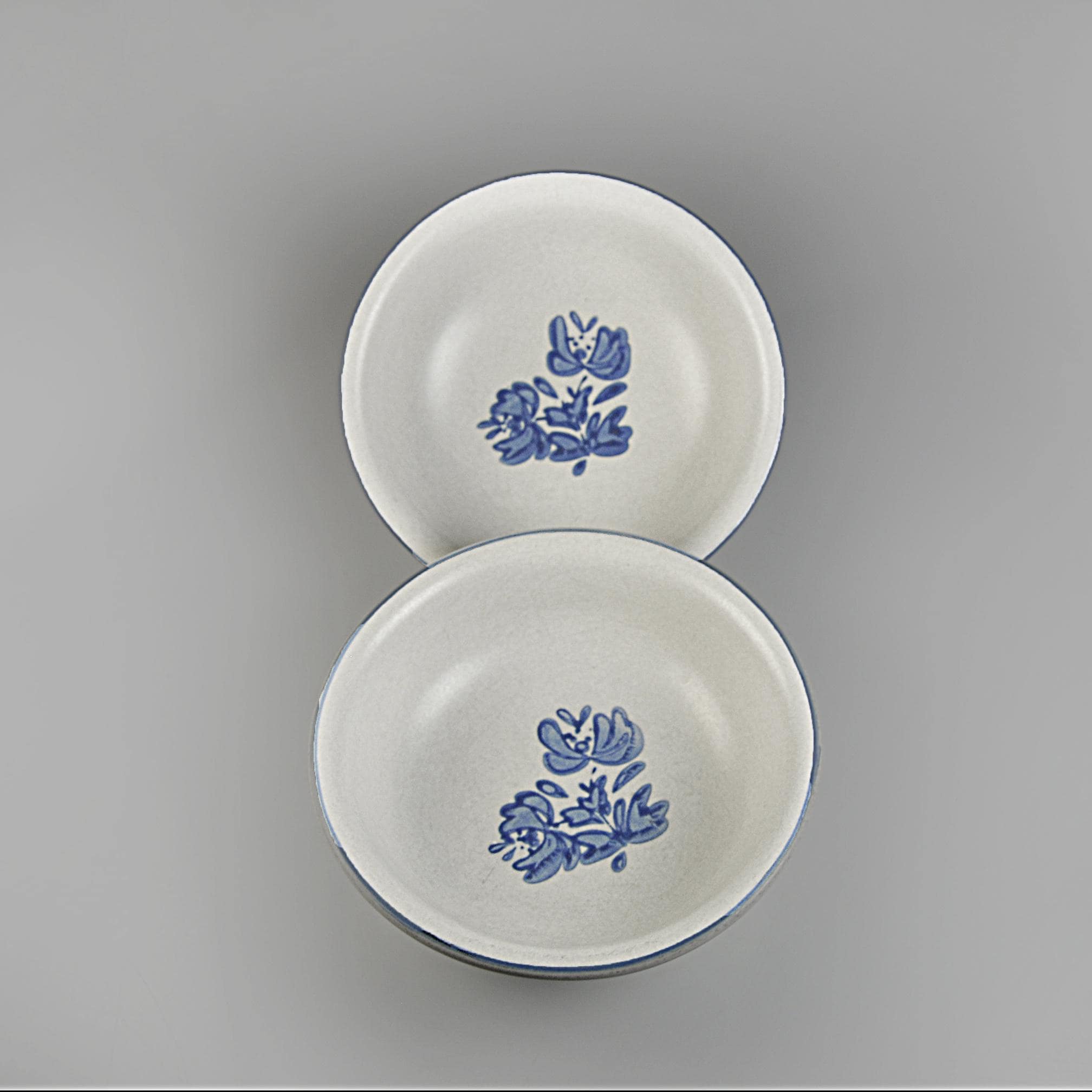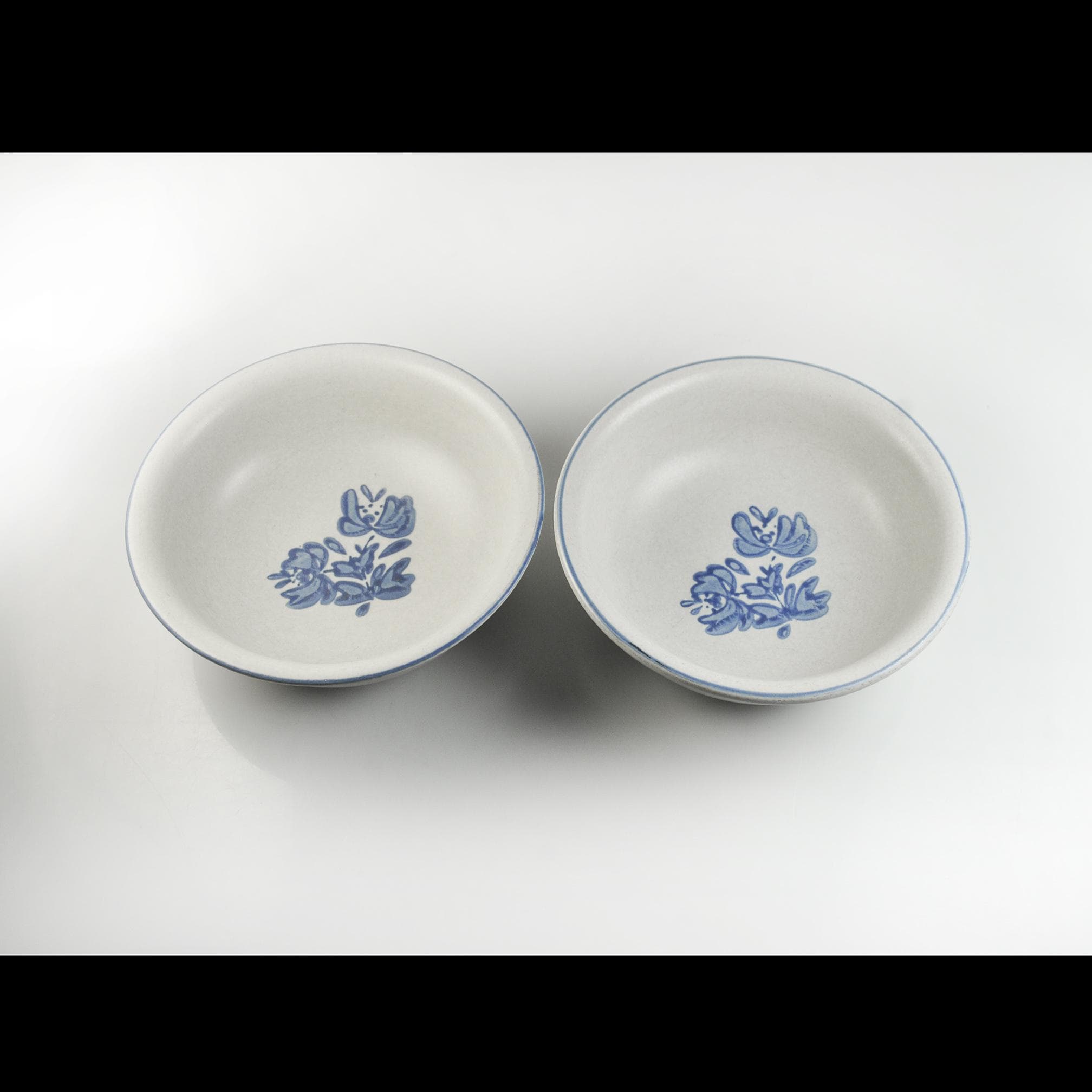There’s something about Pfaltzgraff’s Yorktowne pattern that feels like home. These bowls take you right back to a kitchen where the coffee was strong, the bread was warm, and supper was served with a wooden spoon straight from the pot. These classic stoneware bowls feature the familiar soft gray-beige glaze with hand-painted style blue flowers — a pattern that’s been at countless family tables for generations. They’re sturdy and comforting, meant to be used and enjoyed, not just admired on a shelf. Perfect for morning cereal, soup on a cold night, or a helping of homemade stew. A simple, honest pair of bowls that have seen many meals and will see many more.