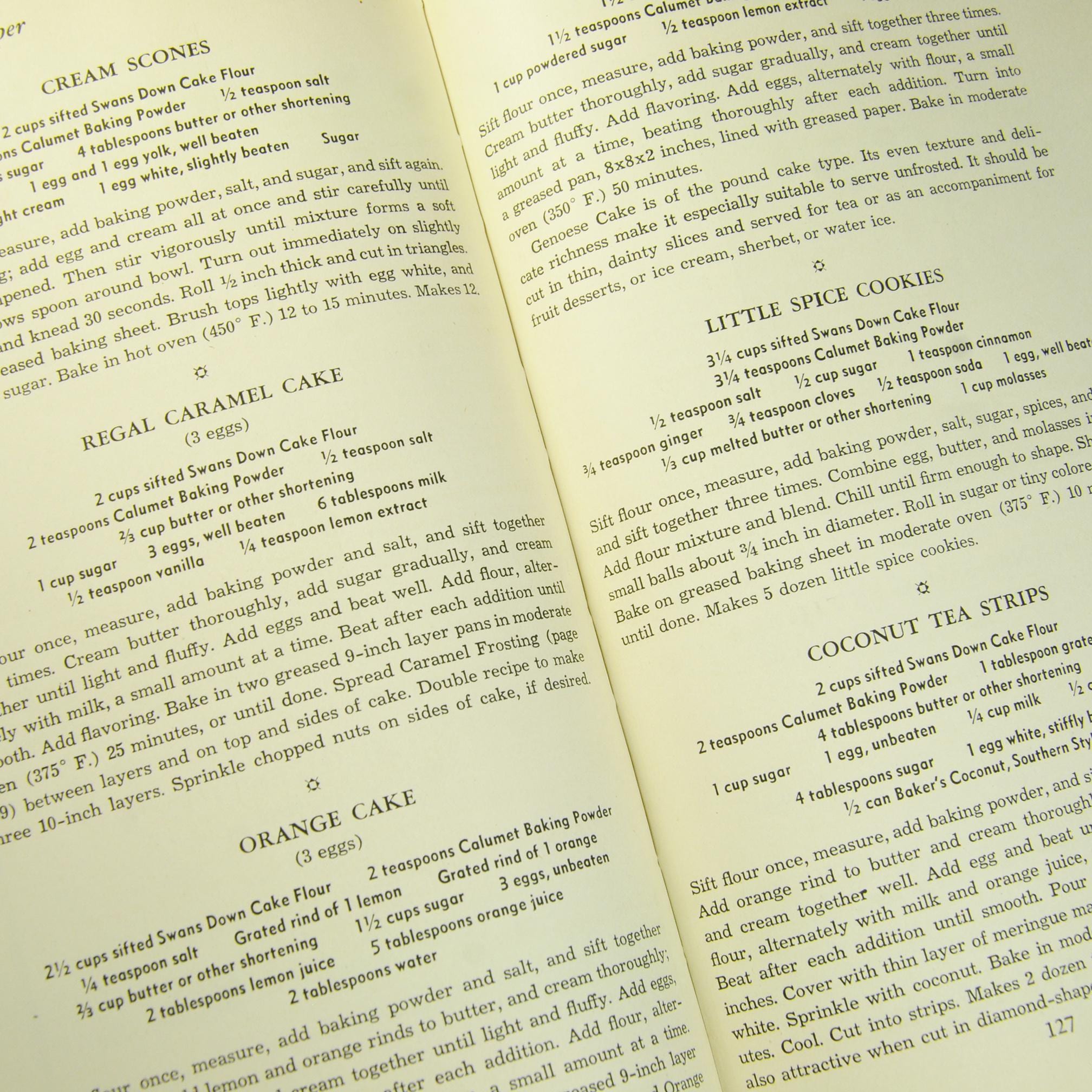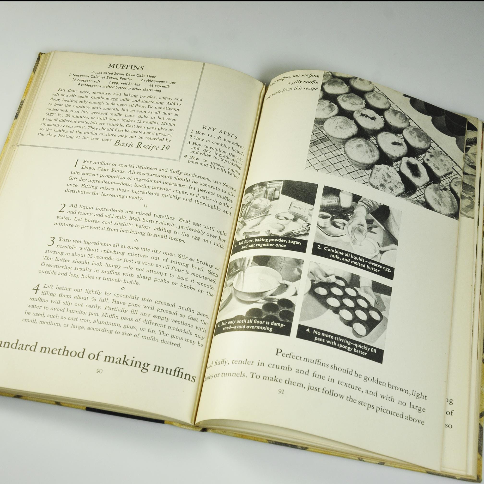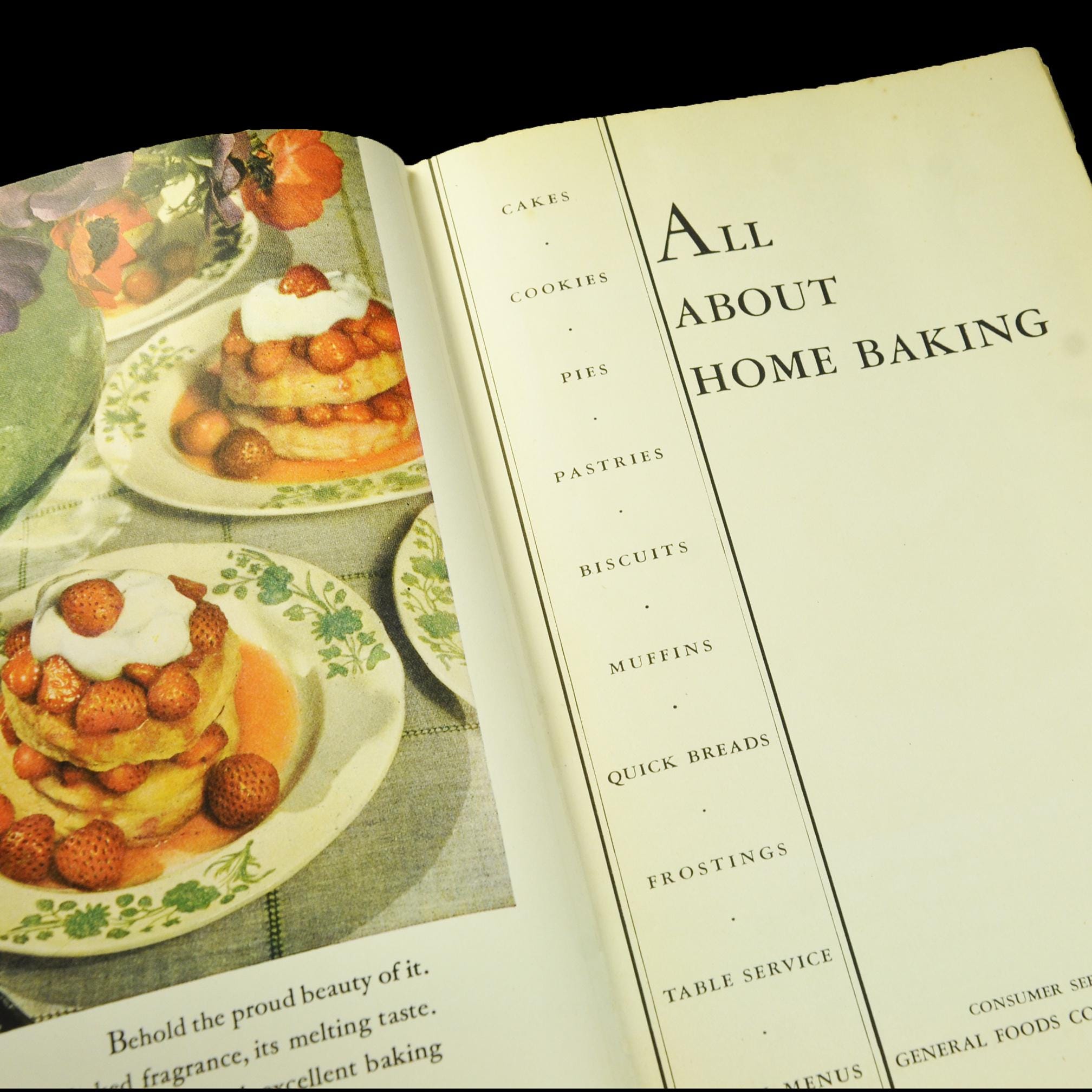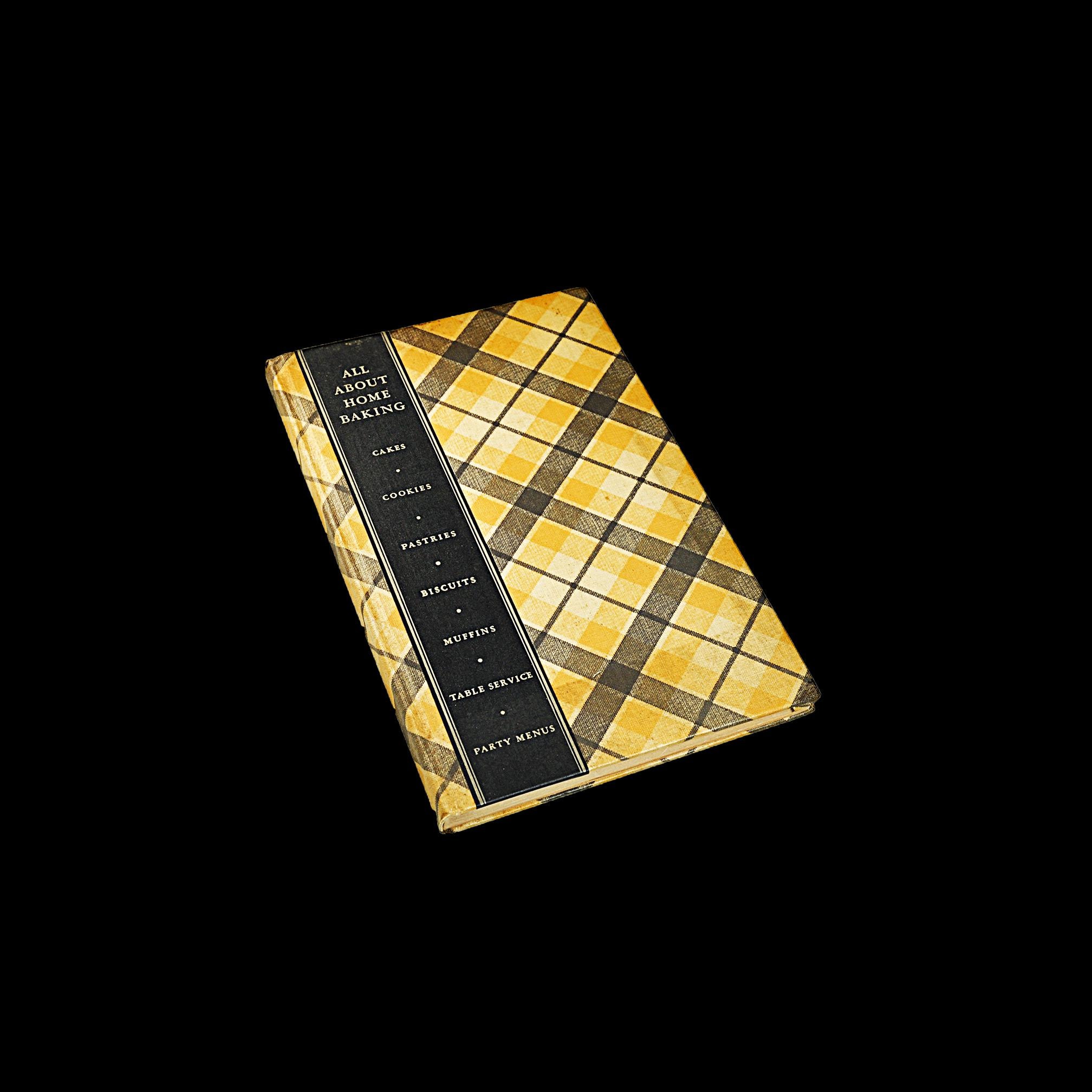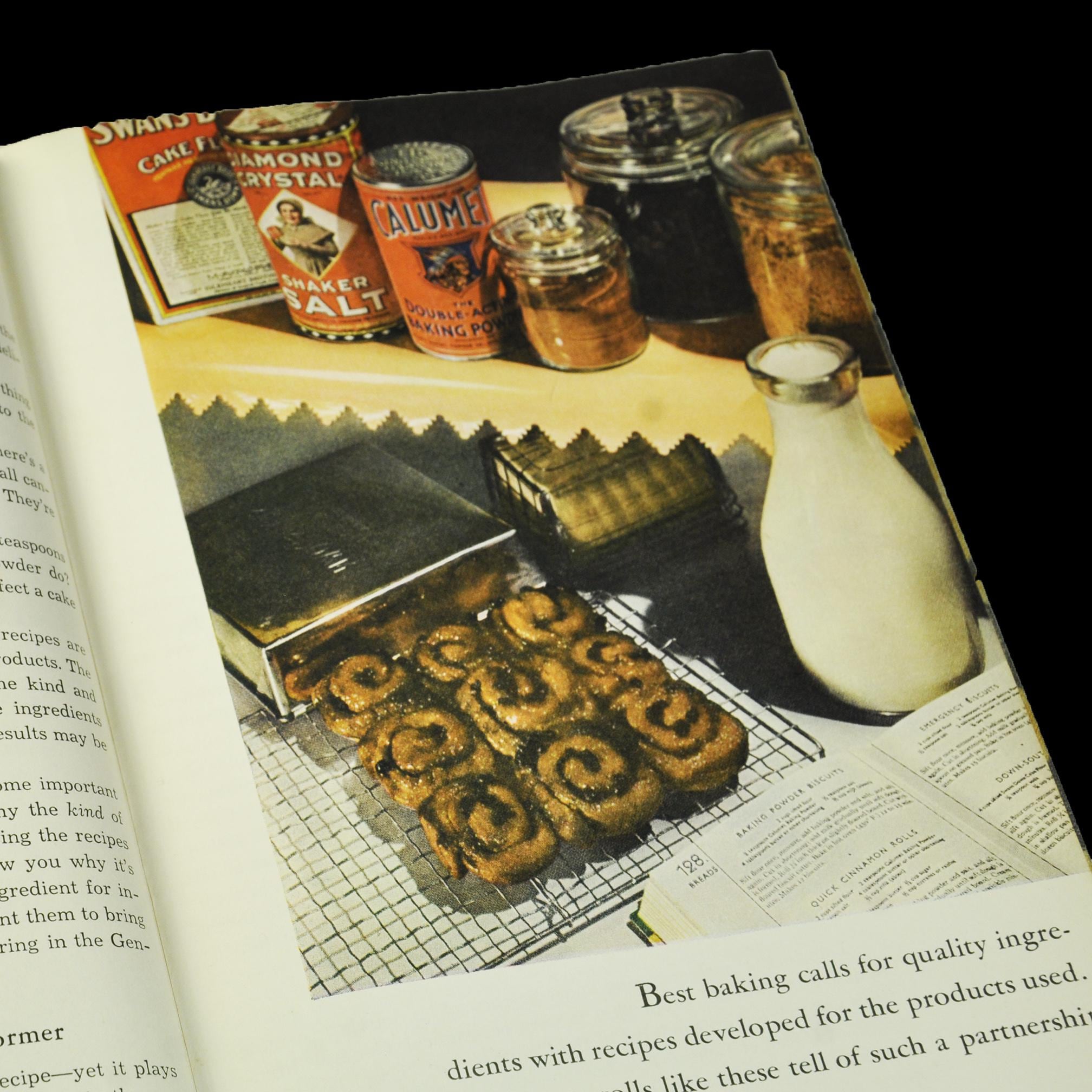 There’s something special about holding a cookbook that has seen nearly a century of kitchens, ovens, and Sunday afternoons. This is a 1933 first edition of All About Home Baking, published by General Foods Corporation — the same company behind Calumet Baking Powder, Swan’s Down Cake Flour, and Baker’s Chocolate. Inside, you’ll find cakes, pies, cookies, quick breads, and pastries, all laid out in that practical, step-by-step style that home bakers relied on during the Depression years. There are color plates of perfectly frosted cakes, jars of ingredients lined up beside old tins of salt and baking powder, and plenty of helpful photos showing how to cream butter or beat egg whites just right. The cover is done in that unforgettable 1930s yellow, brown, and black plaid, a pattern that looks like it came straight off an old kitchen curtain. If you close your eyes, you can almost imagine the sound of a wooden spoon tapping a mixing bowl, the scent of cinnamon rolls in the oven, and a woman in her apron checking the recipe once more under the kitchen light. It’s more than a cookbook — it’s a piece of American kitchen history.