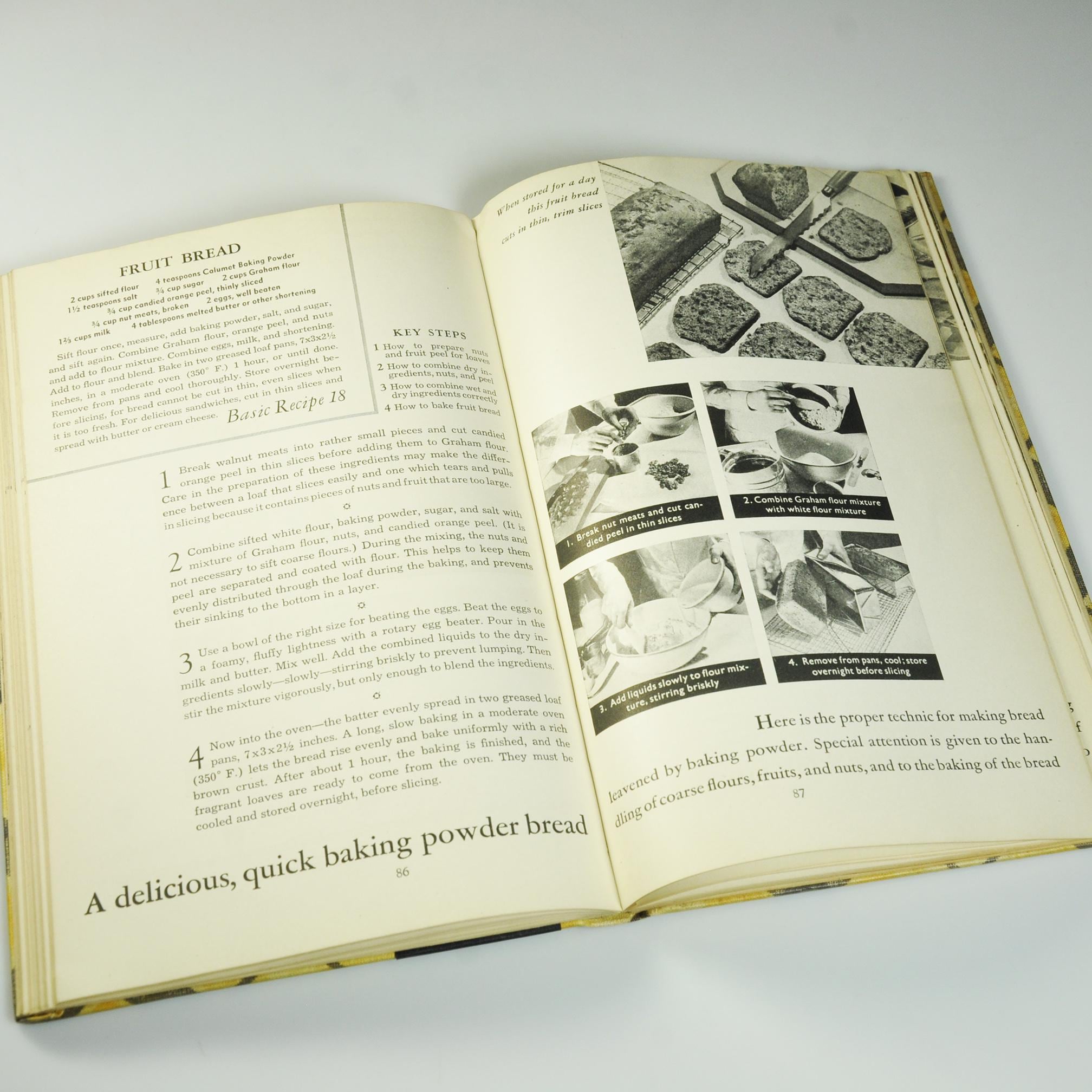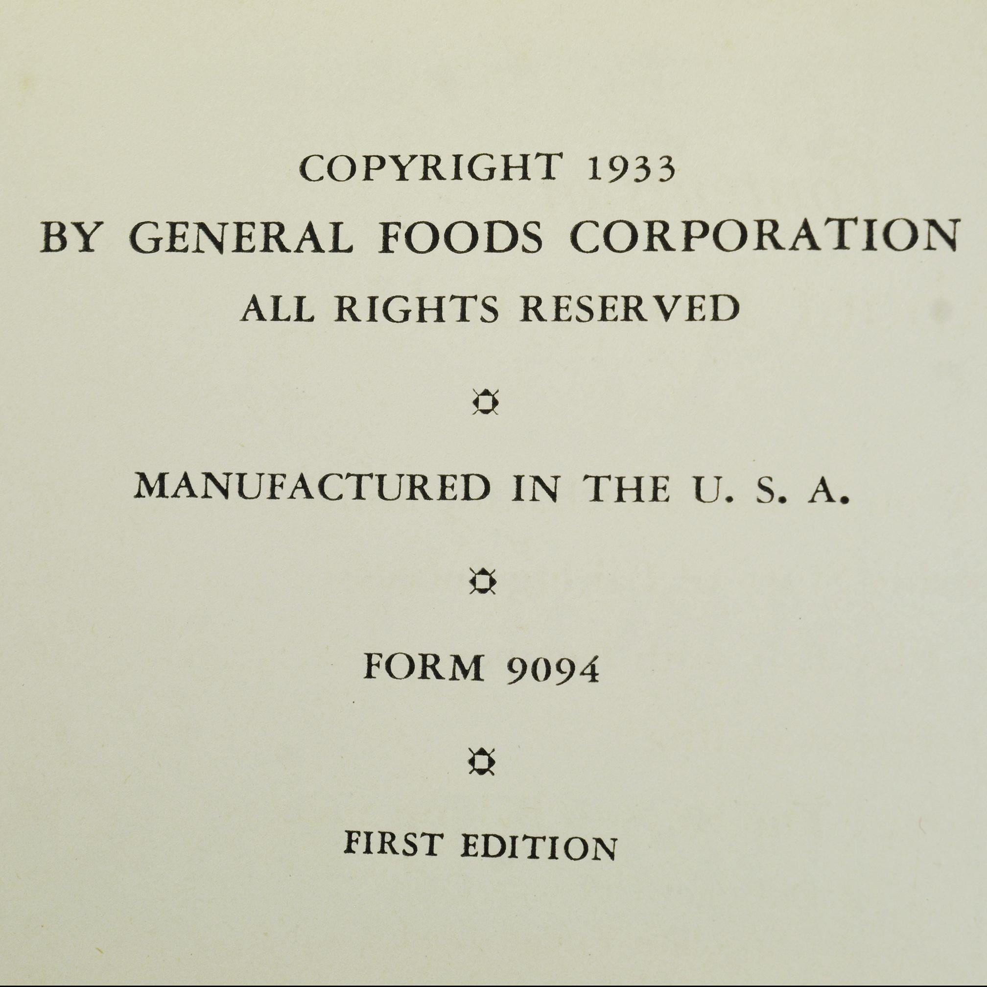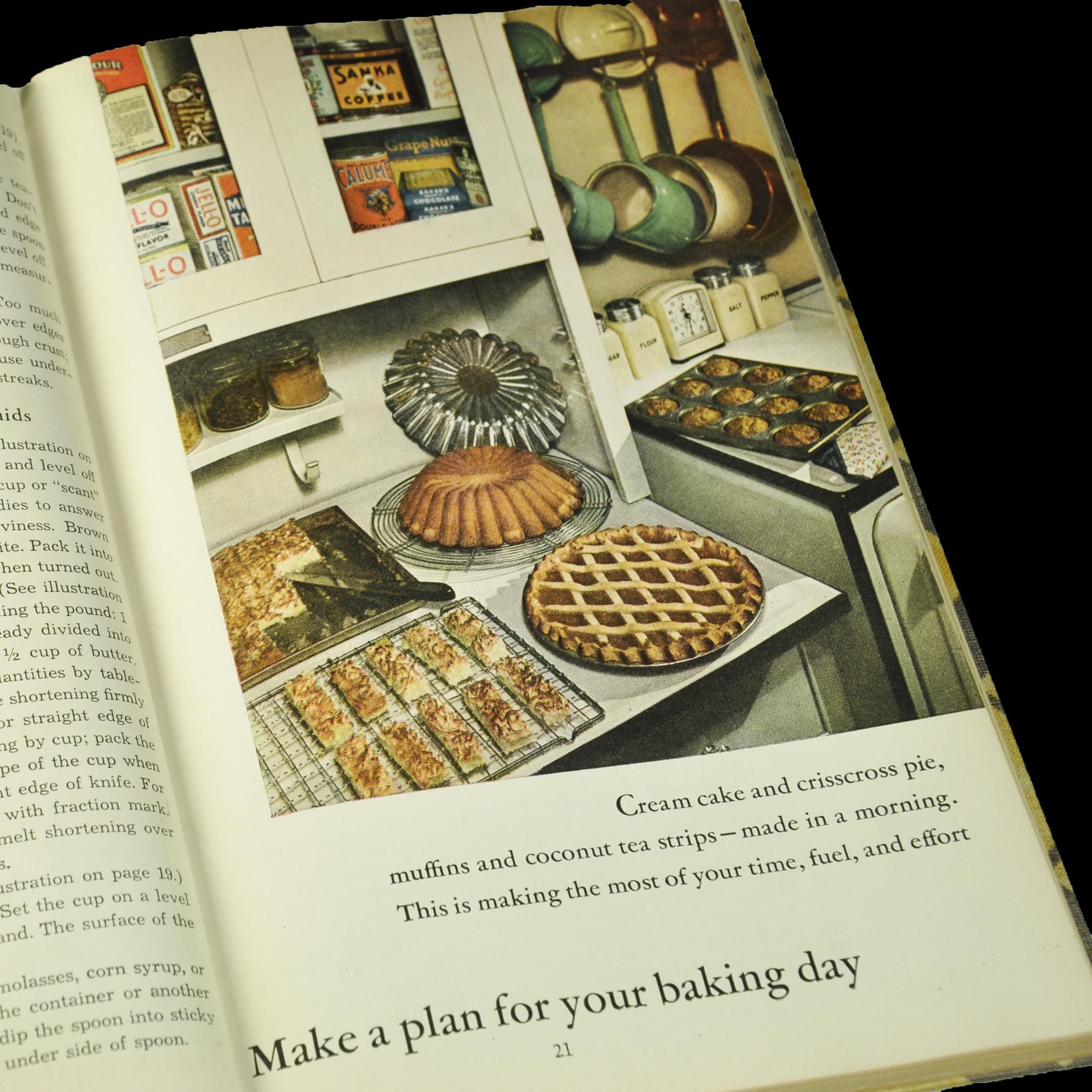 This is the stated first edition (Form 9094), and it still has a strong spine, clean pages, and gentle age yellowing that adds to its charm. The cover shows some light staining — nothing major, just the kind of wear that comes from decades of being pulled from the shelf when someone wanted to bake something sweet.