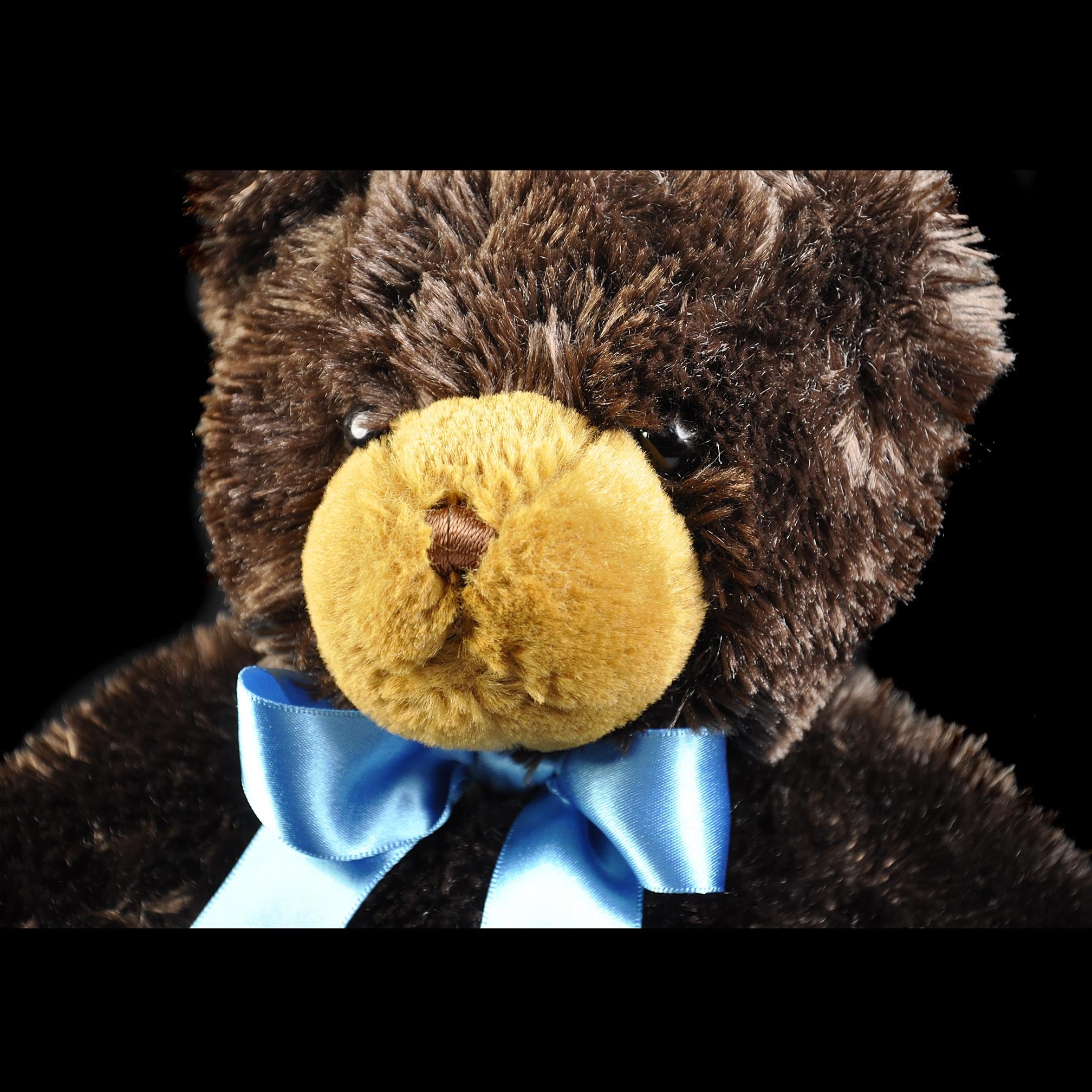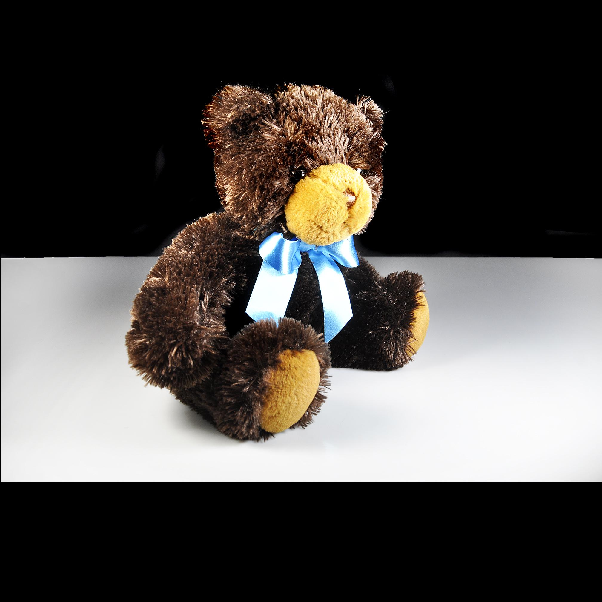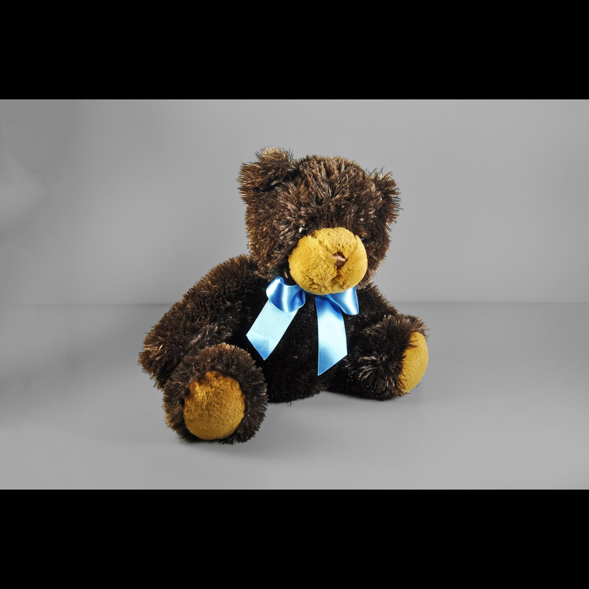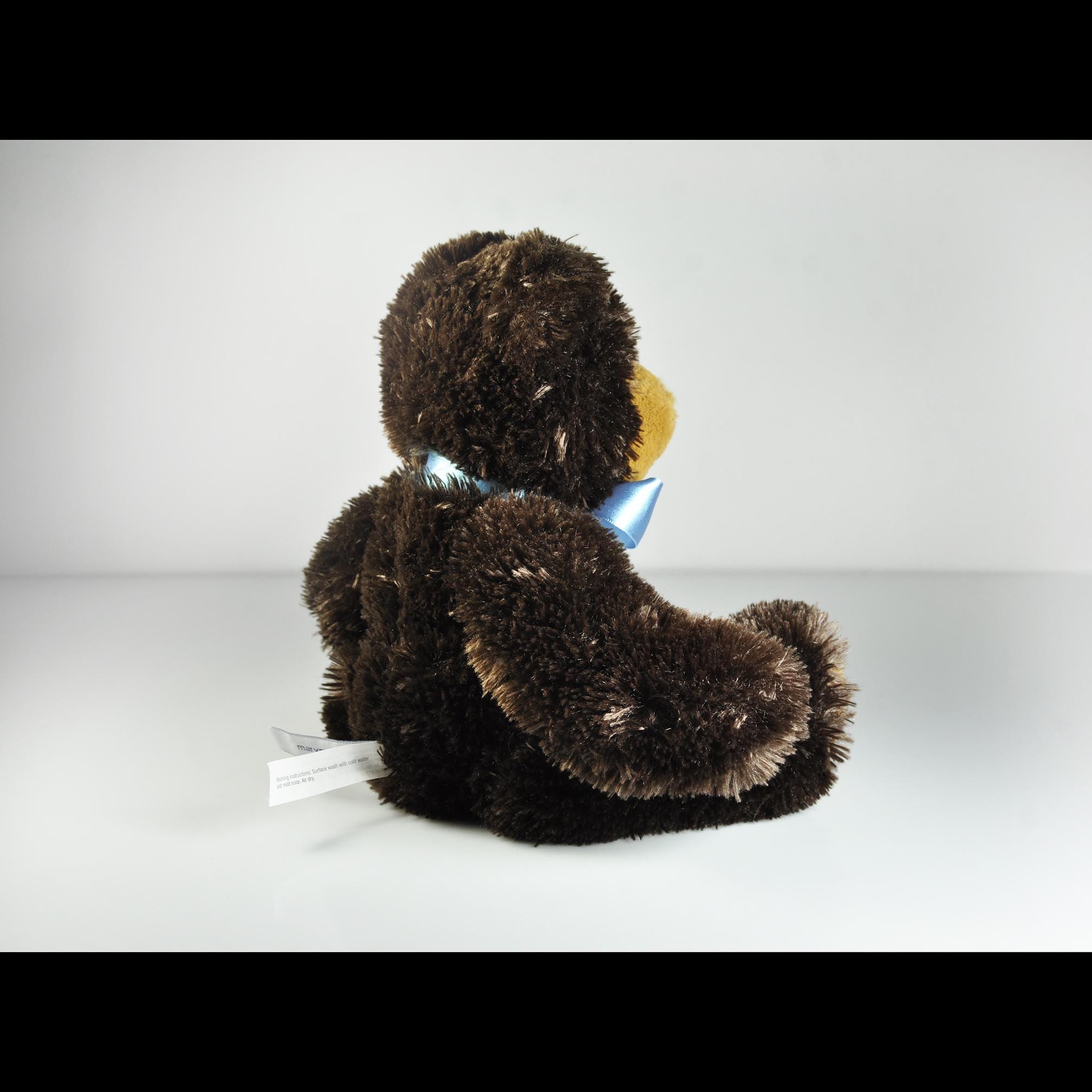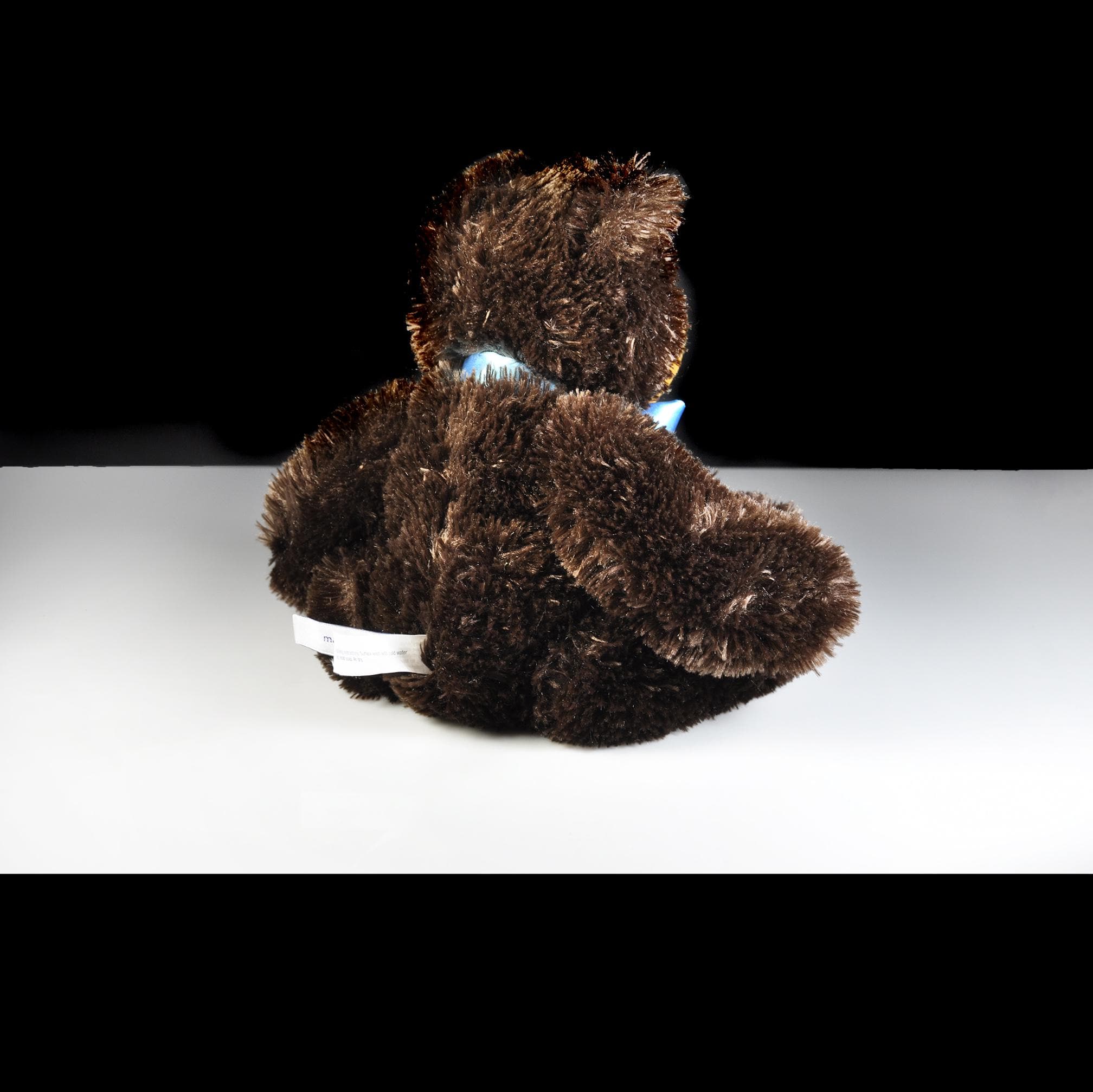 Here’s a sweet little teddy from Mary Meyer — a soft, cuddly brown bear that sits nicely on its own and looks like it’s waiting for a story or a hug. This bear stands about 9 inches tall when sitting. It has rich chocolate-brown fur, golden muzzle and paws, and that classic friendly face that Mary Meyer has been known for since the 1930s. Mary Meyer bears like this were made in the early 2000s, and this one still has the colorful logo tag that was used in that period. Whether you’re looking for a gift, a photo prop, or just a classic bear to sit on a shelf, he’s one of those timeless pieces that makes people smile.