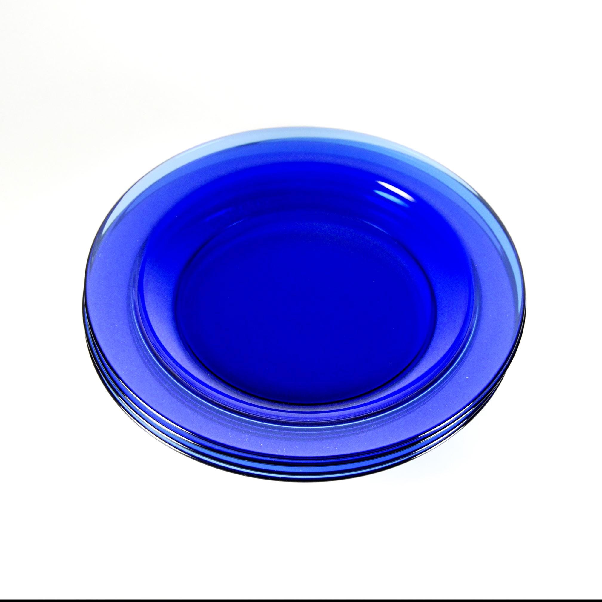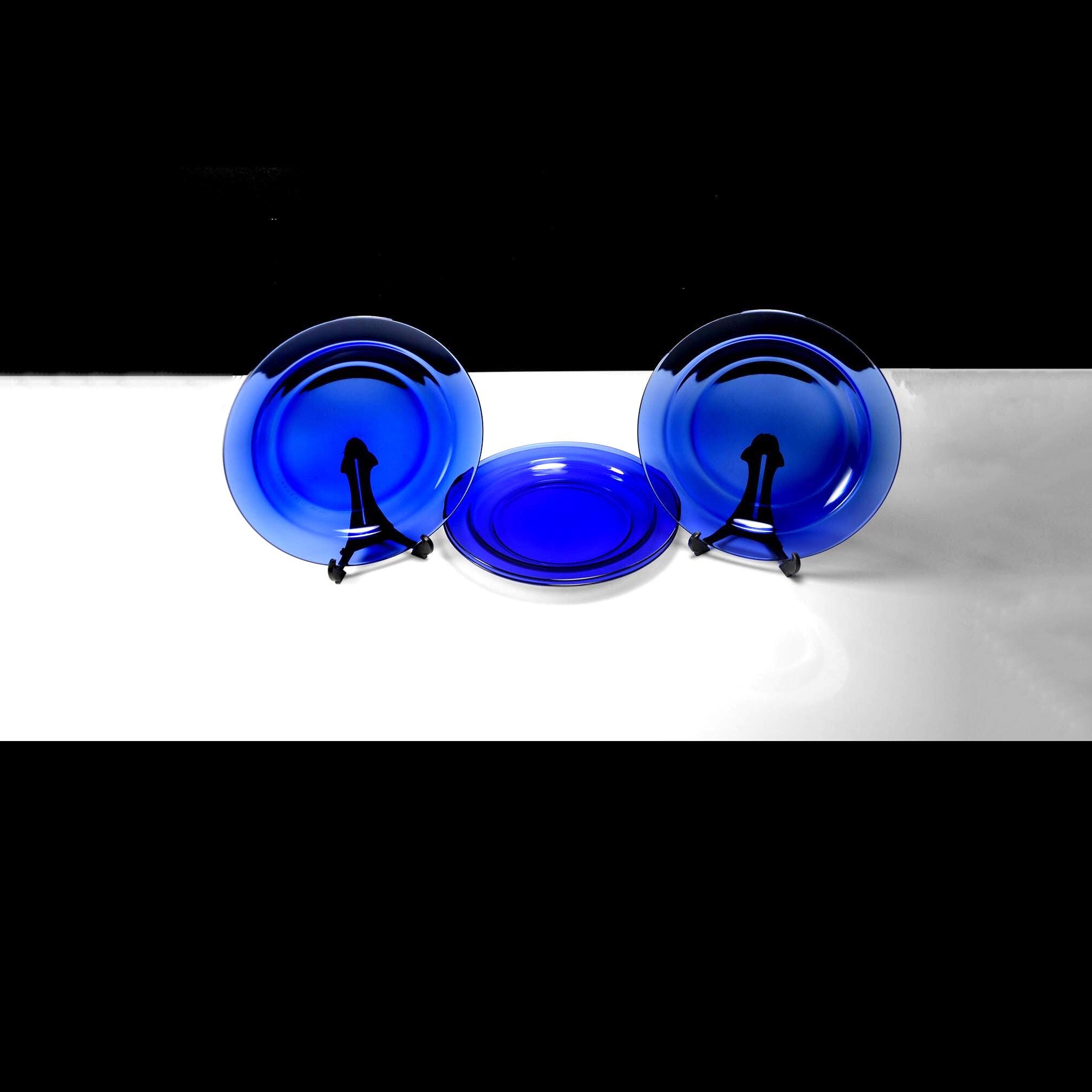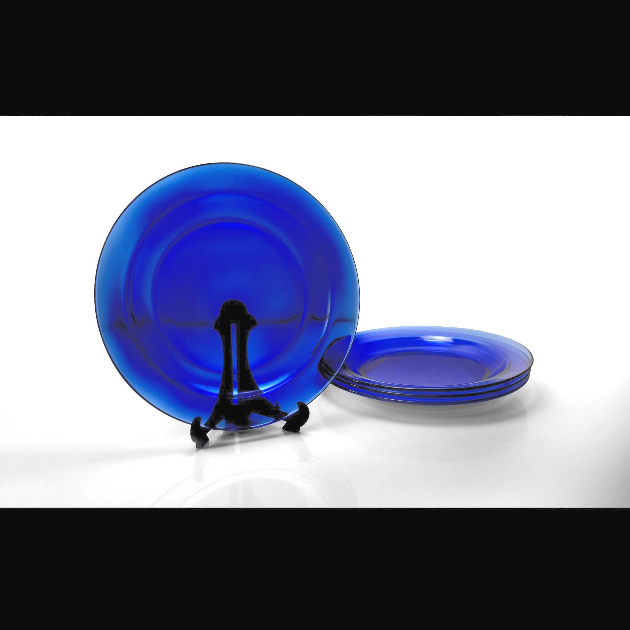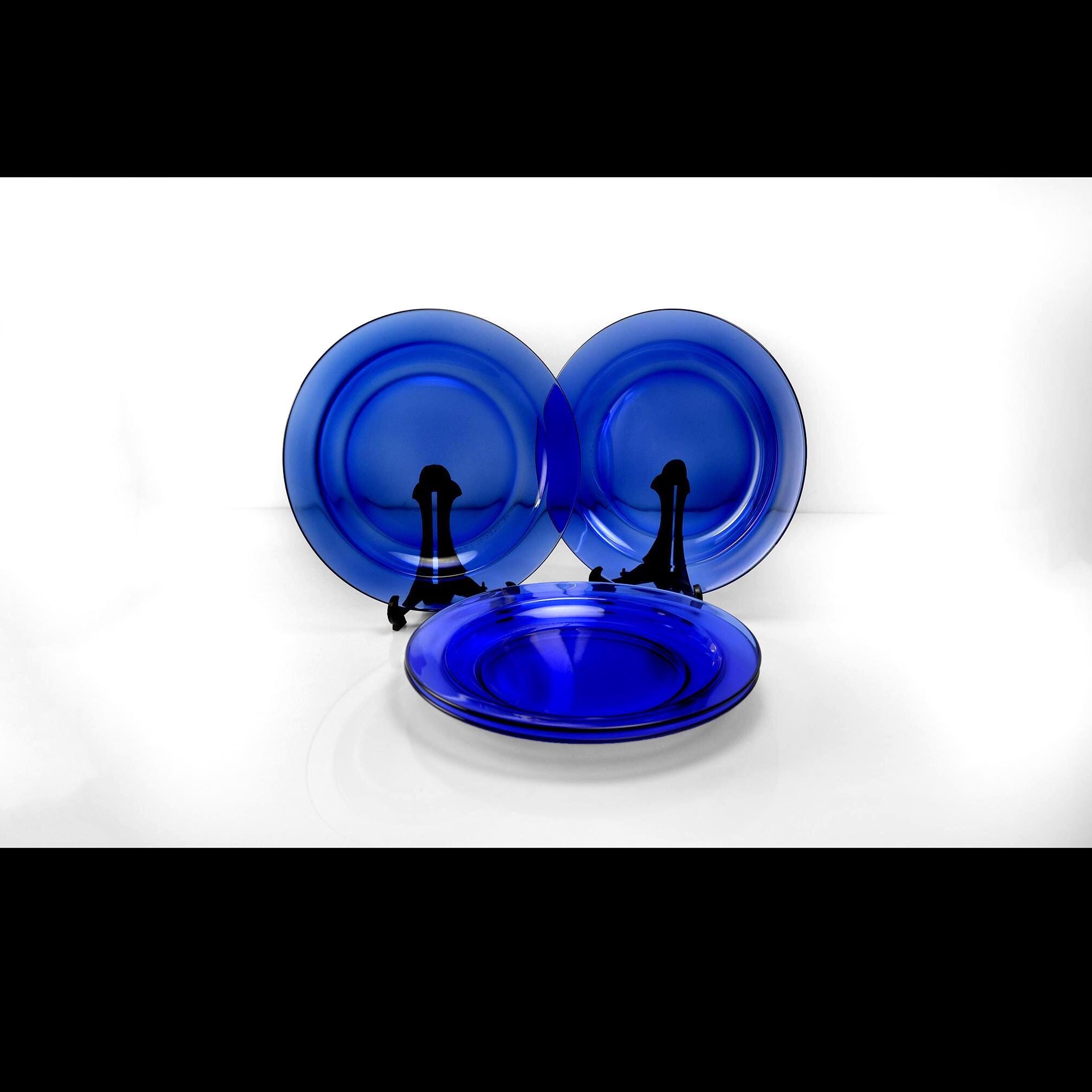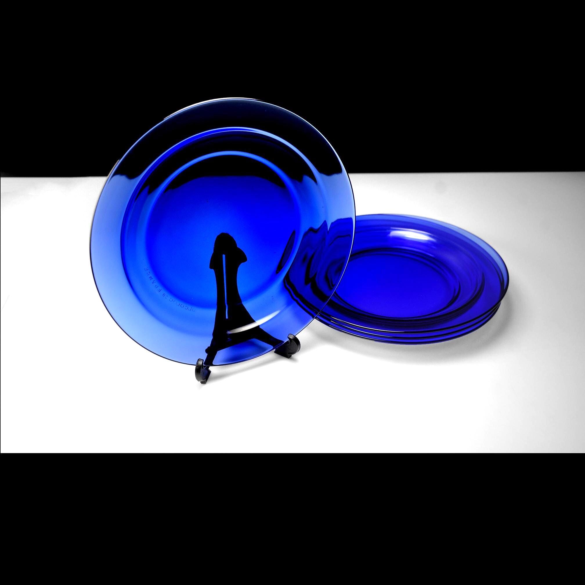 You know that deep, rich cobalt blue that seems to glow when the light hits it just right? That’s what these plates bring to the table. Made in France by Arcoroc, this is the Directoire Sapphire pattern — simple, elegant, and unmistakably vintage. These plates feel like something you’d pull out for a quiet supper with old friends — sturdy enough for everyday use but too pretty to stay in the cupboard for long. Arcoroc’s glassware has been around kitchens since the mid-20th century, known for its clean lines and practical beauty. The Directoire line, especially in Sapphire blue, has become a favorite among collectors who love that mix of French craftsmanship and timeless design. This set of four salad plates is ready for another chapter — whether that’s in a display cabinet catching the morning light or holding homemade pie on a Sunday afternoon.