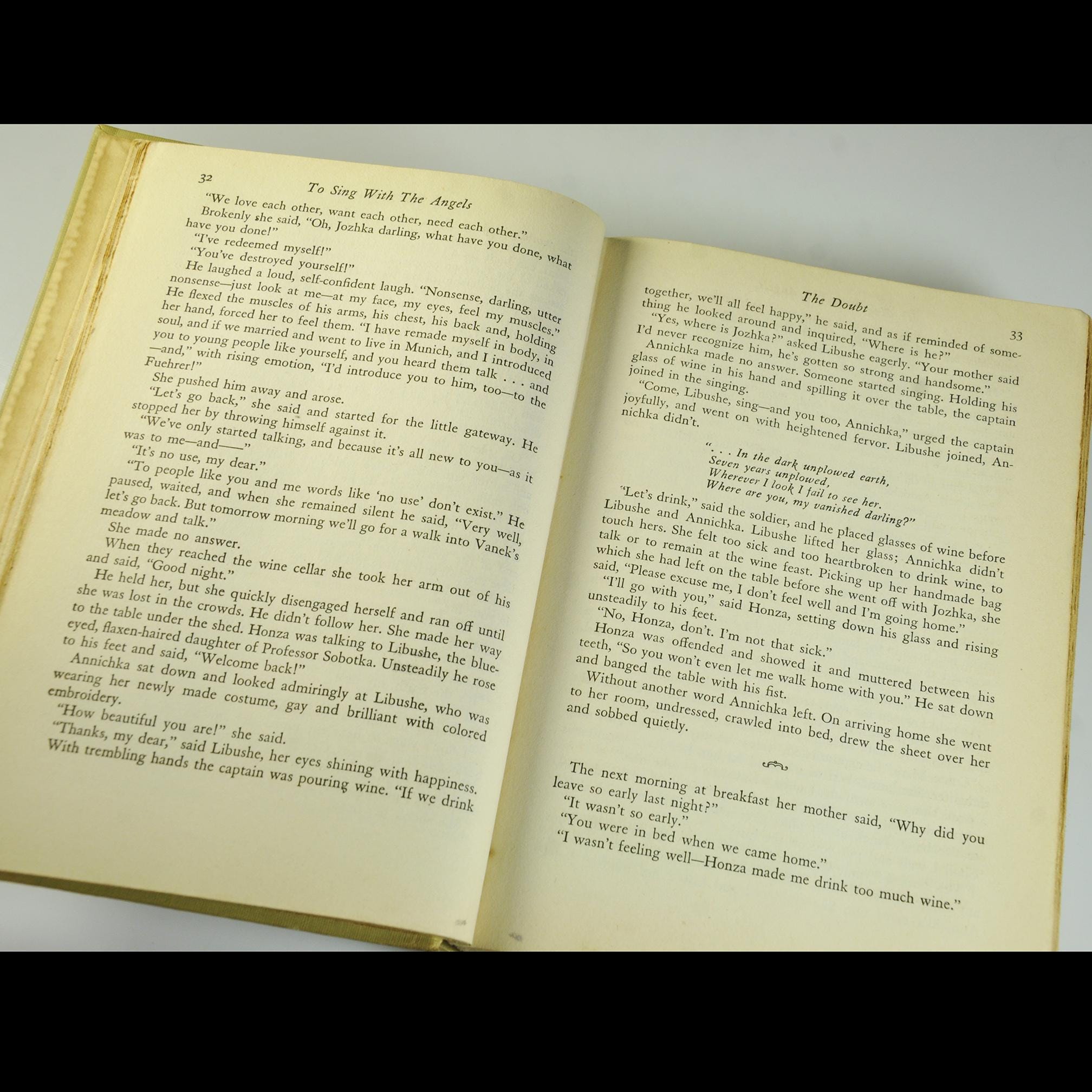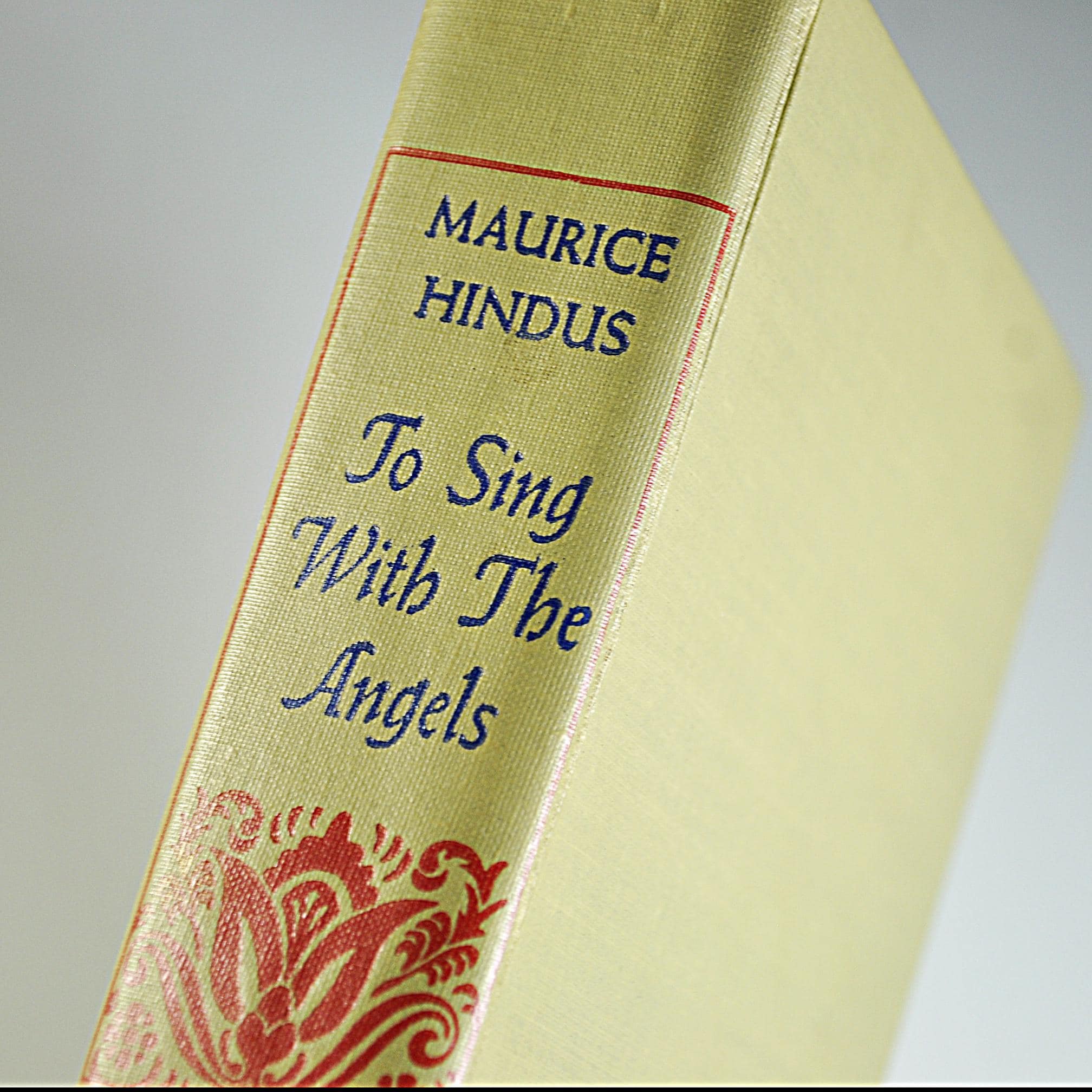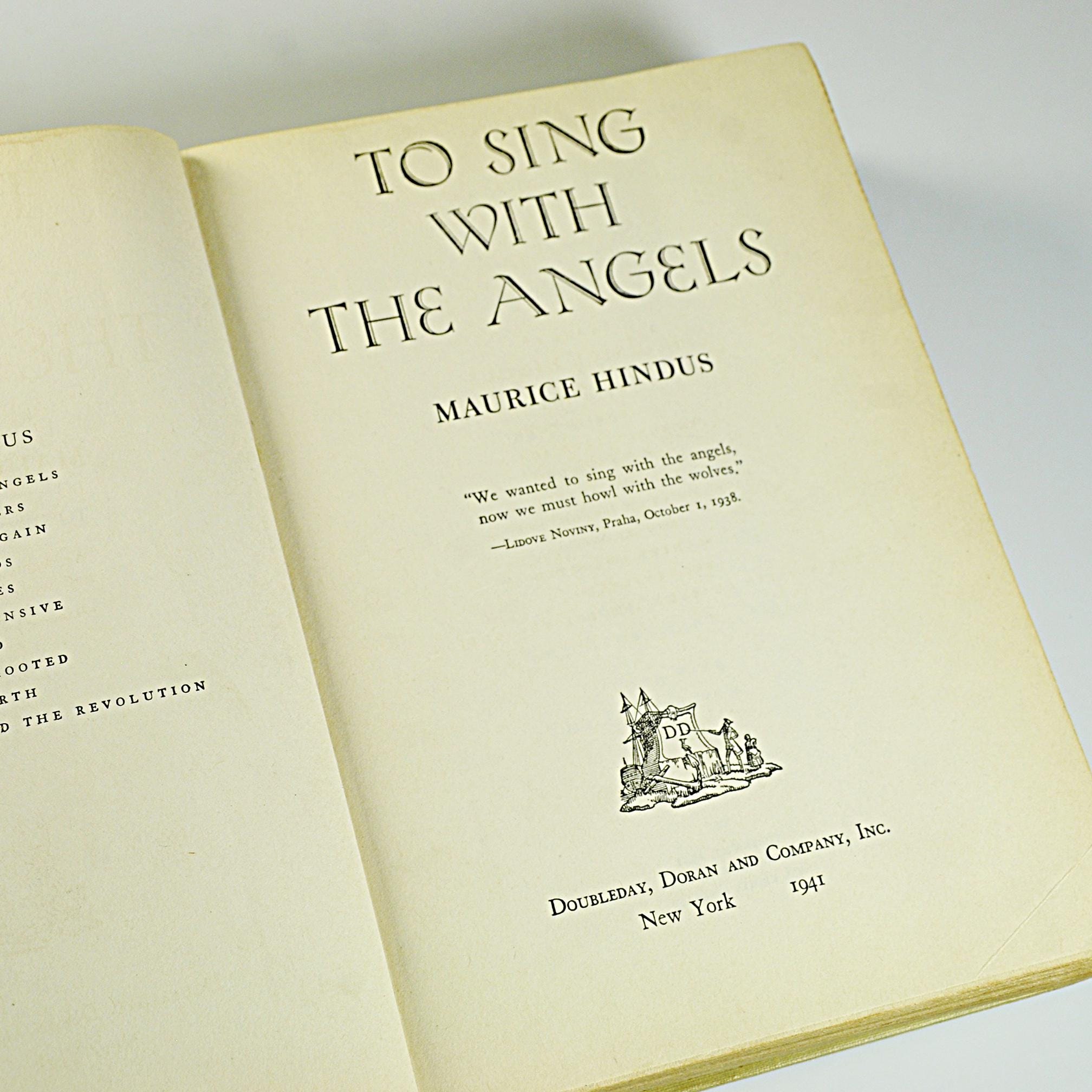 Here’s a piece of history from 1941 — To Sing With the Angels by Maurice Hindus, published by Doubleday, Doran & Company just before America entered World War II. Hindus, a Russian-born American writer, was known for explaining the human side of Soviet life to readers in the West. This book looks deeply into what happens when people lose faith in the ideals, they once believed in. It’s thoughtful, a little haunting, and written with that clear, earnest tone common to the early 1940s. The title itself comes from a Czech newspaper quote: “We wanted to sing with the angels, now we must howl with the wolves.” That line tells you what kind of story this is — one of ideals tested by the hard truth of war and politics. This is a first edition, published in 1941. The tan cloth cover is sturdy, with blue and red lettering on the spine. A wonderful read or display piece for anyone who collects wartime writing, early 20th century political commentary, or vintage Doubleday first editions.