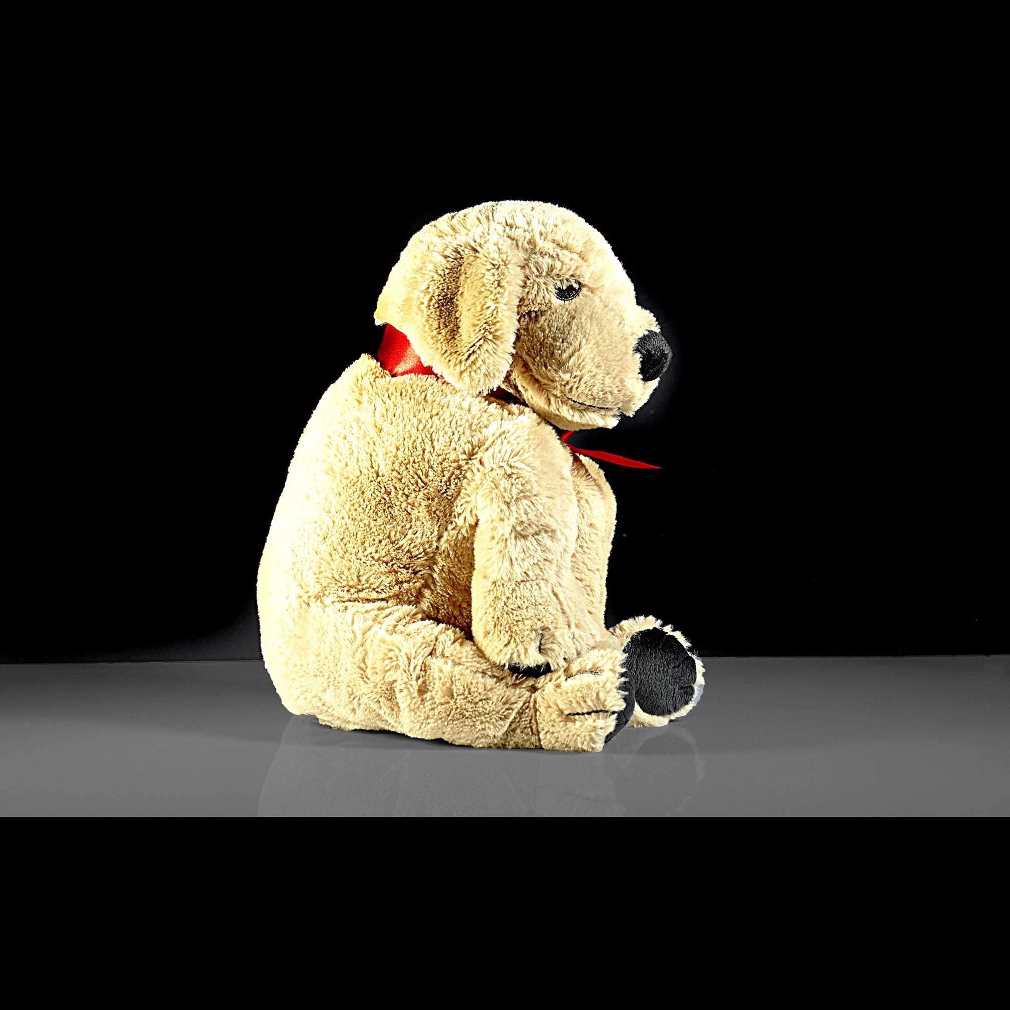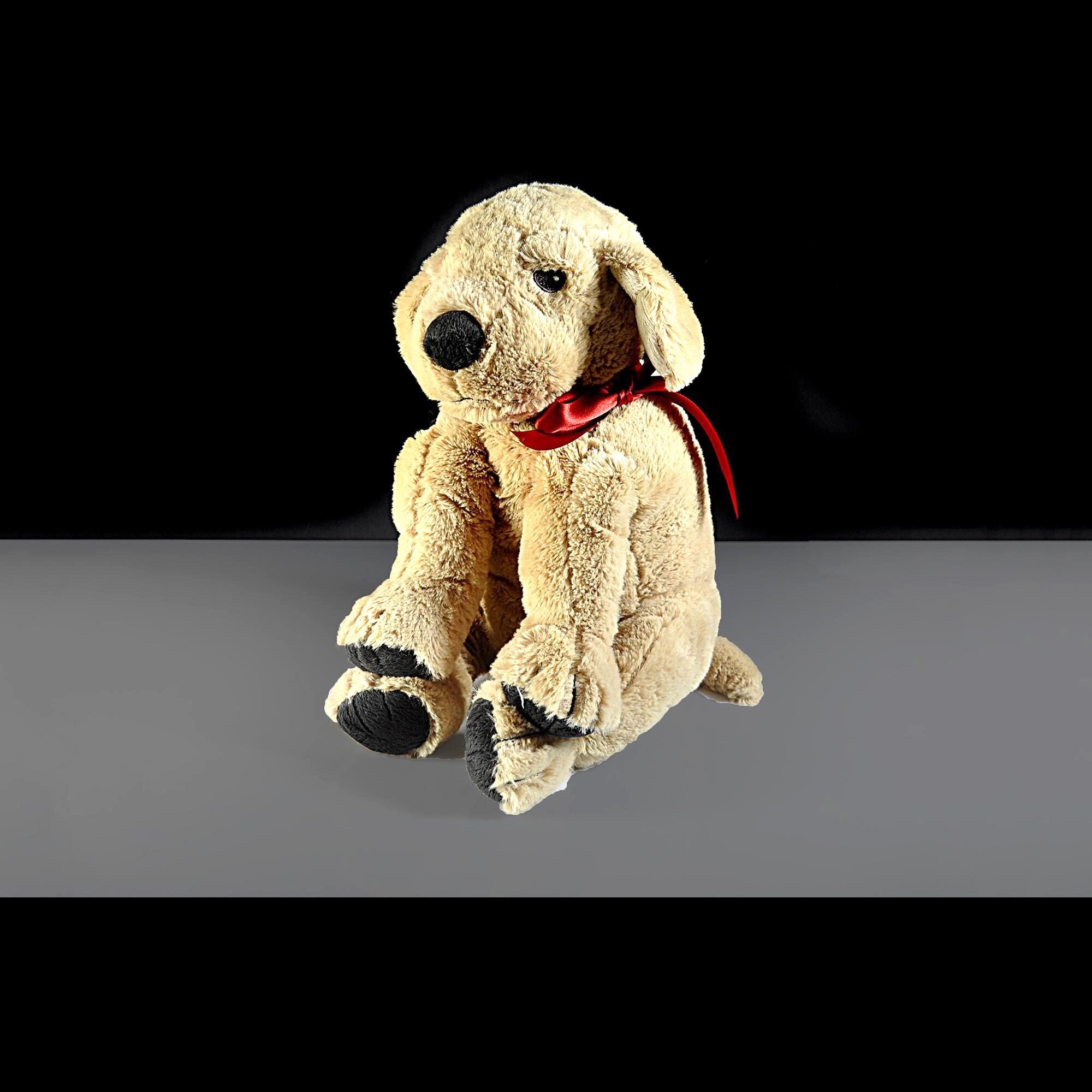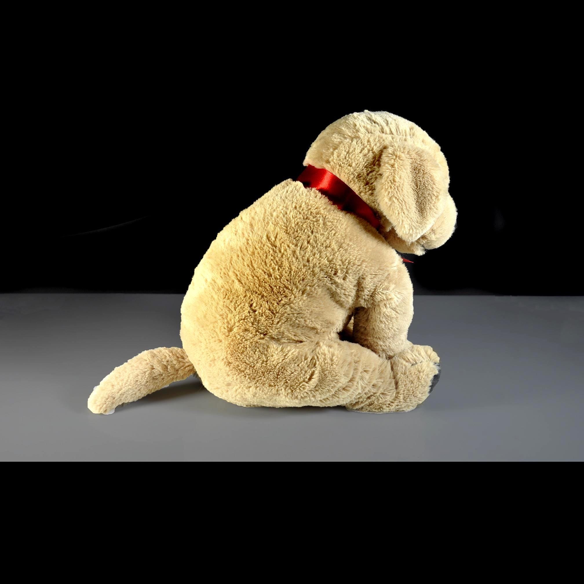 There’s something about an old plush dog that brings a bit of heart back into a room. This one’s the kind that likely sat on a child’s bed through the late ‘80s or early ‘90s, always waiting for bedtime stories or car rides. He’s a soft, floppy golden retriever type, about 10 inches when seated, with gently worn fur that feels like it’s been hugged more than a few times. His eyes are sewn, his nose is stitched, and he’s still got that endearing tilt to his head that makes you want to smile. I added the red satin ribbon myself — it just seemed right for him. He’s clean and unstained, no rips or tears, and has been carefully looked after. No tag remains, but he’s got all the charm of those well-made plush animals from the '80s — soft, realistic, and ready to sit on a shelf or be cuddled again. If you grew up with one like him, you’ll understand exactly why he’s hard to let go of.