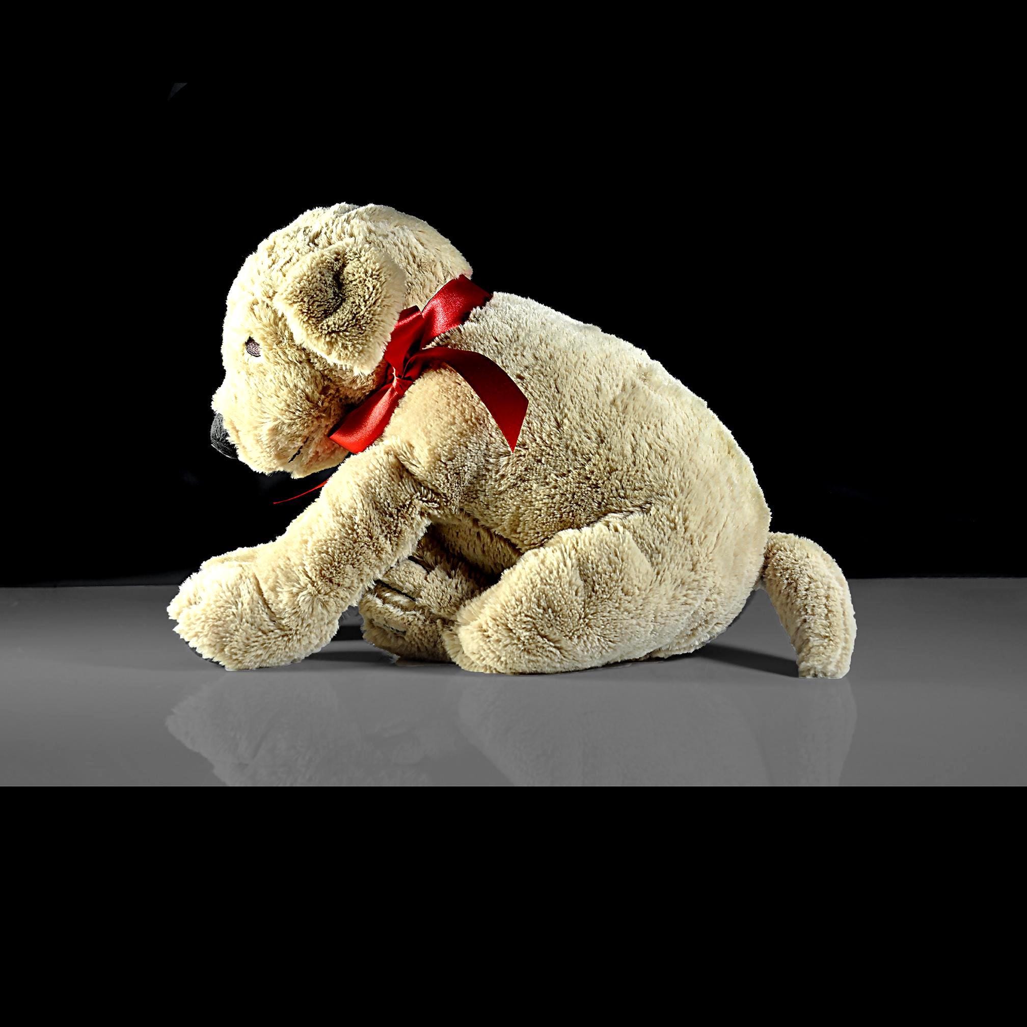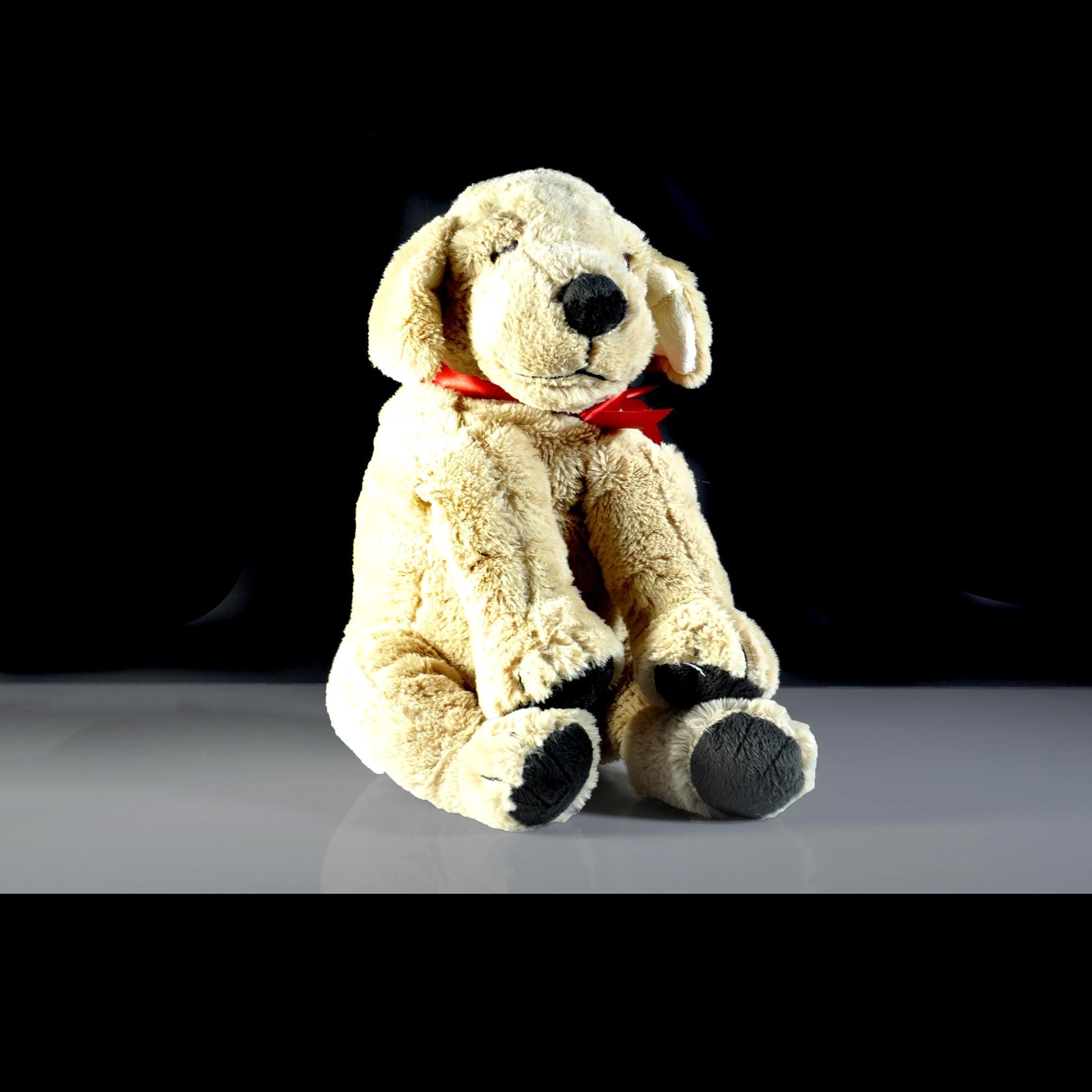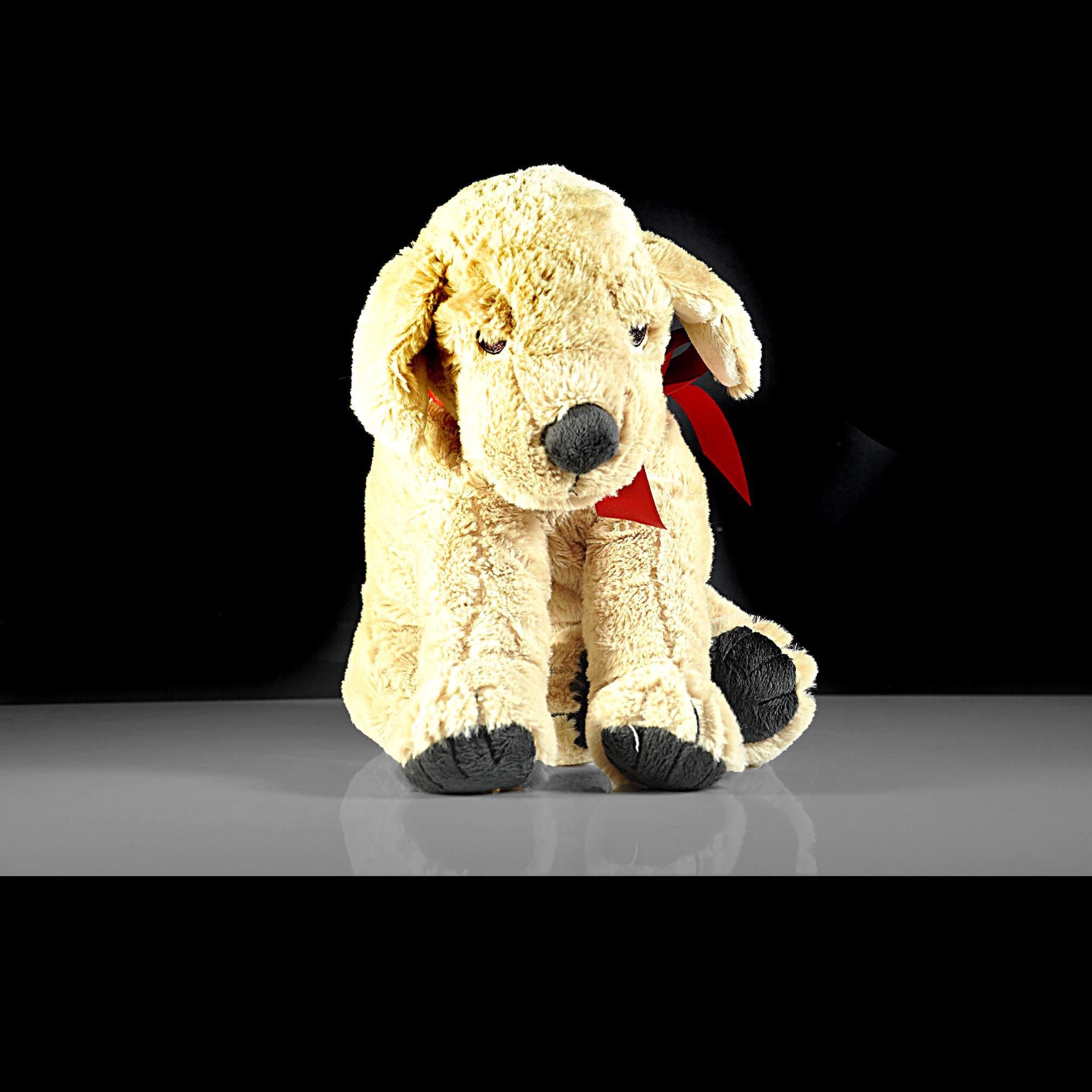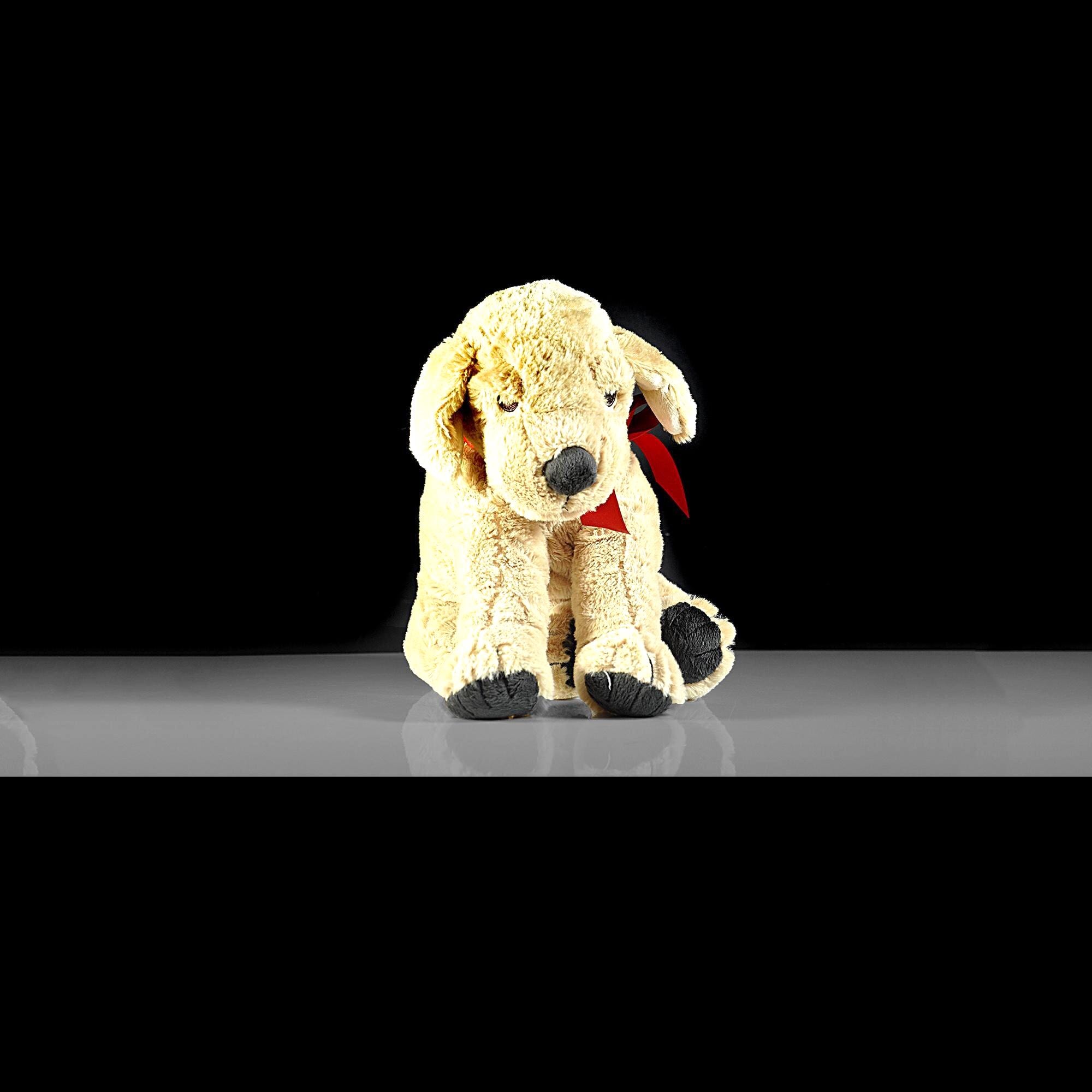 There’s something about an old plush dog that brings a bit of heart back into a room. This one’s the kind that likely sat on a child’s bed through the late ‘80s or early ‘90s, always waiting for bedtime stories or car rides. He’s a soft, floppy golden retriever type, about 10 inches when seated, with gently worn fur that feels like it’s been hugged more than a few times. His eyes are sewn, his nose is stitched, and he’s still got that endearing tilt to his head that makes you want to smile. I added the red satin ribbon myself — it just seemed right for him. He’s clean and unstained, no rips or tears, and has been carefully looked after. No tag remains, but he’s got all the charm of those well-made plush animals from the '80s — soft, realistic, and ready to sit on a shelf or be cuddled again. If you grew up with one like him, you’ll understand exactly why he’s hard to let go of.