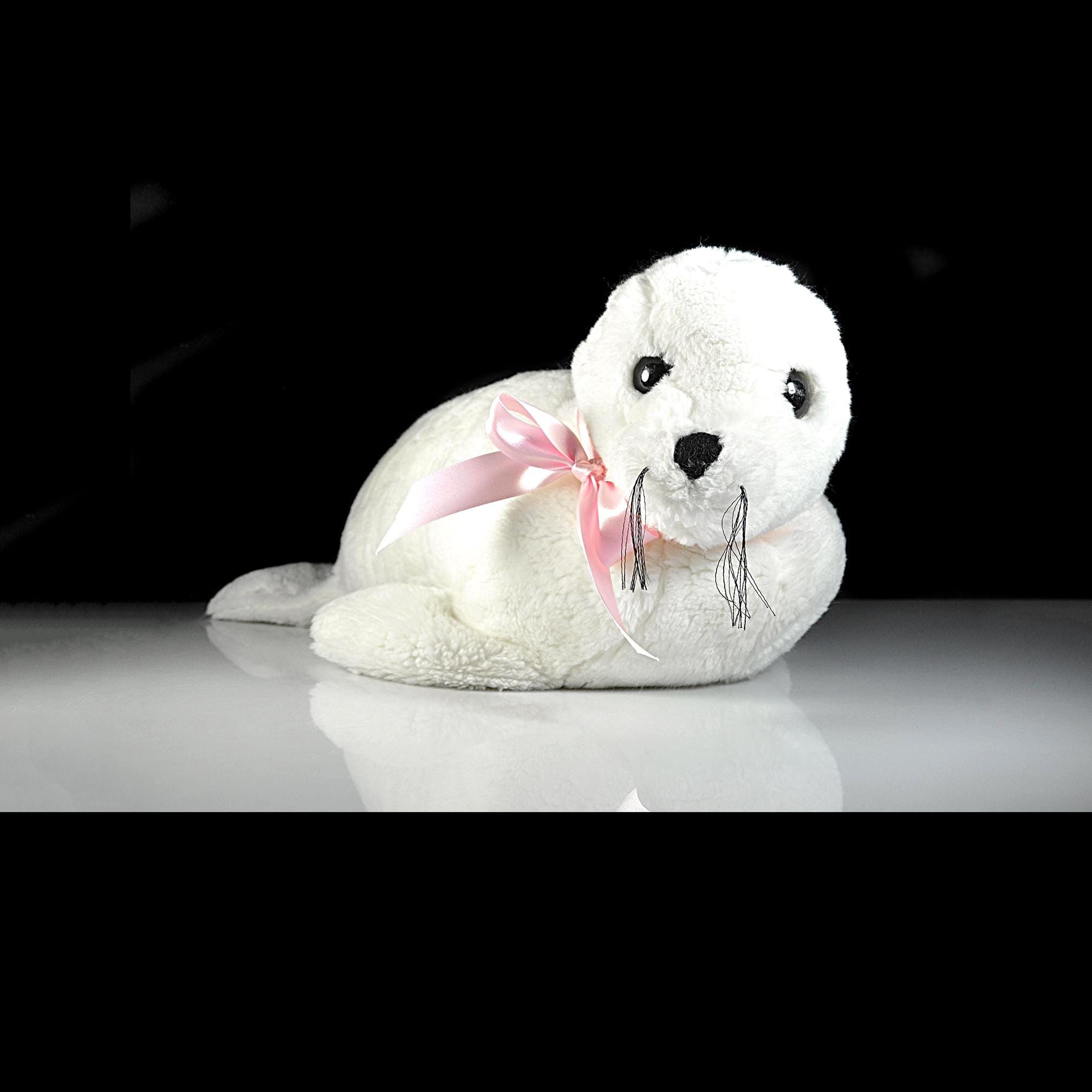 There’s something about this seal’s face that just makes you smile. The soft white fur, the curious eyes, and that little pink satin bow — all of it reminds you of when toys were made to feel like friends, not just decorations. This vintage plush seal was made by Douglas Cuddle Toys, a family-owned American company that’s been crafting beloved stuffed animals since 1956. It’s a fine example of their earlier work — made right here in the USA before production shifted overseas. This white seal represents a baby harp seal, and collectors know they’re a favorite among Douglas fans. Whether you grew up with one, always wanted one, or just love the gentle expression of these vintage plush animals, this sweet seal will bring a touch of warmth and nostalgia wherever she goes.