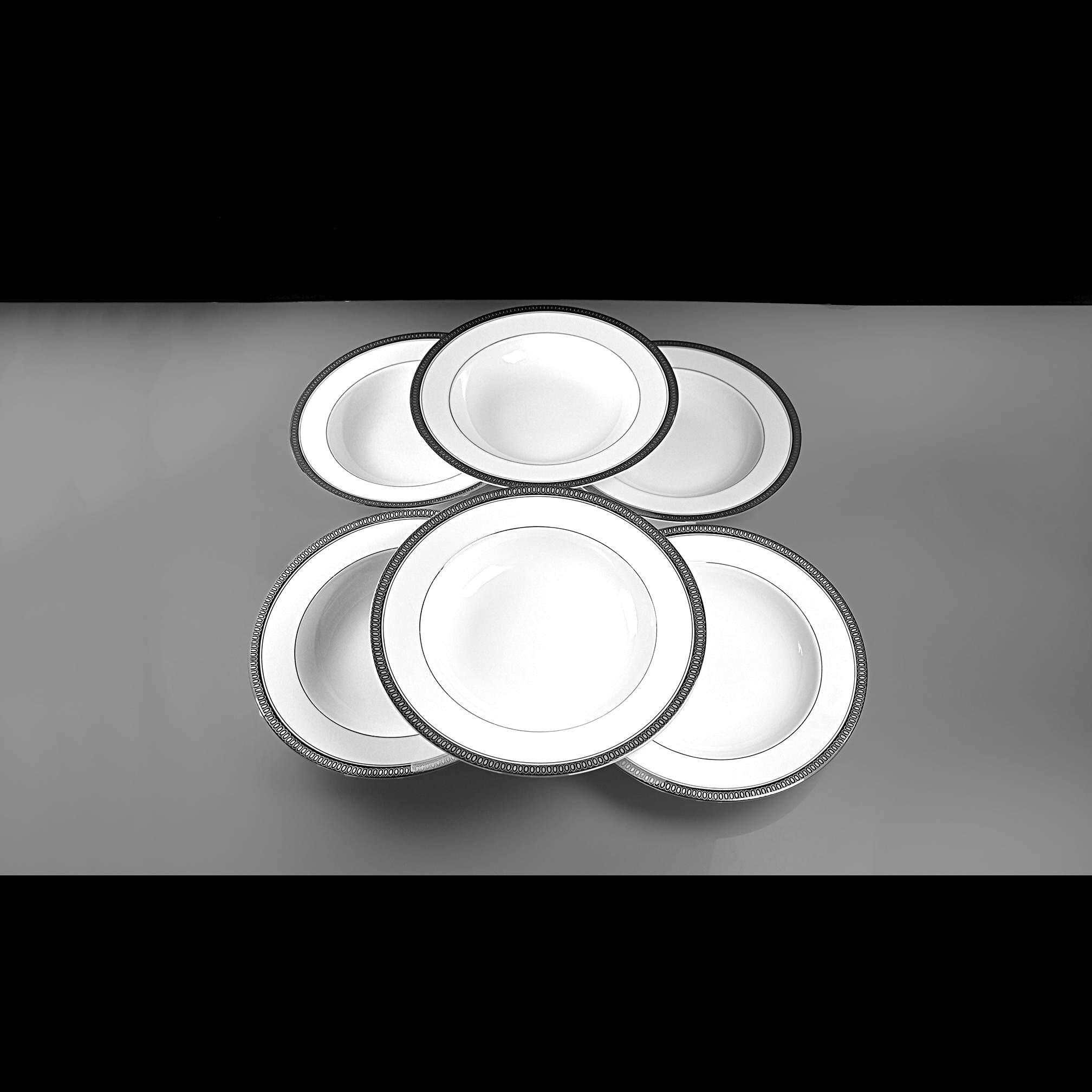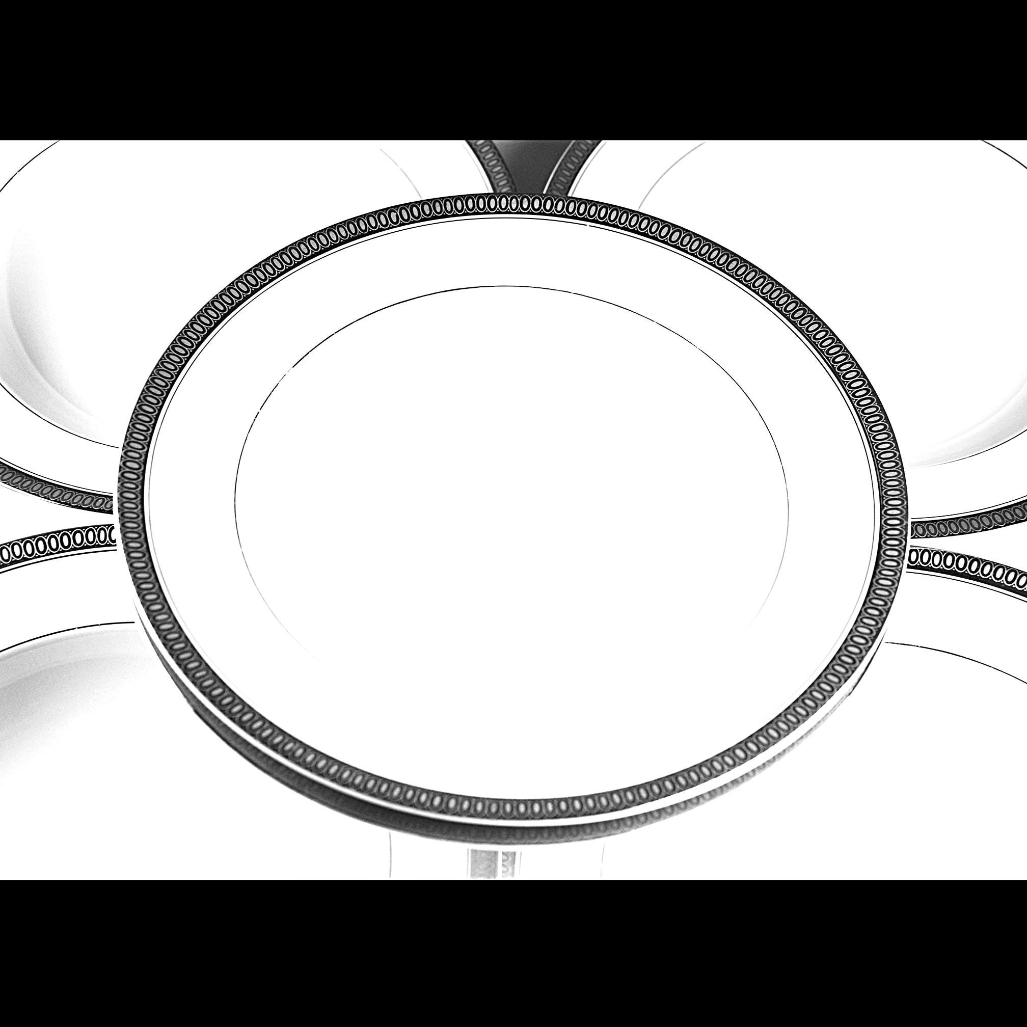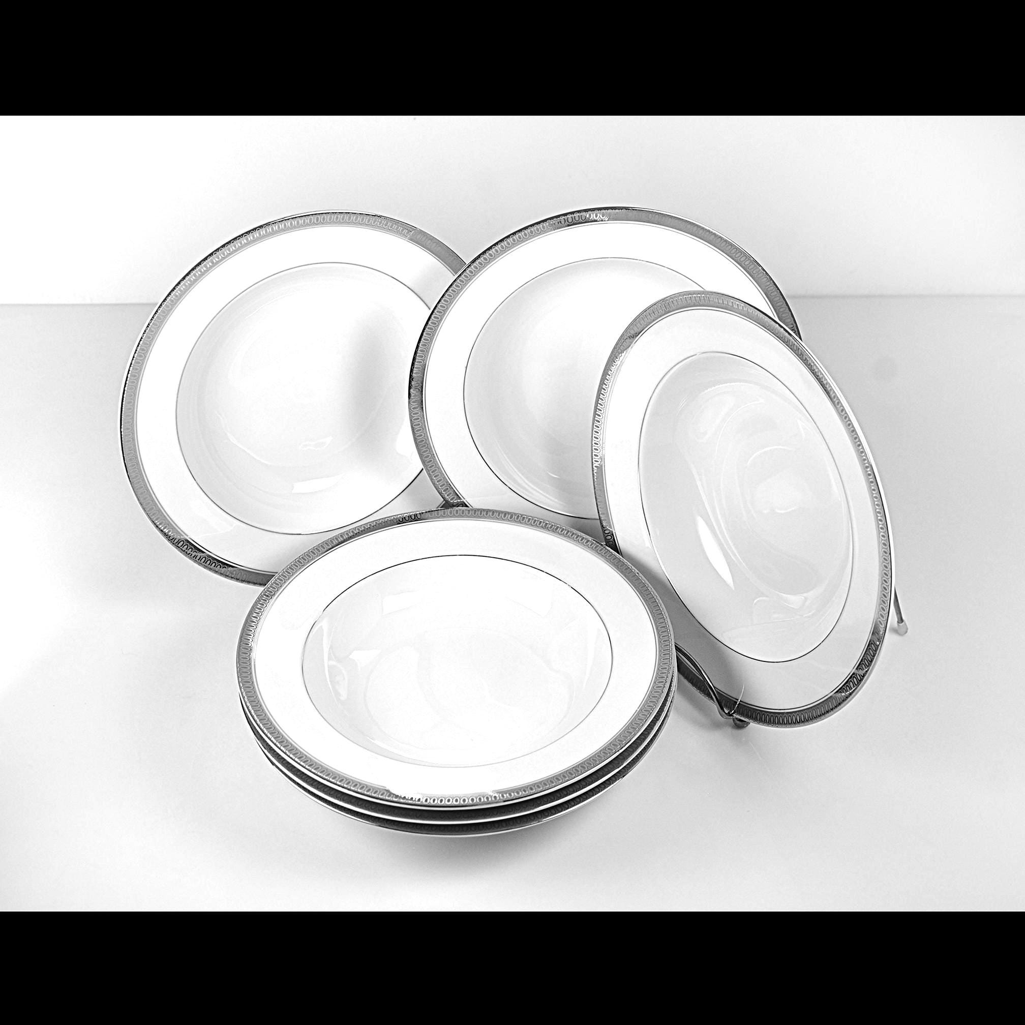 There’s a certain charm to these old Continental China pieces that you just don’t find anymore. This set of six 8-inch soup bowls is from Continental China Germany, in the Duchess pattern, made by Rosenthal. They’re classic mid-century porcelain — thin, bright white, and trimmed in a band of delicate platinum with an elegant, looped border. You can almost picture them on a table dressed for company — maybe candlelight flickering off the silver edge, a pot of soup kept warm on the stove, and family or friends gathered around taking their time. This pattern, Duchess, has that quiet sophistication that doesn’t demand attention — it simply feels right at home in any setting, whether that’s a formal meal or a cozy supper on a cool evening. Rosenthal was known for their precision and quality, and it shows here — every edge smooth, every detail sharp. These bowls have that timeless mid-century feel that fits right into today’s homes, especially if you appreciate pieces with a bit of history and grace. A set like this would make a beautiful addition to any vintage dinnerware collection or replace missing pieces in a cherished set.