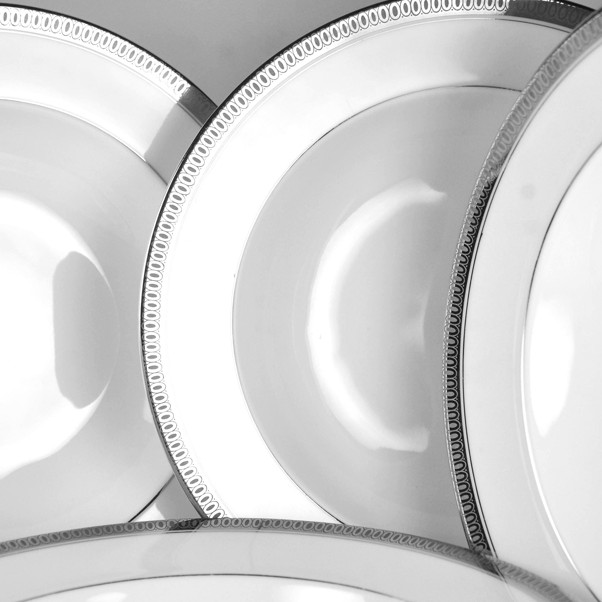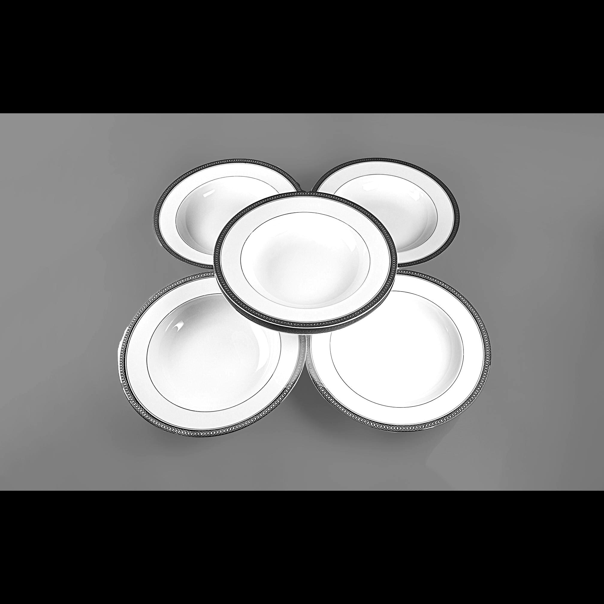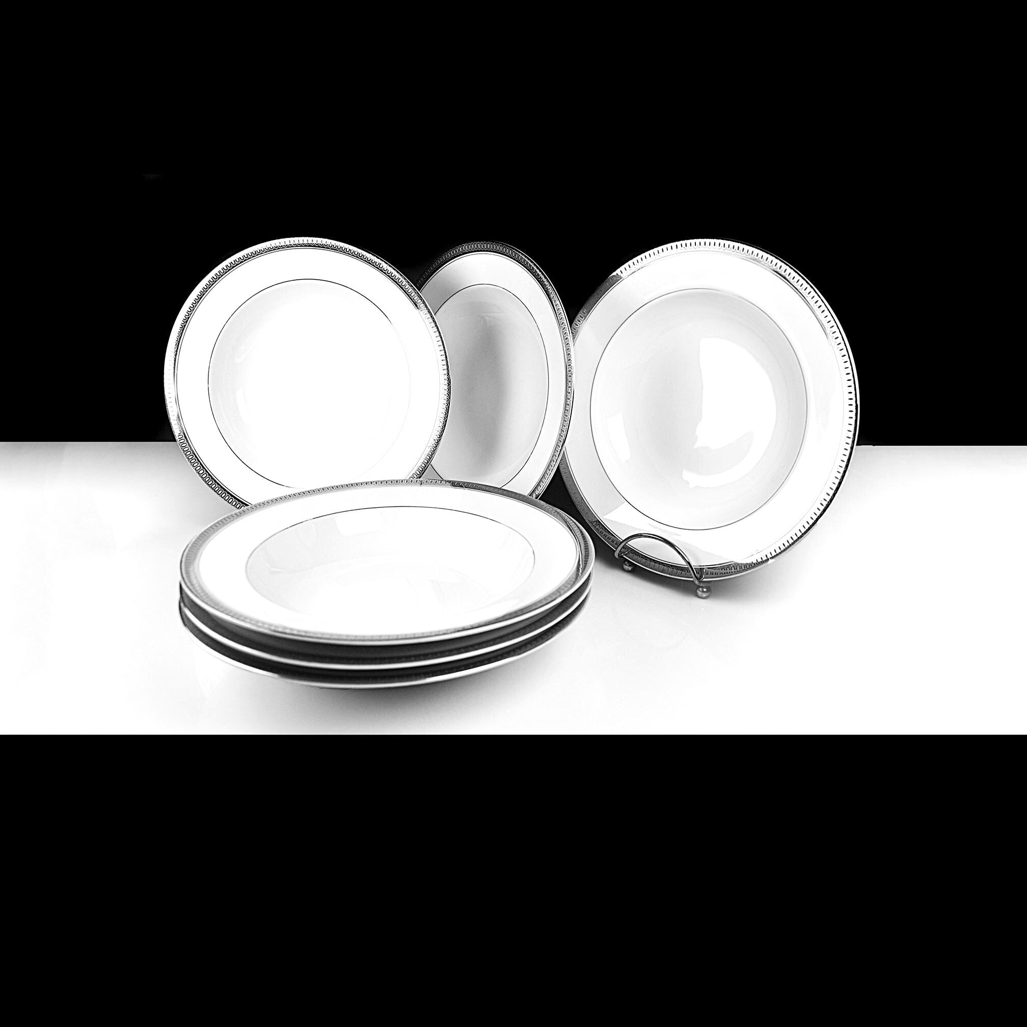 There’s a certain charm to these old Continental China pieces that you just don’t find anymore. This set of six 8-inch soup bowls is from Continental China Germany, in the Duchess pattern, made by Rosenthal. They’re classic mid-century porcelain — thin, bright white, and trimmed in a band of delicate platinum with an elegant, looped border. You can almost picture them on a table dressed for company — maybe candlelight flickering off the silver edge, a pot of soup kept warm on the stove, and family or friends gathered around taking their time. This pattern, Duchess, has that quiet sophistication that doesn’t demand attention — it simply feels right at home in any setting, whether that’s a formal meal or a cozy supper on a cool evening. Rosenthal was known for their precision and quality, and it shows here — every edge smooth, every detail sharp. These bowls have that timeless mid-century feel that fits right into today’s homes, especially if you appreciate pieces with a bit of history and grace. A set like this would make a beautiful addition to any vintage dinnerware collection or replace missing pieces in a cherished set.