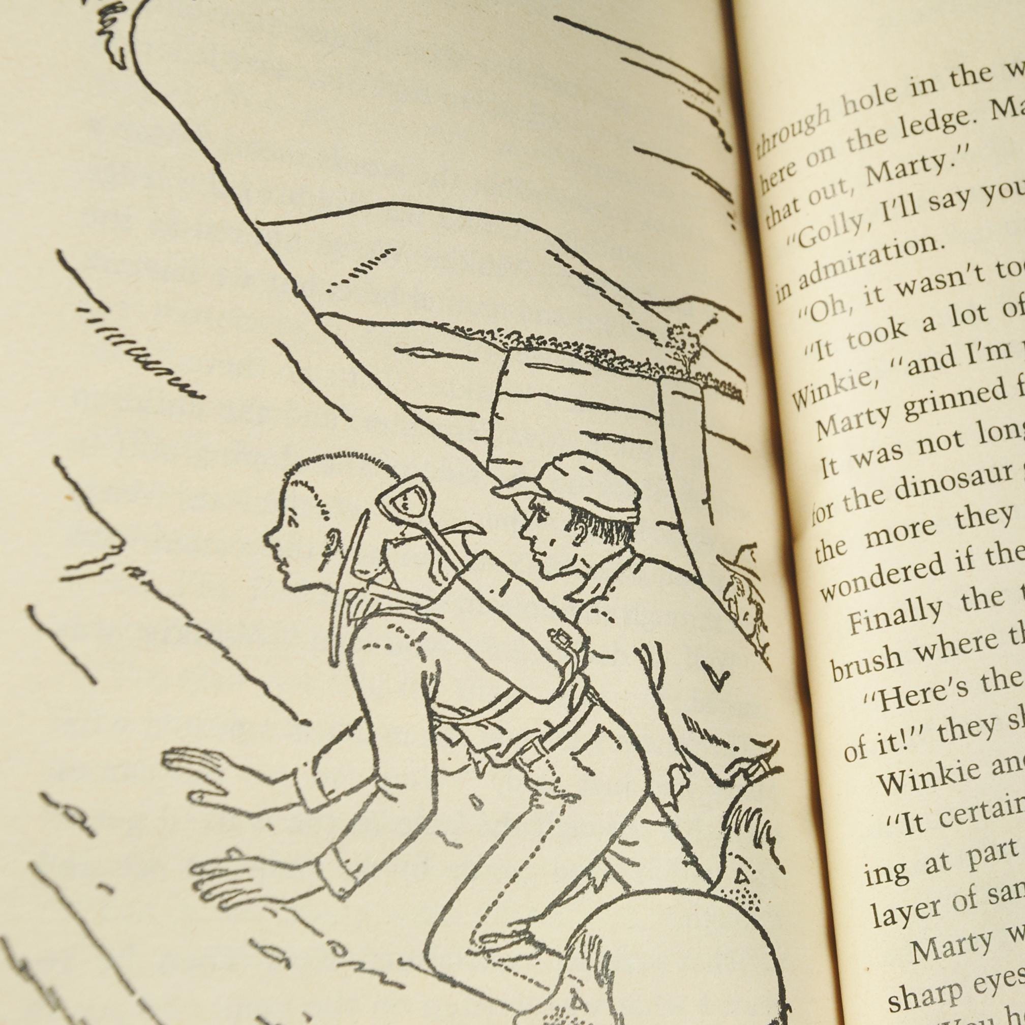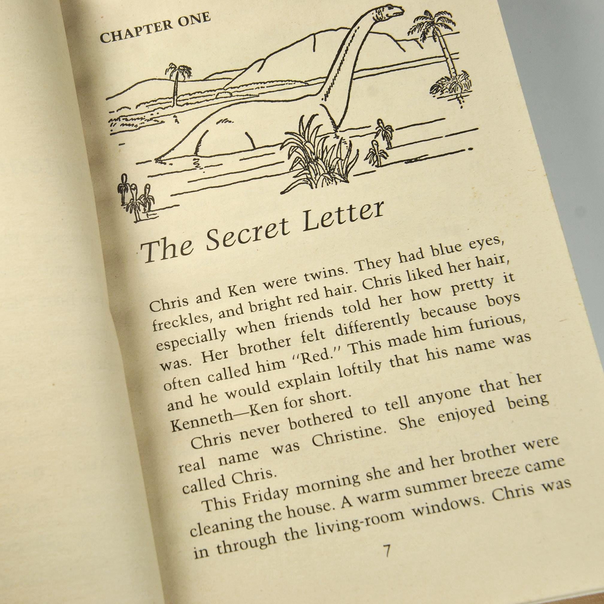 If you grew up with Weekly Reader Books, you’ll remember the feeling of coming home from school with a brand-new story tucked under your arm. The Mystery of the Dinosaur Bones is one of those classic mid-’60s adventure tales — simple, wholesome, and packed with just enough excitement to keep young readers turning the pages. Written by Mary Adrian and published in 1965, the story follows twins Chris and Ken as they stumble into a summer mystery involving secret notes, strange footprints, maps, and an unexpected discovery out in the desert. It’s light adventure with a touch of science, exactly the kind of story Weekly Reader loved to spotlight. A nice addition for anyone collecting Weekly Reader editions, classroom nostalgia, dinosaur-themed children’s books, or mid-century juvenile fiction. Perfect for display, reading, or gifting to someone who remembers these from their school days