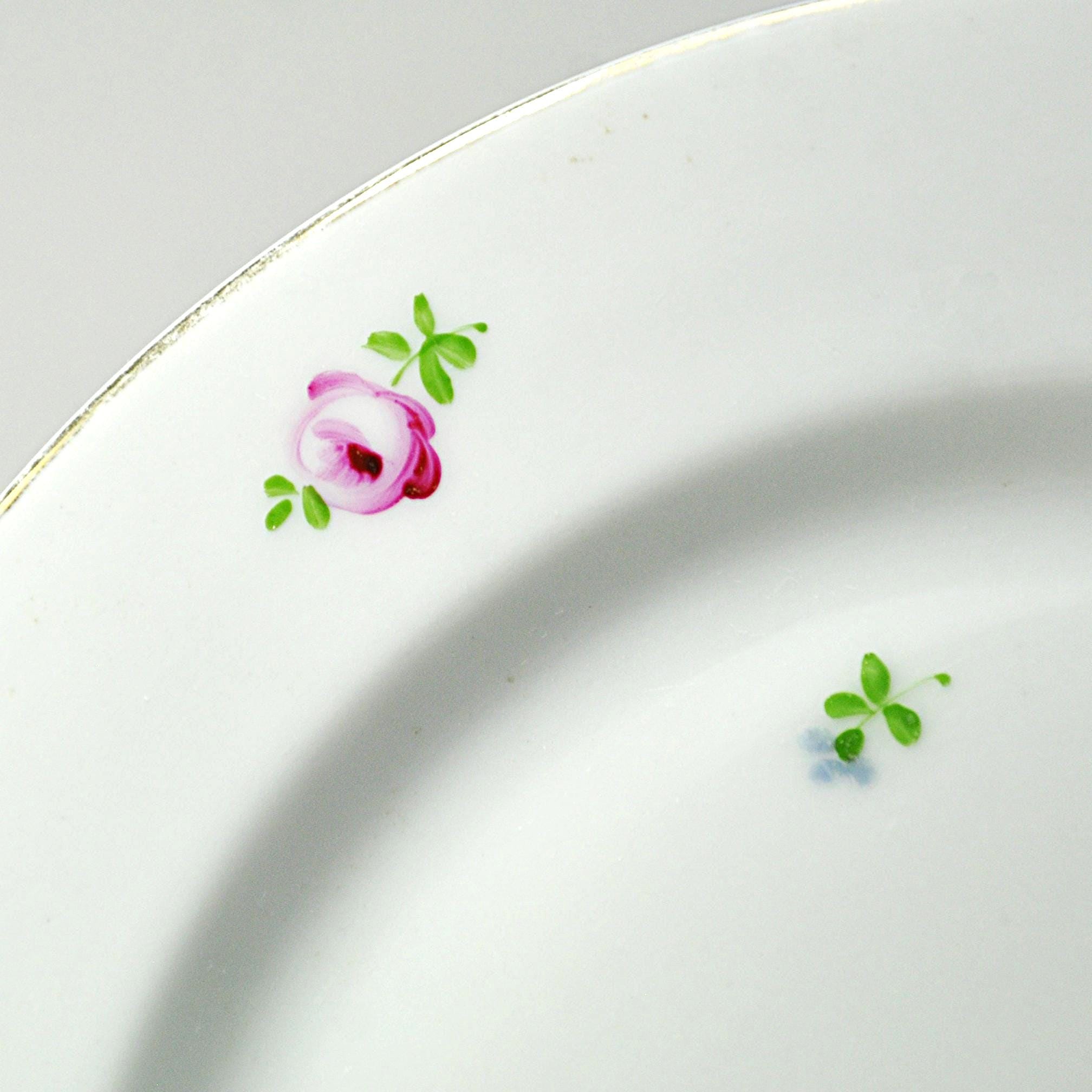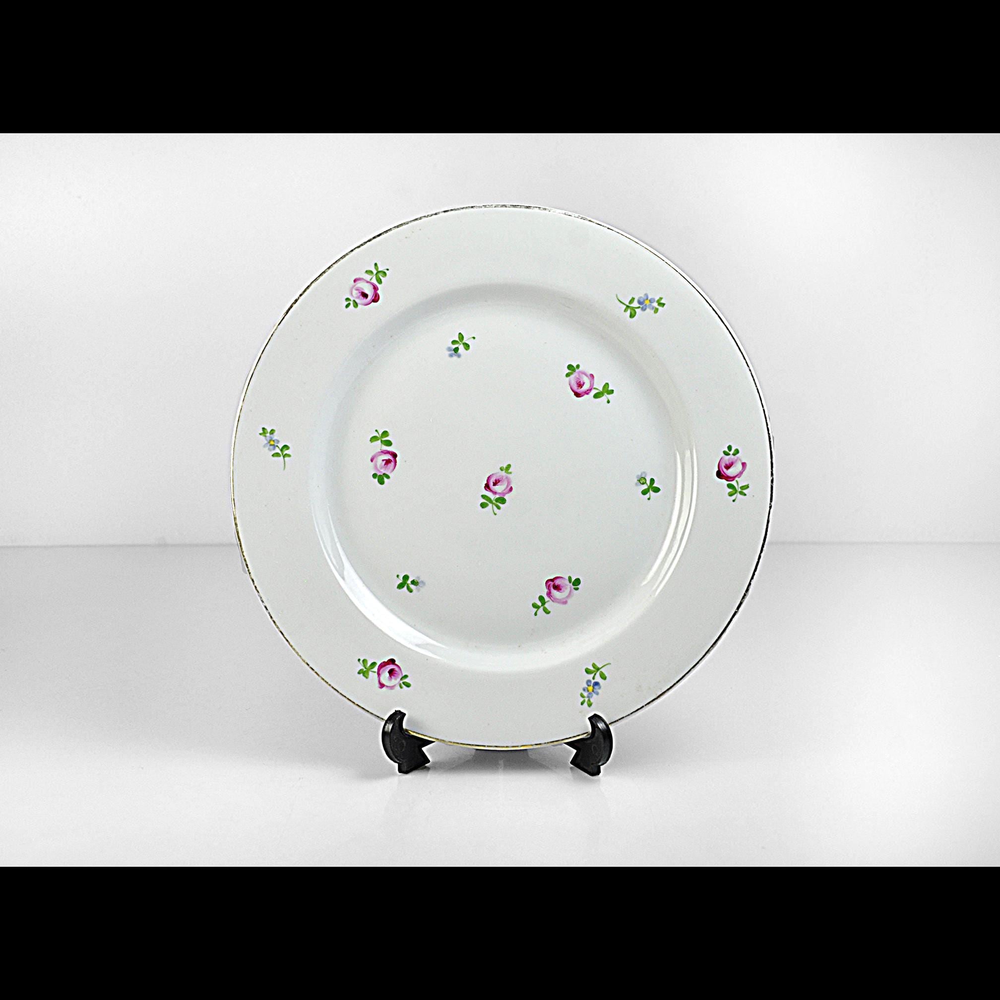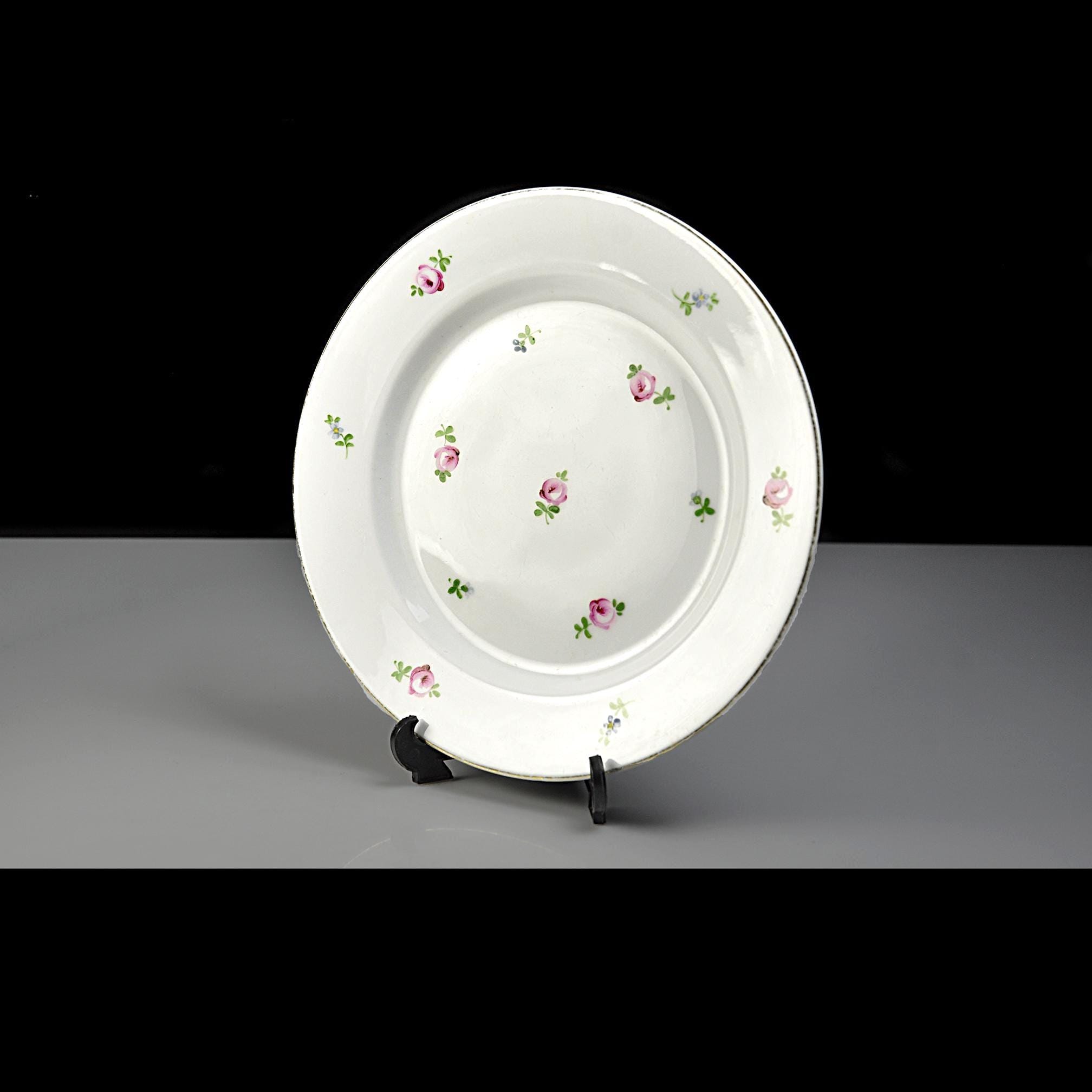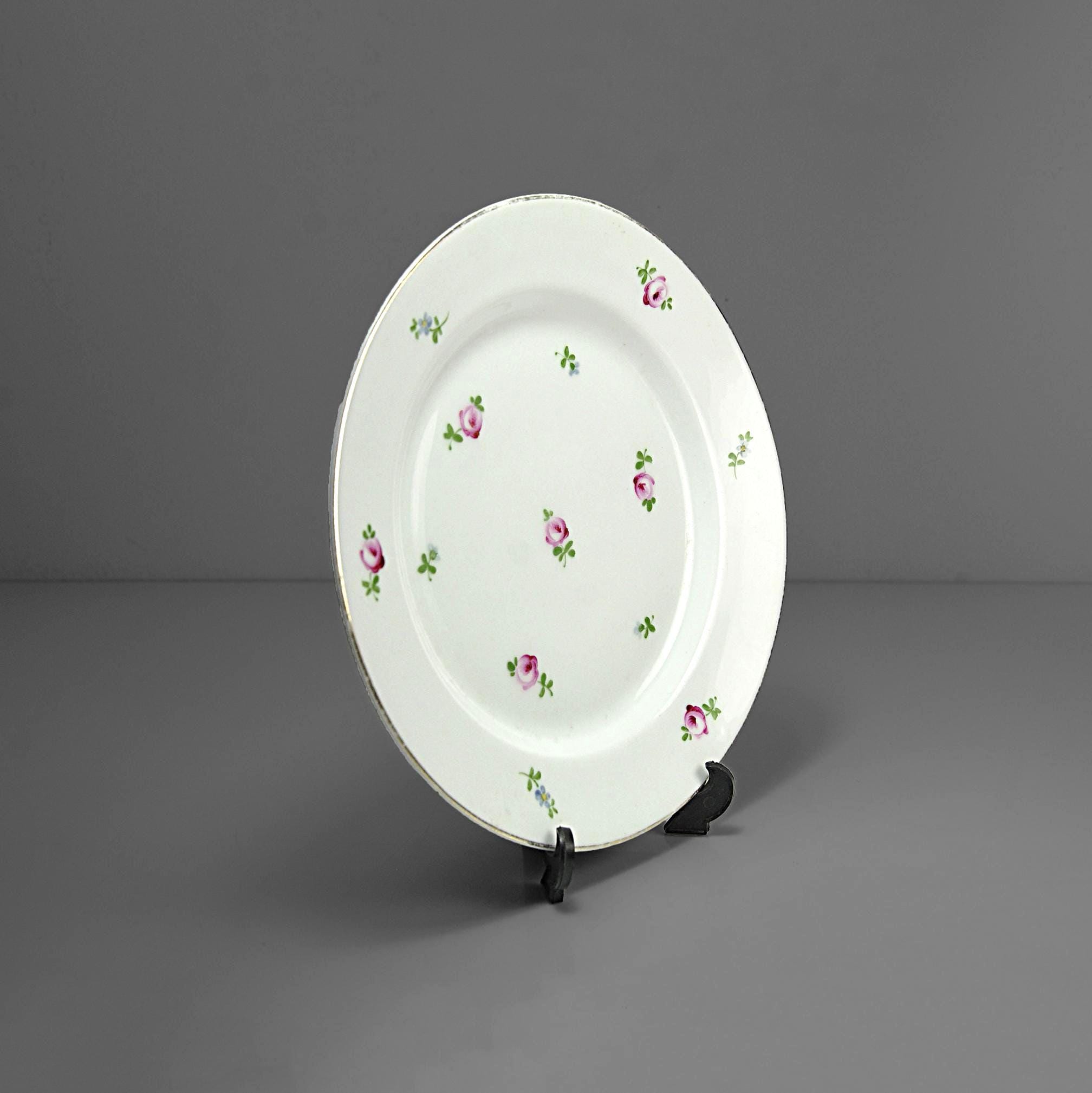 This little Bavarian plate has been around for close to a century, and you can see why it’s still charming. Made by Heinrich & Co. in Selb, Germany sometime in the 1920s, it’s the sort of piece you’d find sitting in a grandmother’s china cupboard — simple white porcelain with scattered pink rosebuds and a soft, easy feel. It is just the right size for a small dessert or to tuck onto a shelf. It’s a sweet old piece with that uncomplicated cottage look, ready for someone who still likes the quiet beauty of old Bavarian china.