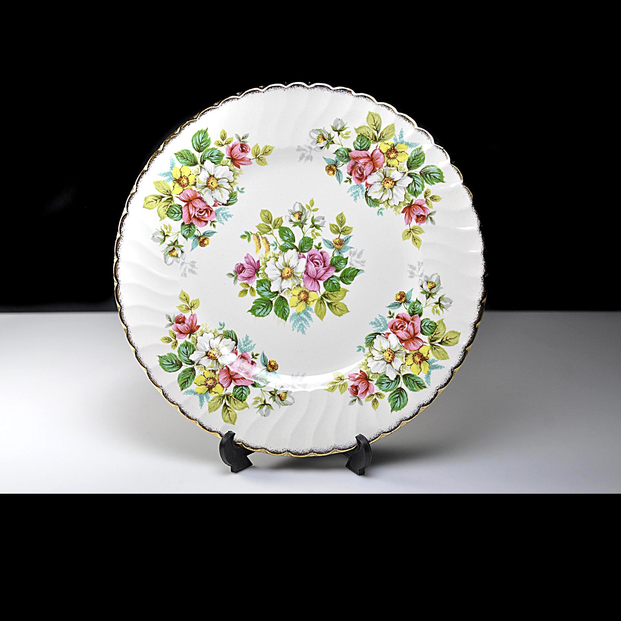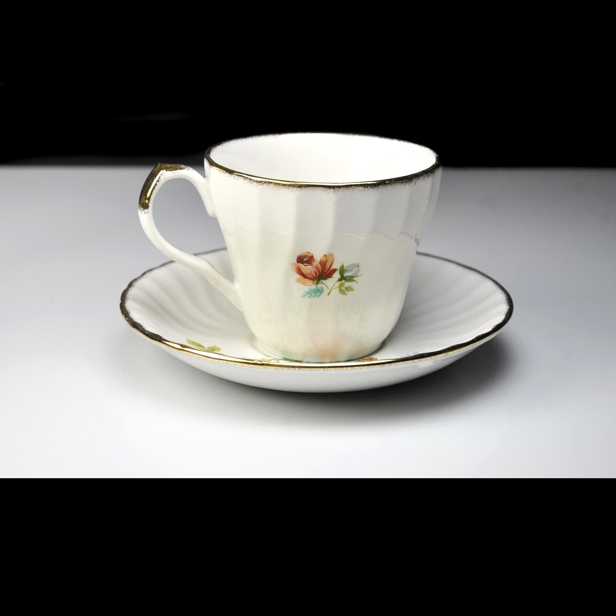 There’s something comforting about an old English tea trio, the kind that used to come out only when company stopped by. This Royal Crown Staffordshire set has that same familiar feel. Bright cottage flowers, soft scalloped edges, and just enough gold trim to remind you that somebody once kept this as their “good” china. You’re getting all three pieces — the teacup, saucer, and plate — and they’ve held up beautifully.