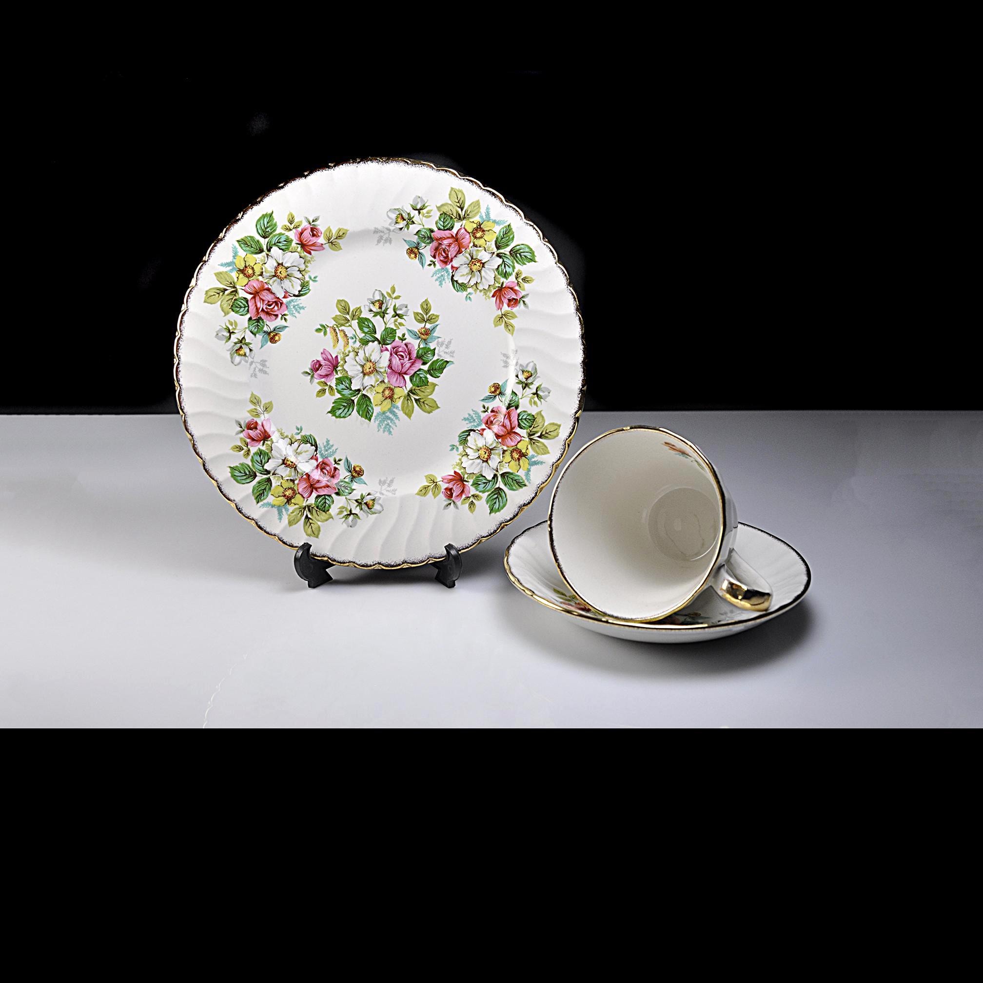 The cup, saucer, and plate have no chips, cracks, or crazing. Everything sits together just the way a beautiful tea trio should.