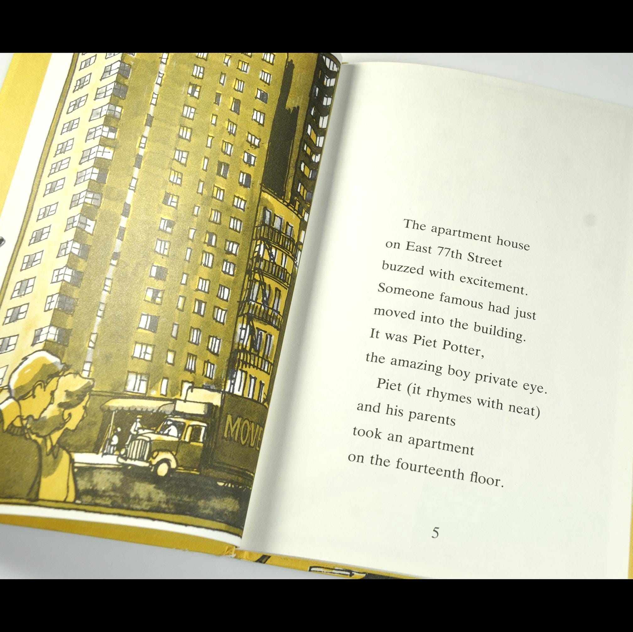 Piet Potter is a young detective with a sharp eye and a good head on his shoulders. In this first case, Piet finds himself helping a neighbor solve a mystery involving a hidden stash of money. With nothing more than a blank sheet of paper, a key, and a subway map, he pieces together a puzzling message left in a will. The book blends simple language with Quackenbush’s trademark sketch-style illustrations, keeping young readers right in the middle of the sleuthing.