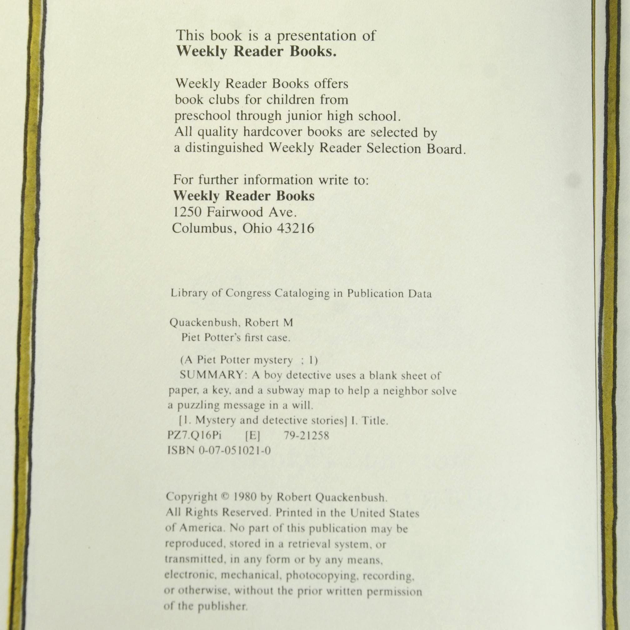 If you grew up in the late ’70s or early ’80s, chances are you remember those Weekly Reader books that showed up in school. This little yellow mystery, Piet Potter’s First Case by Robert Quackenbush, is one of those familiar favorites. Quackenbush had a knack for creating young detectives with just enough grit and curiosity to make a kid feel like they could solve a case themselves.
