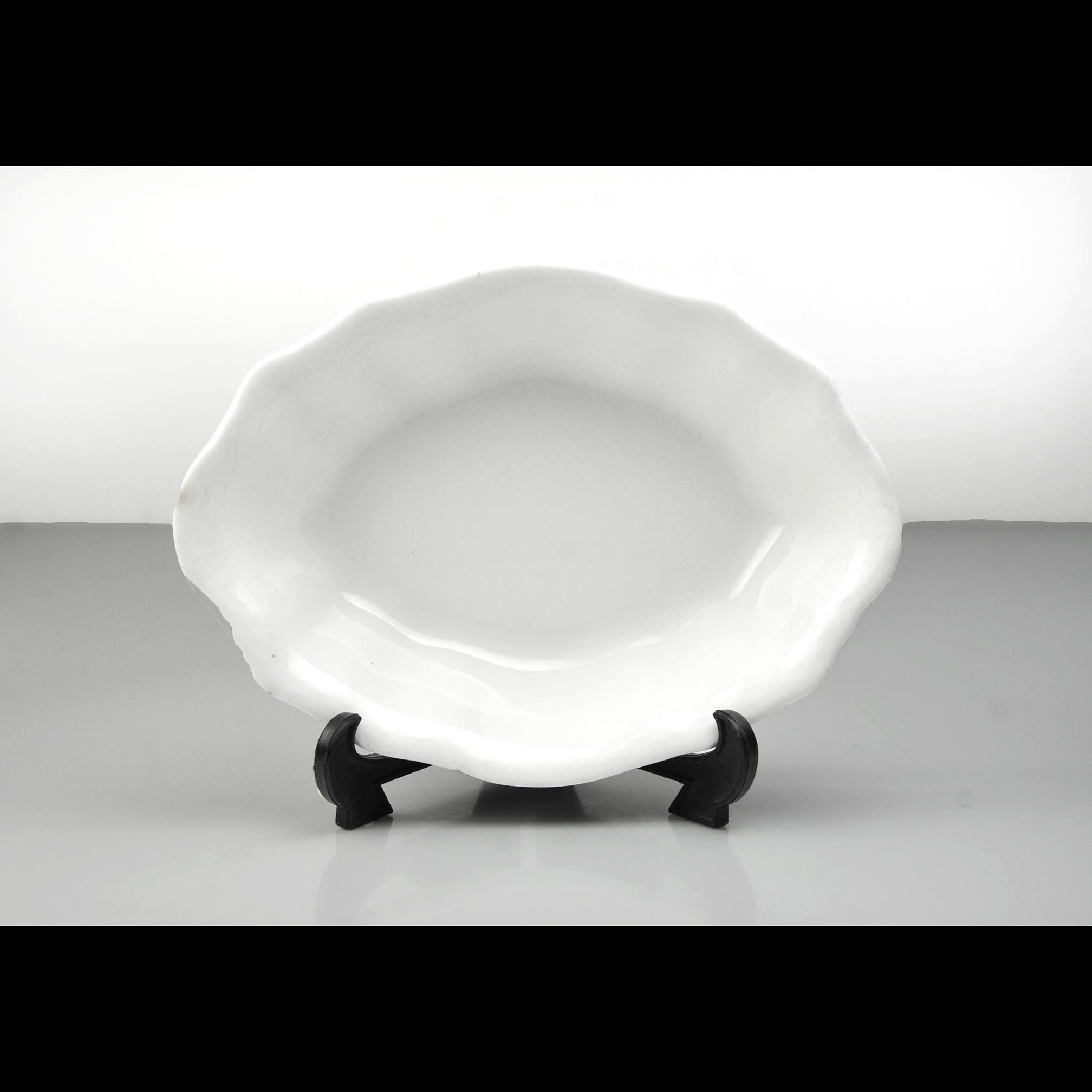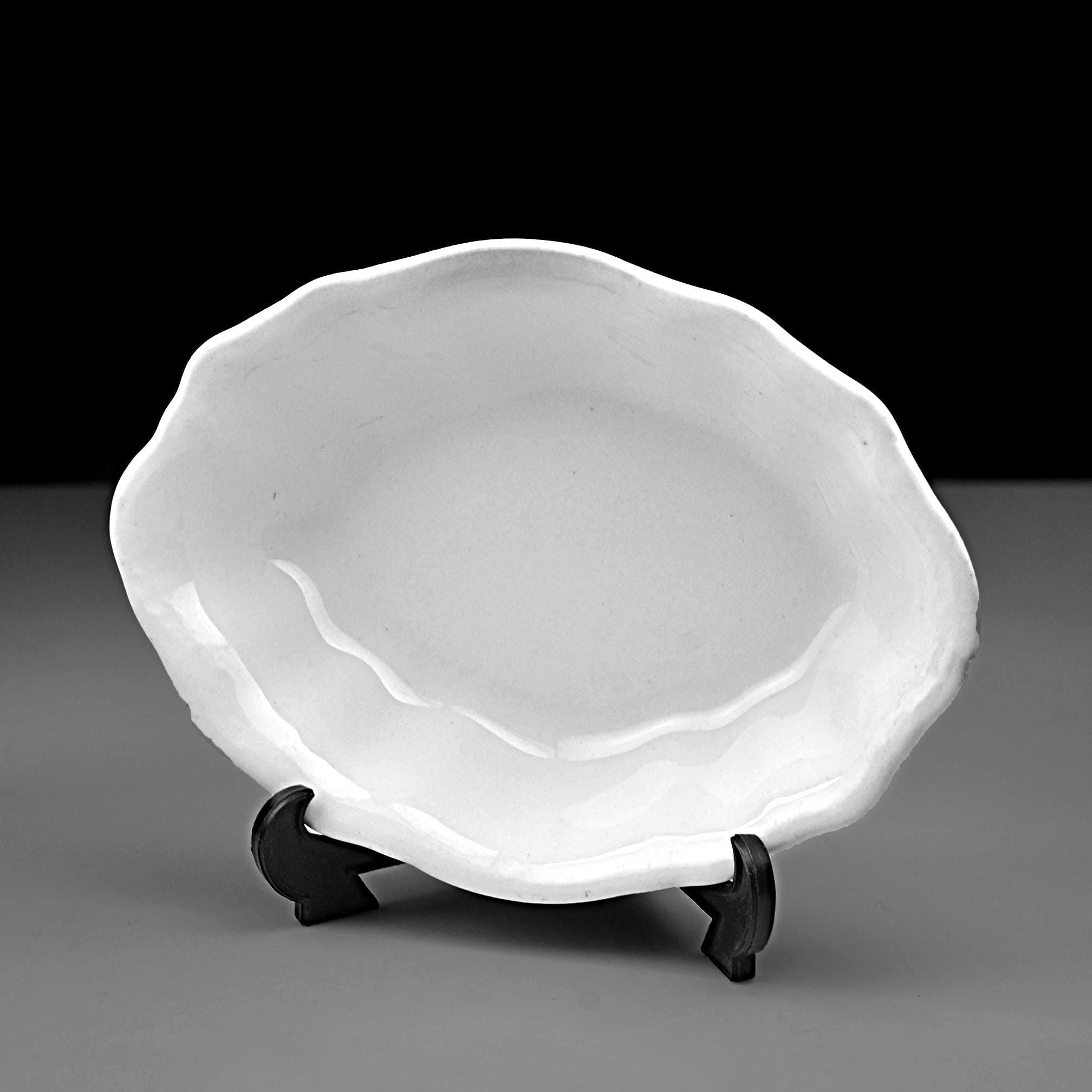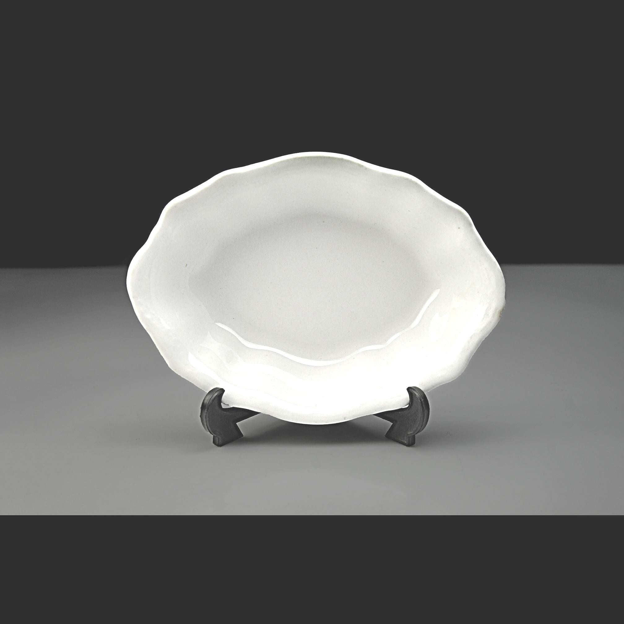 This little oval bowl is from Homer Laughlin’s early Hudson line, a shape they introduced in the early 1900s. It has that soft, scalloped edge they were known for and the simple, no-nonsense look that fit everyday tables back then. Its size makes it great for berries or small side servings. If you collect Hudson pieces or you’re filling in an old family set, this little bowl still has plenty of life left in it. It displays nicely and keeps that early American charm.