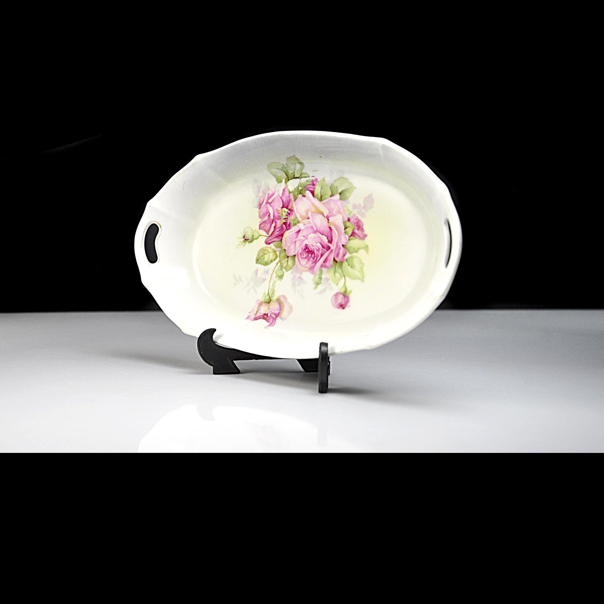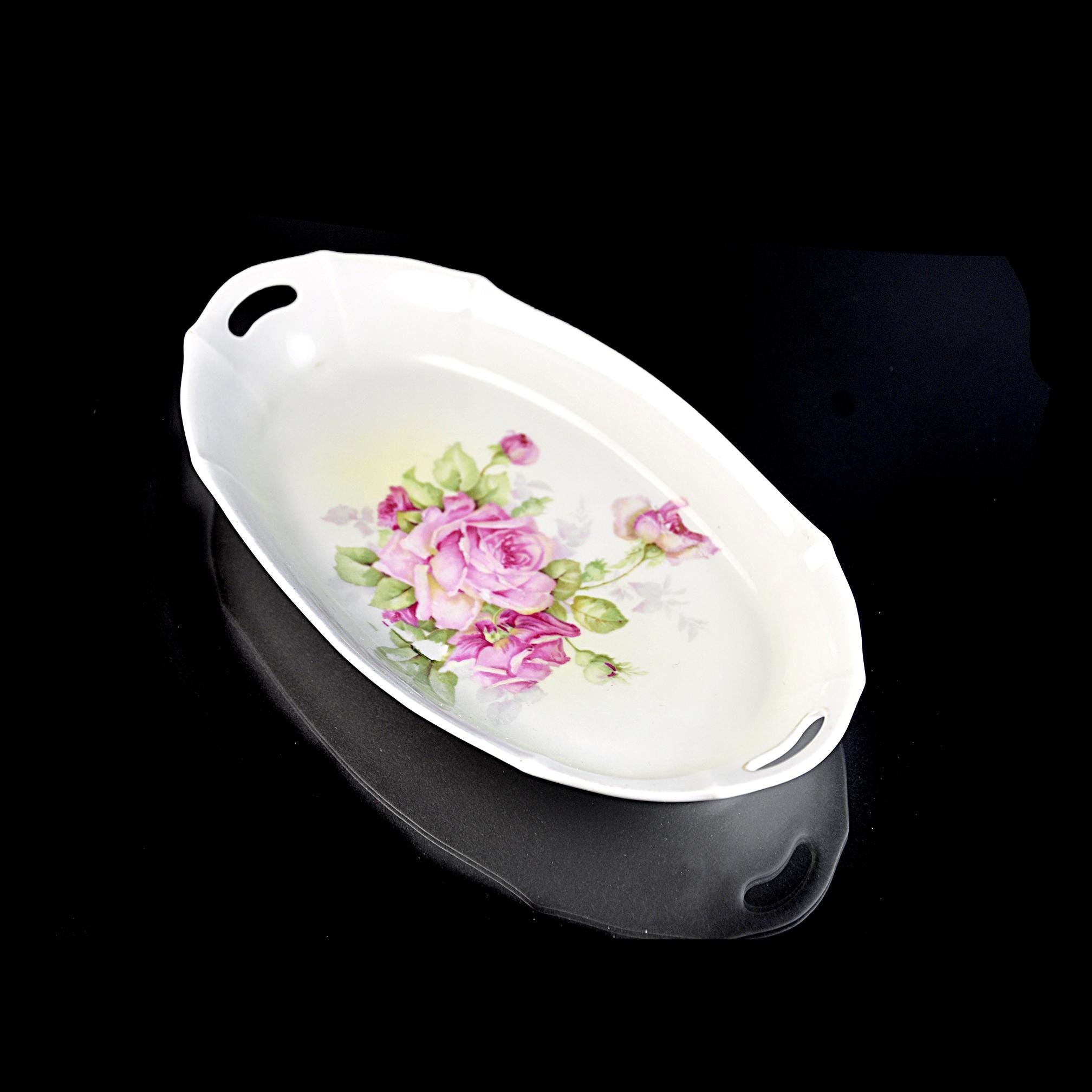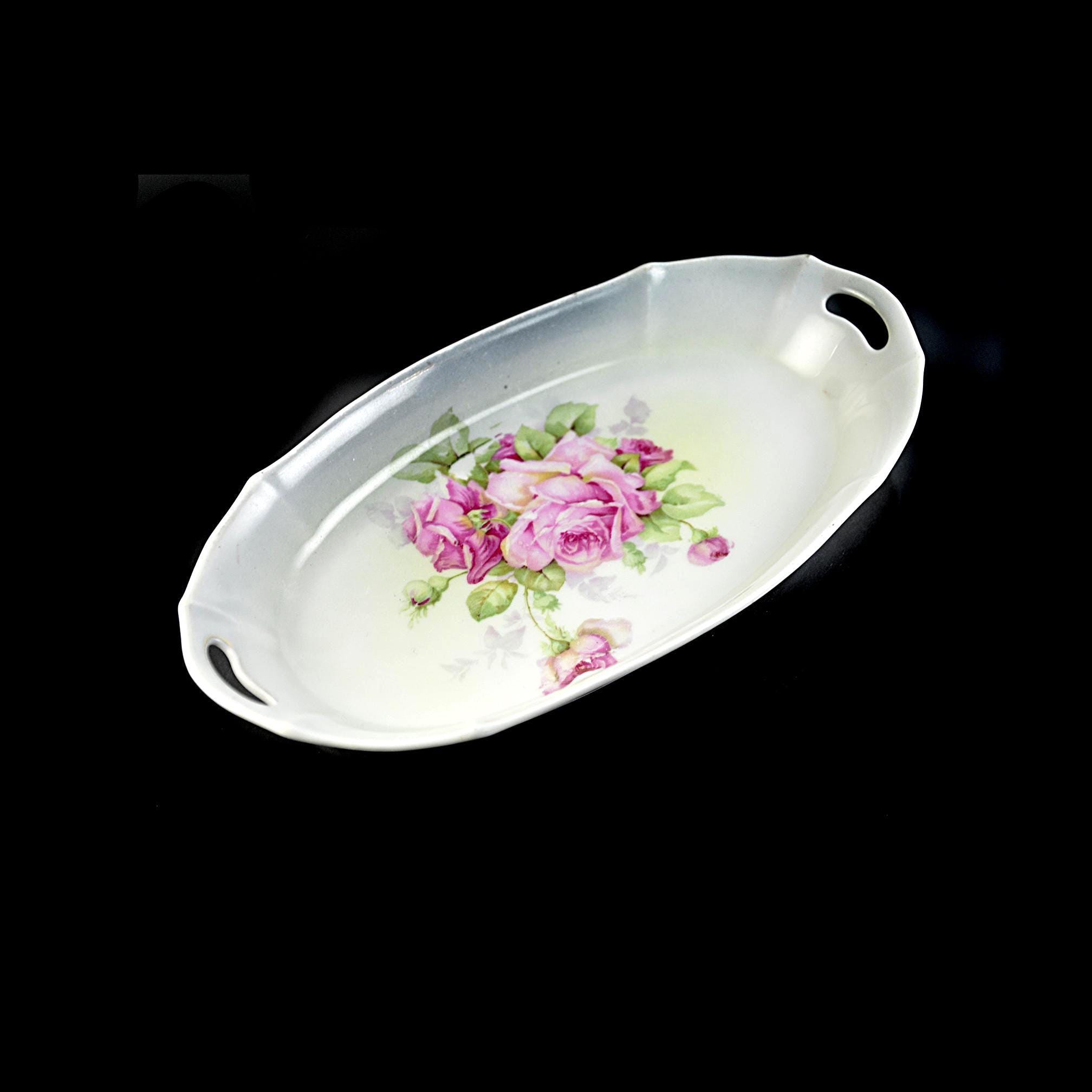Sometimes the simplest pieces are the ones that catch your eye every time you walk past them. This little French china tray has that kind of quiet charm. It was made by Moulin des Loups back in the mid-1900s, and they gave it a soft white glaze and a bunch of pink roses that look like they were painted on a spring morning. It’s a small piece — just the right size for the everyday things that never seem to have a home. Some folks used these as bonbon trays, others kept them on a dresser for brooches and hairpins, and plenty of French households set them out with nuts or chocolates when company came by. It’s sturdy, clean, and still in excellent shape after all these years. If you like vintage that feels honest and lived-in rather than fussy, this is one of those items that slips easily into your home. It doesn’t try too hard — it’s simply lovely.