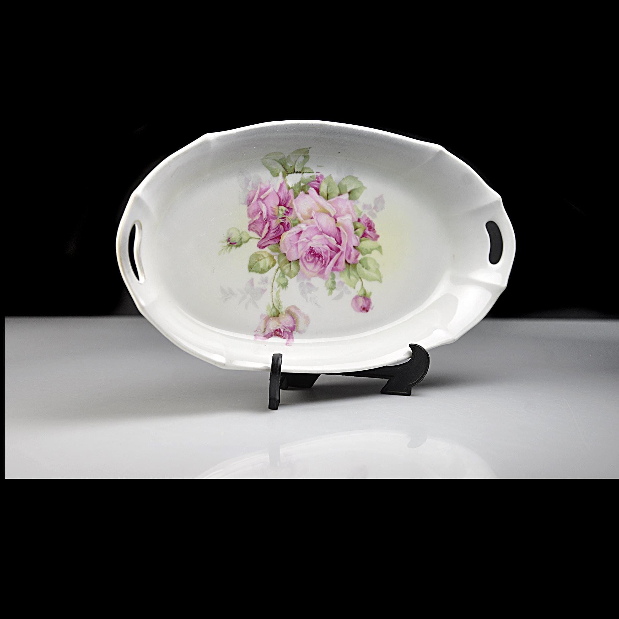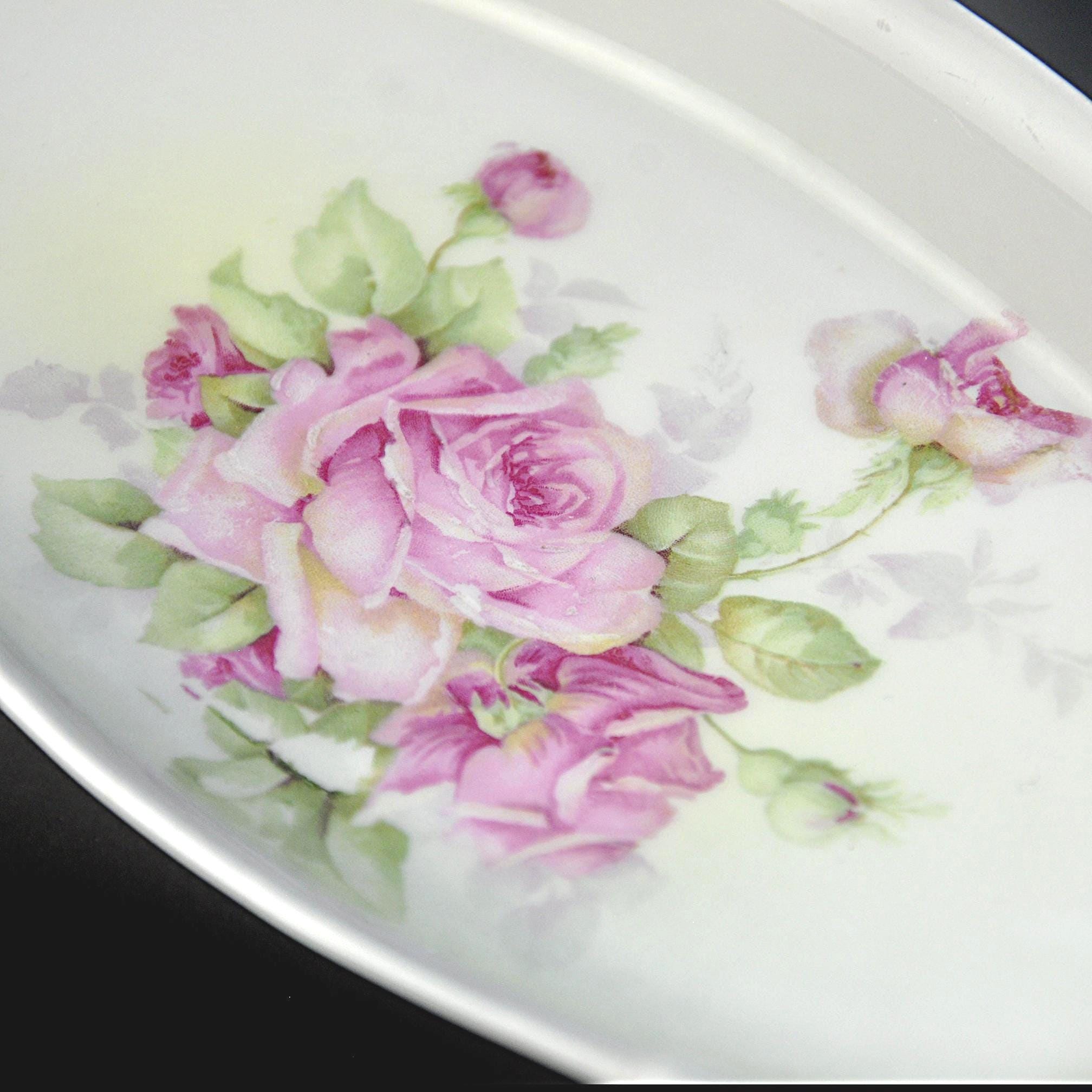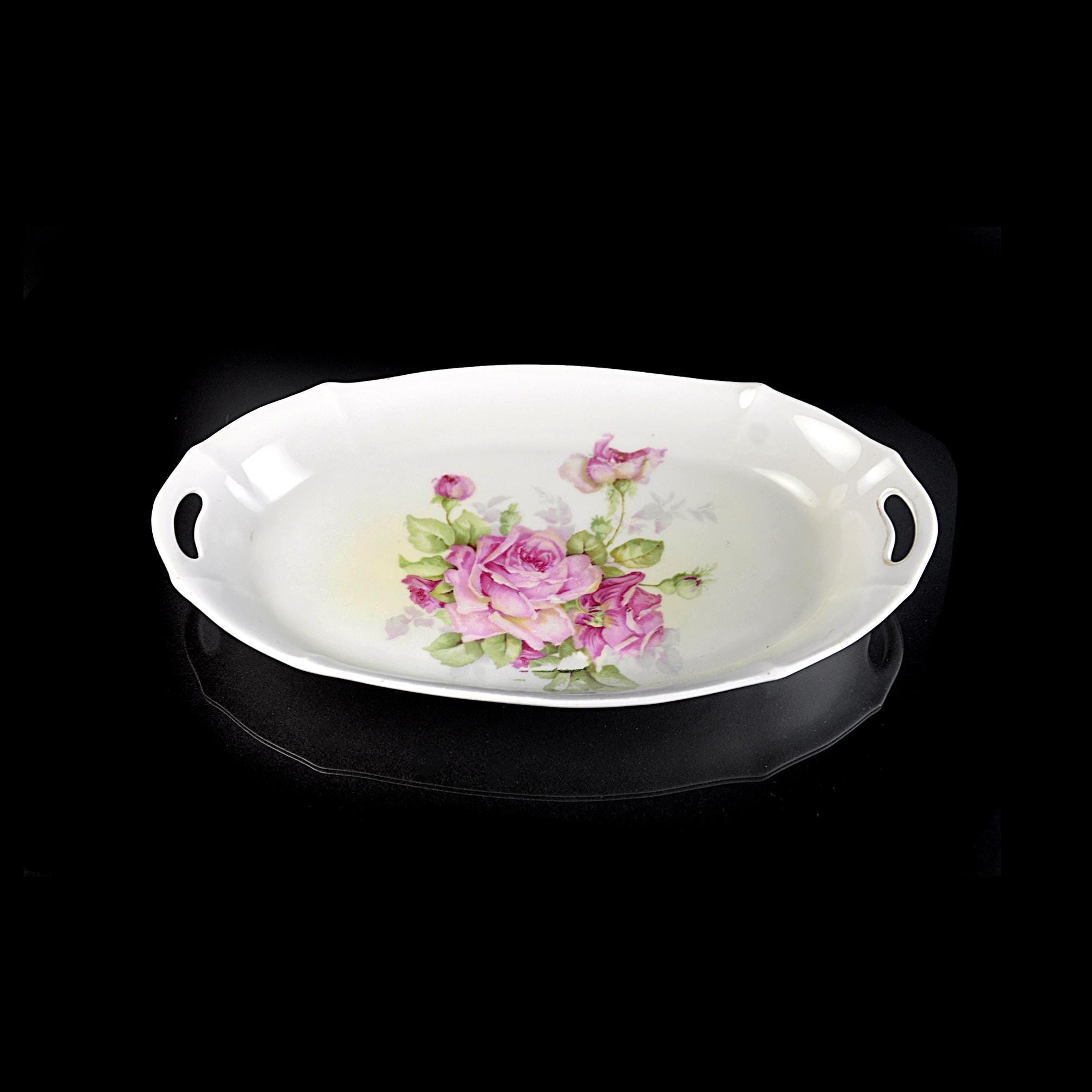 Sometimes the simplest pieces are the ones that catch your eye every time you walk past them. This little French china tray has that kind of quiet charm. It was made by Moulin des Loups back in the mid-1900s, and they gave it a soft white glaze and a bunch of pink roses that look like they were painted on a spring morning. It’s a small piece — just the right size for the everyday things that never seem to have a home. Some folks used these as bonbon trays, others kept them on a dresser for brooches and hairpins, and plenty of French households set them out with nuts or chocolates when company came by. It’s sturdy, clean, and still in excellent shape after all these years. If you like vintage that feels honest and lived-in rather than fussy, this is one of those items that slips easily into your home. It doesn’t try too hard — it’s simply lovely.